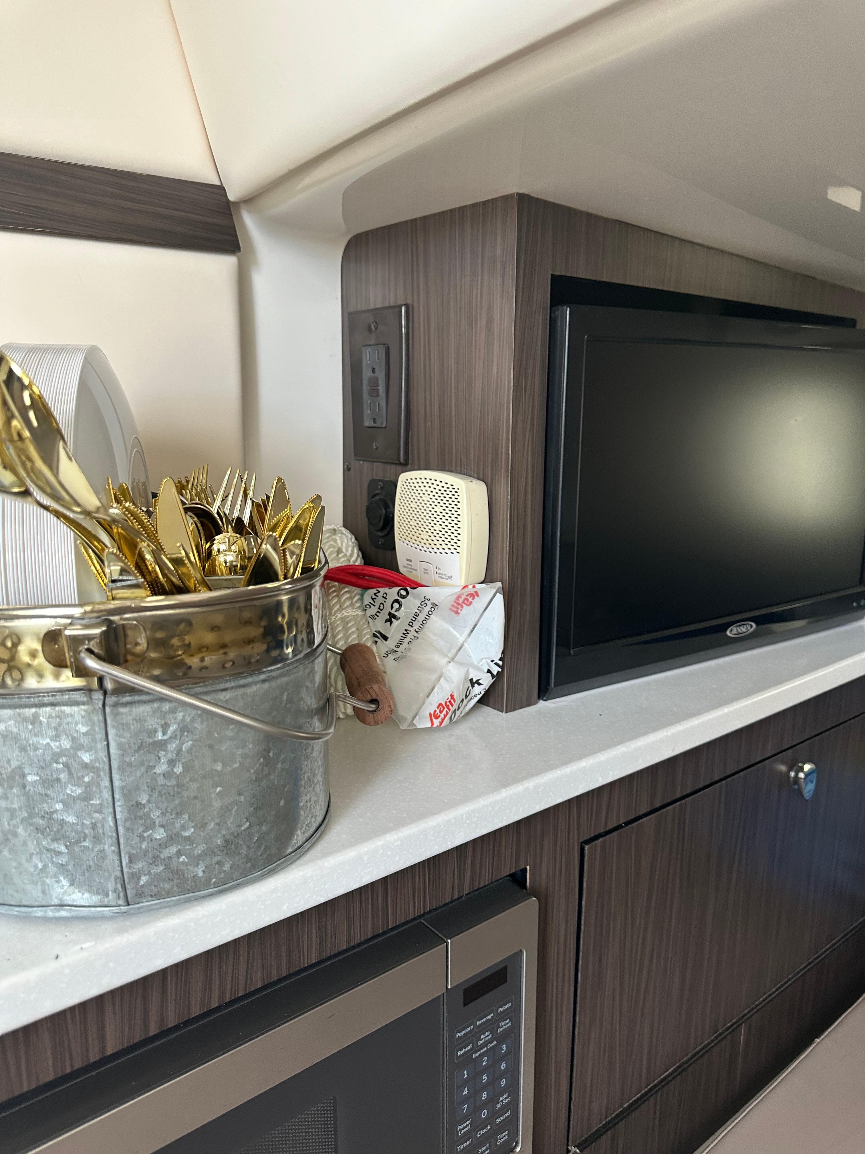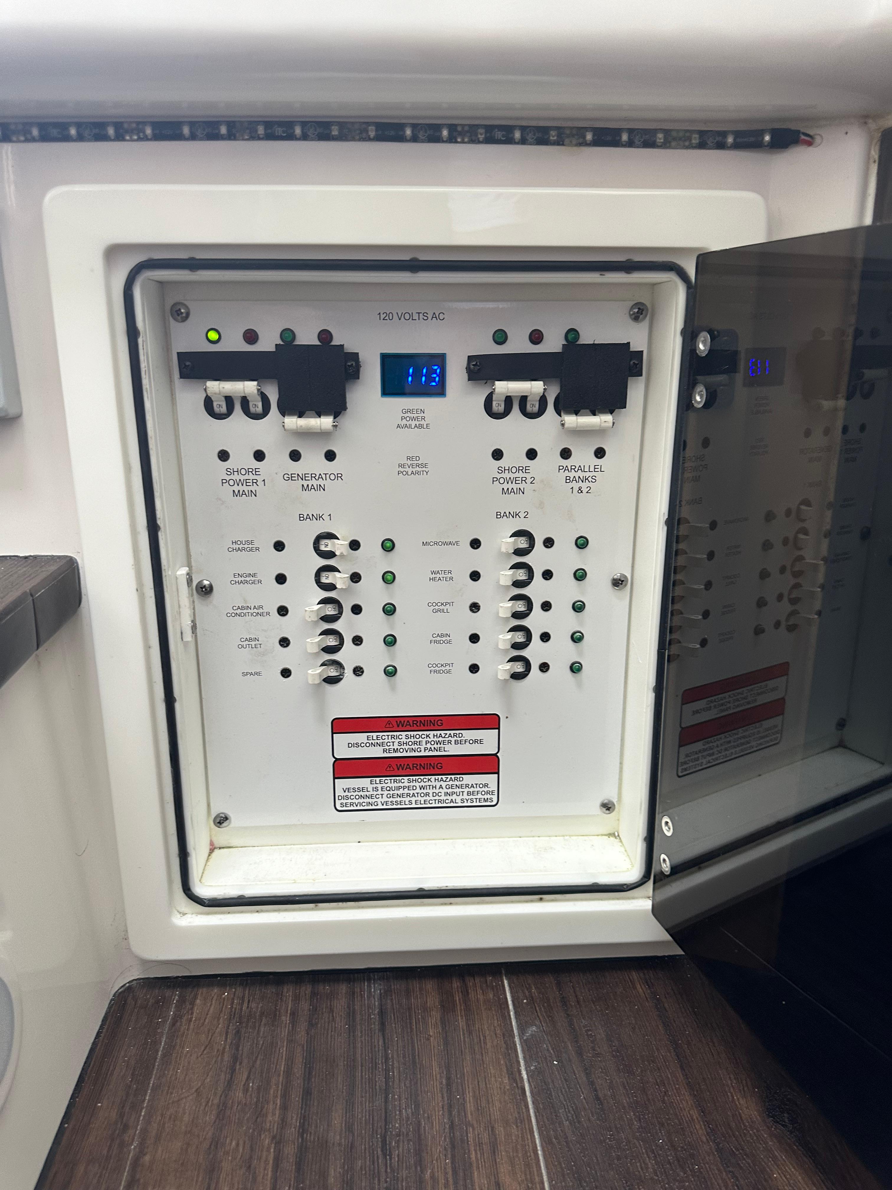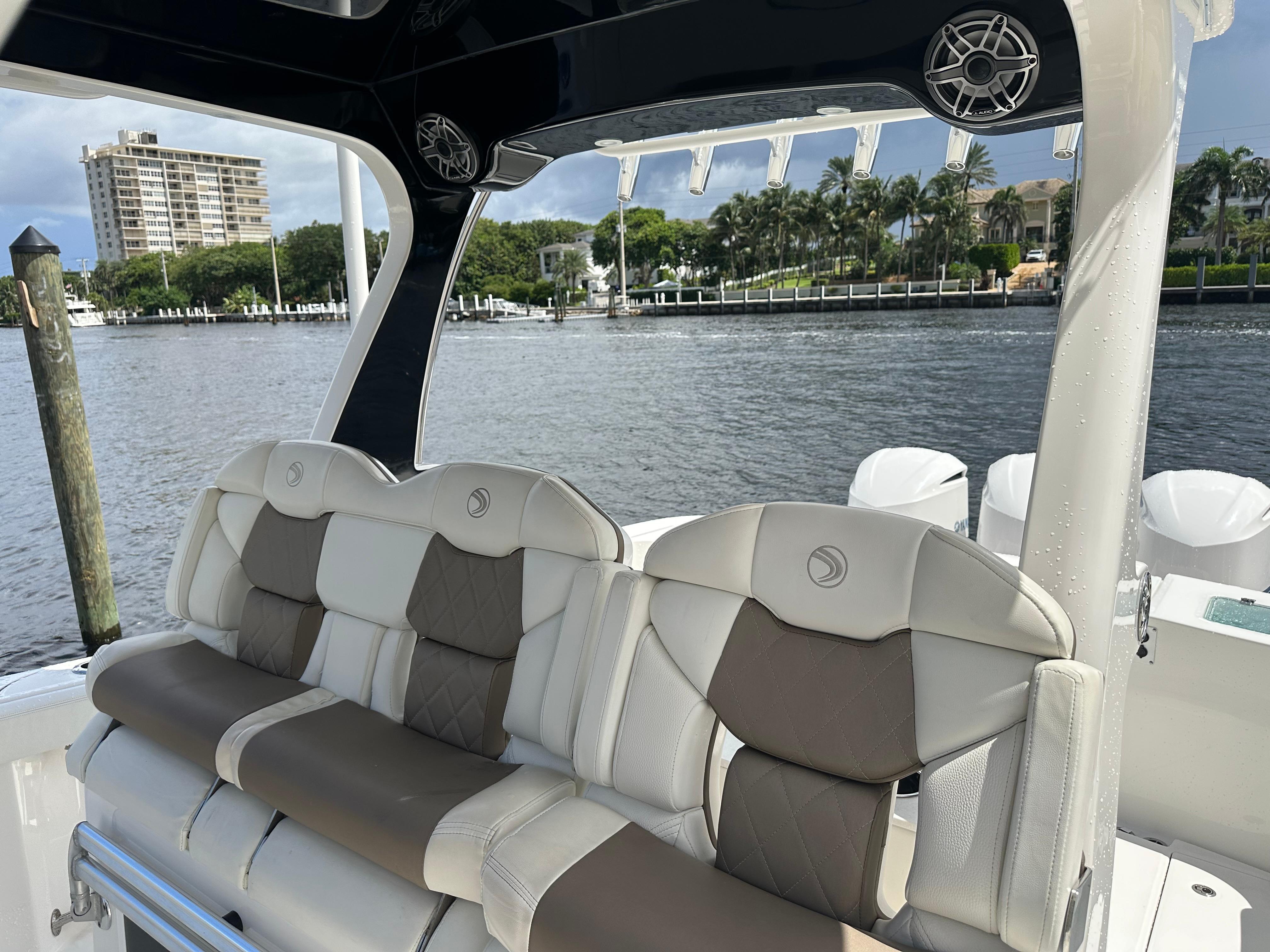 - Aft mezzanine seating behind helm w/ access to SeaKeeper