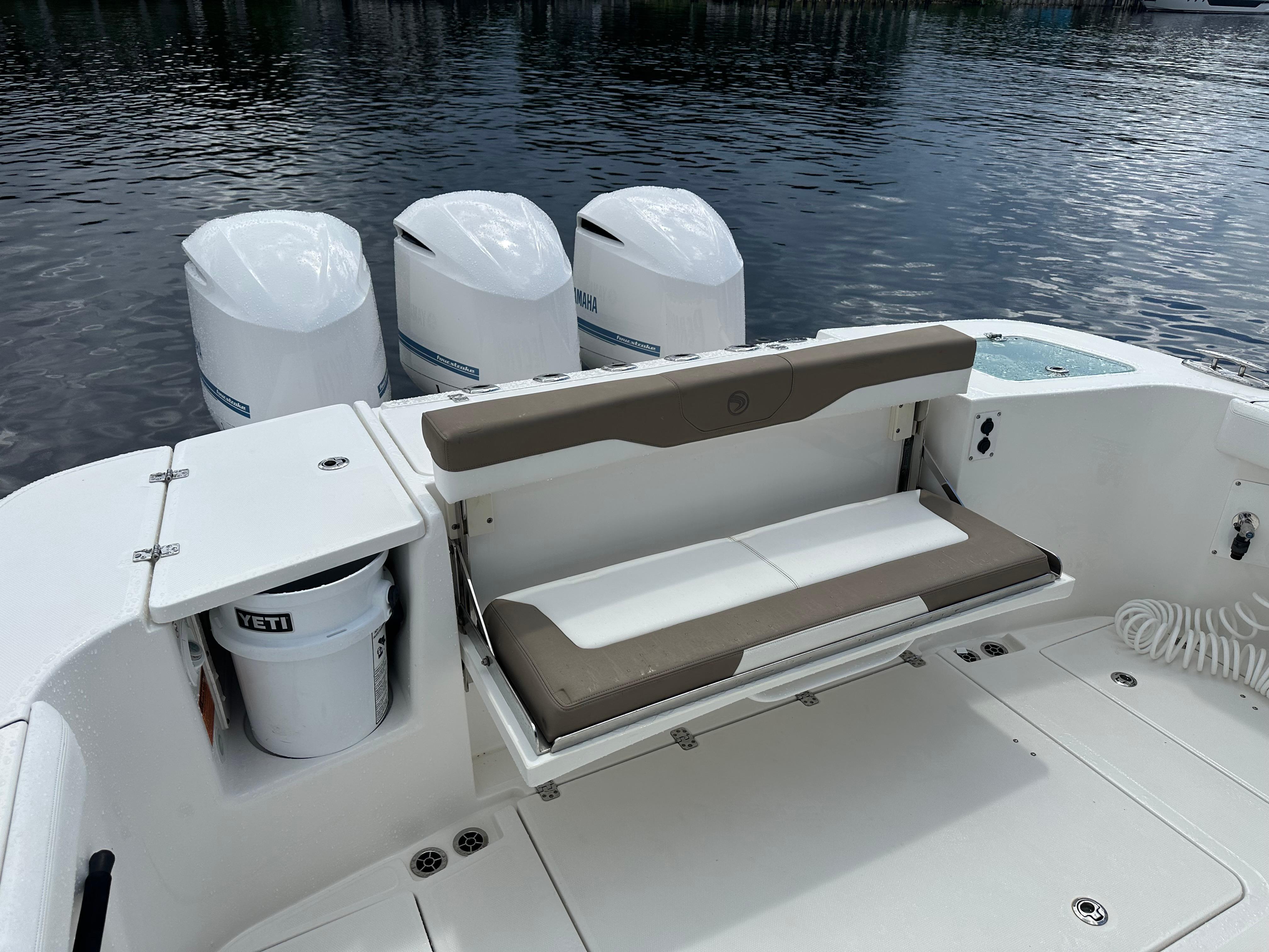 - Triple electric helm seat w/ fold out foot rest & arm rests
