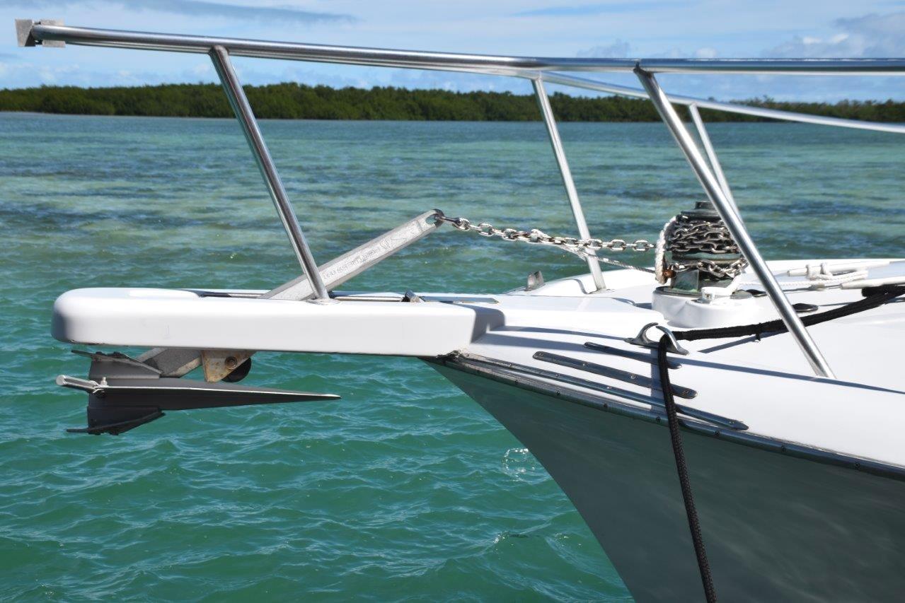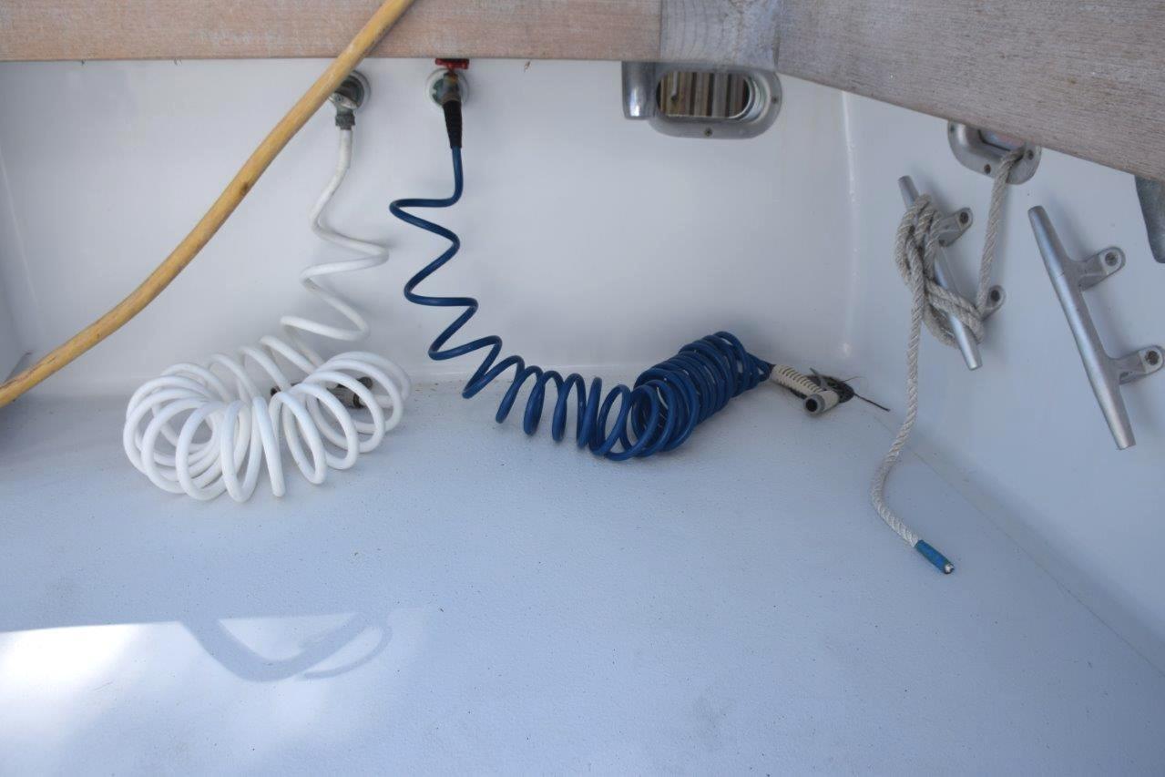 - Galley Maid Ideal windlass with wildcat and foot pedal controls, deck hawser to anchor locker