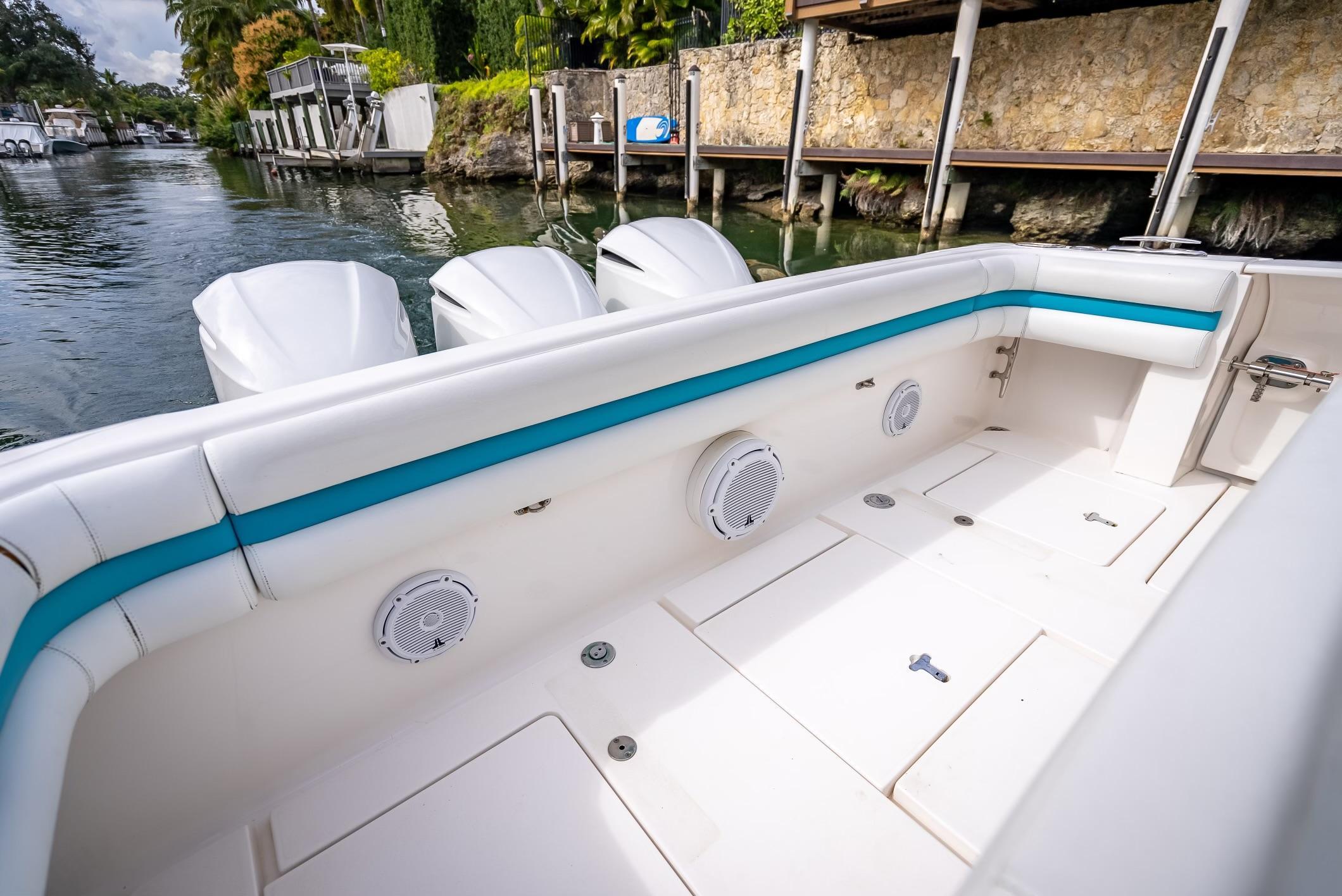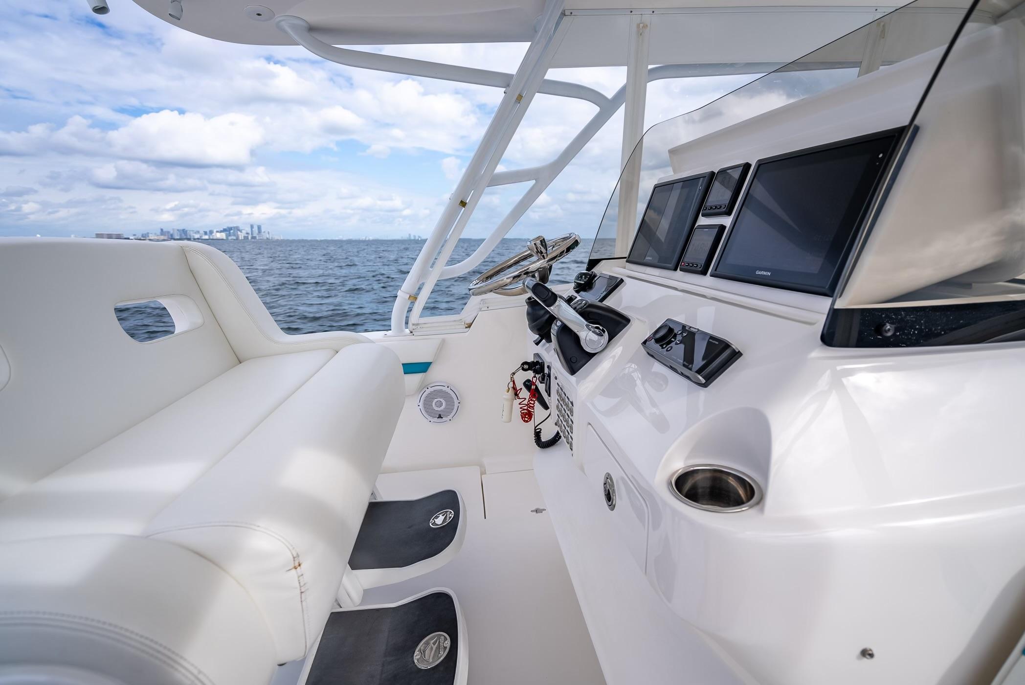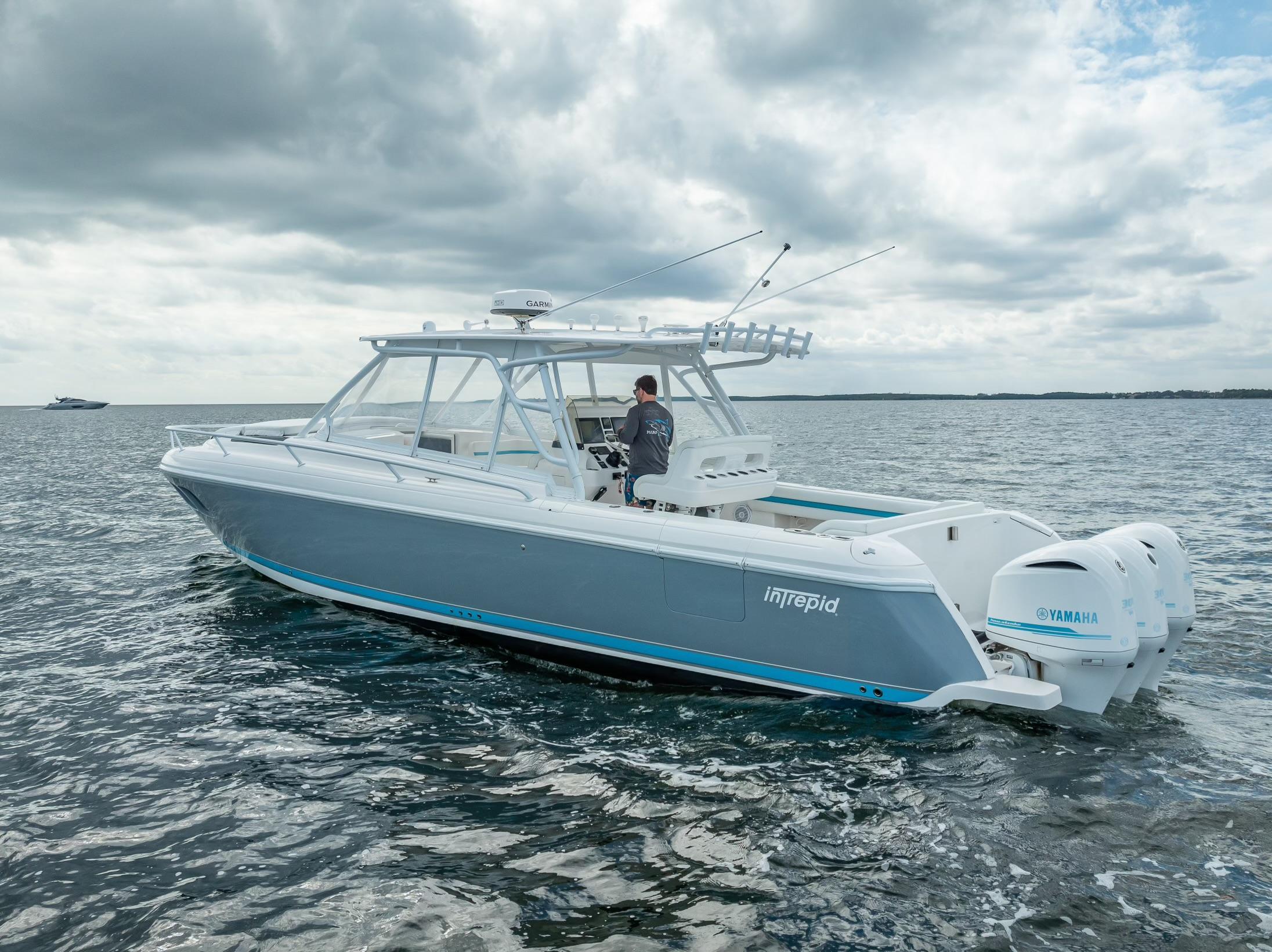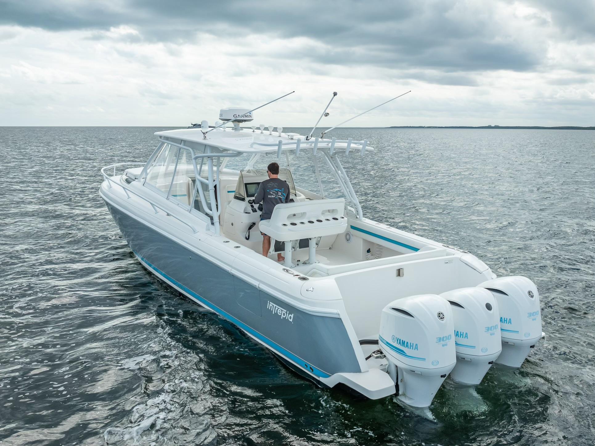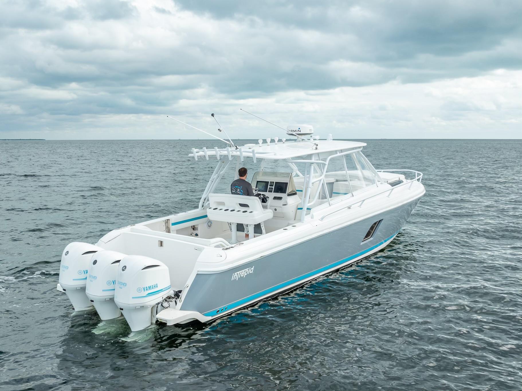 THE NEWEST INTREPID 40' CUDDY TO HIT THE MARKET!! GUARANTEED TO BE THE CLEANST ONE ON THE MARKET!! THIS BOAT HAS BEEN MAINTAINED WITH AN OPEN CHECKBOOK!! LOW HOURS!! Triple 300 Yamahas (600 Hours) (White)(2) Garmin MFD'S at the helm Garmin XHD Dome RadarGarmin autopilotFlir Night VisionFushion Stereo with blue toothLarge JL Audio sound system Bennett Trim Tabs Hydraulic electronics panelBow Thruster WindlassICOM VHFAdjustable Pompanette helm chairWesterbeke GeneratorAC In the cabinCooktop in the cabinRefrigerator in the cabinMicrowave in the cabinUnderwater lightsMulticolor hard top lightsDive-door6 - Hardtop rod holdersCustom Upholstery Removable back benchCustom bow sun padWAY TOO MANY OPTIONS AND UPGRADES TO LIST!! WE WILL CONSIDER ALL TRADES AND CAN ASSIST WITH FINANCING. This sleek 40-foot cuddy offers all the enhanced accommodations you would expect in a luxury performance cruiser, including a private bath with a shower stall and a separate master berth with a queen bed and hull side windows. It also features a forward cabin section that easily converts to a large double berth.As with every Intrepid, the most advanced design, technology, and fabrication techniques deliver an incomparably smooth, dry ride with unparalleled performance. The ultimate blend of comfort and power has come together to create one of the most innovative boats on the water today. Whether fishing, diving, or entertaining, this Intrepid is packed with thoughtful design features that will maximize enjoyment for anyone and everyone: a hull-side dive door with a step ladder and grab rails for divers and swimmers, custom seating, and a wet bar for easy entertaining, baitwells, rod holders, tank storage, tackle boxes, raw water washdown and more storage everywhere for the serious sport fisherman, customized the Intrepid way to suit your personal style.