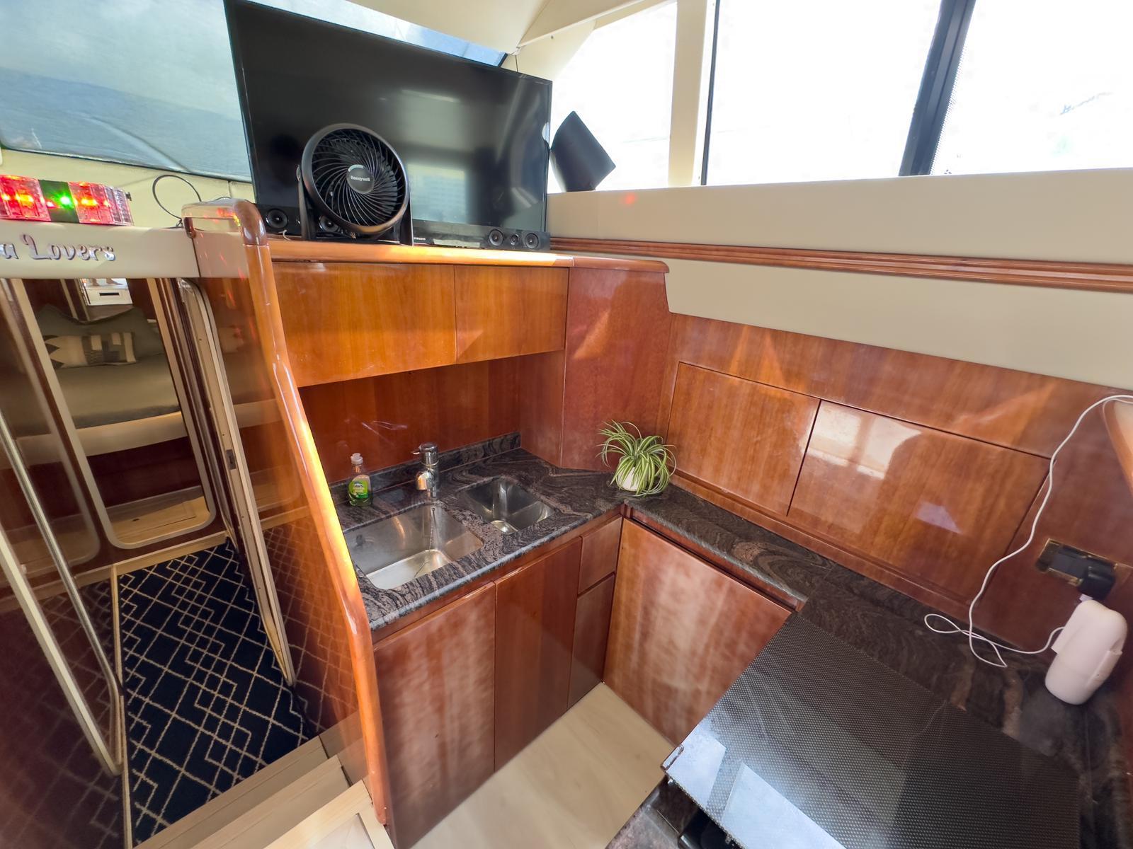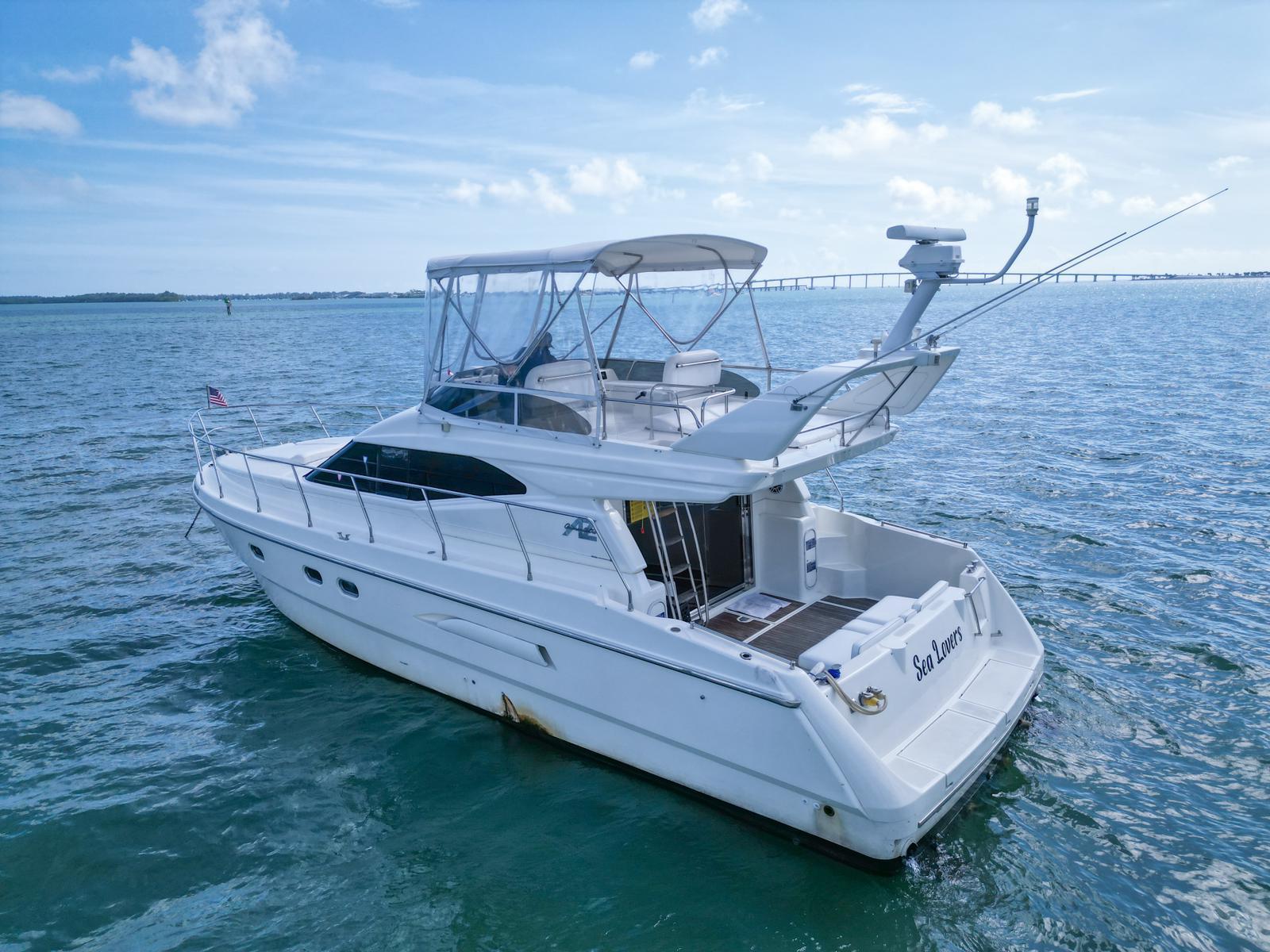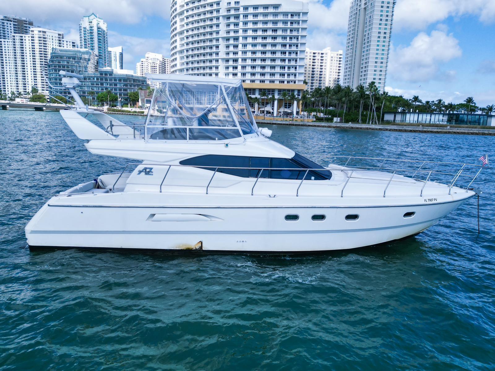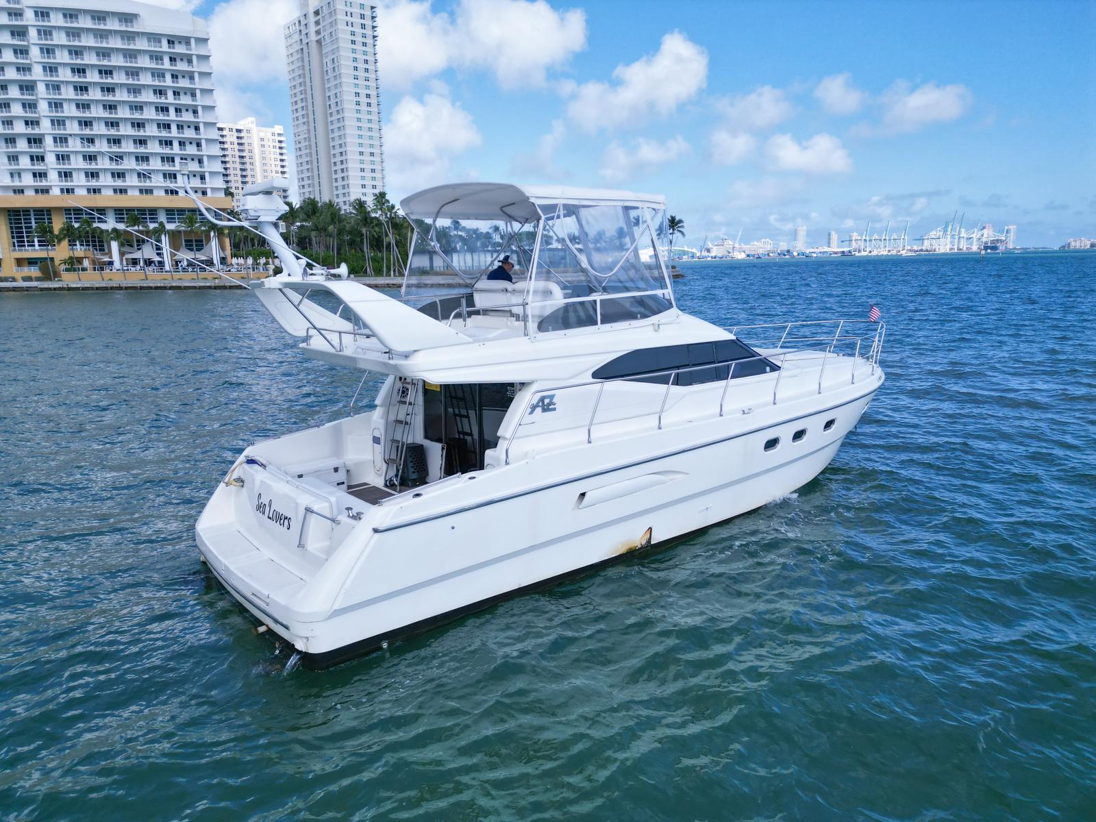 Featured Vessel: 1997 Azimut 43 Fly – Exceptional Condition with New FlooringStep aboard the timeless elegance of the 1997 Azimut 43 Fly, a superb example of Italian craftsmanship and luxury yachting. Meticulously maintained and recently upgraded, this vessel presents in outstanding condition, ready to deliver the ultimate boating experience.Key Features:- Spacious Flybridge: The signature flybridge offers expansive views and ample seating, perfect for entertaining or relaxing under the sky. It’s equipped with a helm station that includes all necessary navigational equipment for precise cruising.- Elegant Interiors:The interior showcases a masterful layout with two well-appointed staterooms, each featuring en-suite facilities for privacy and comfort. The saloon is designed for relaxation with plush seating and a state-of-the-art entertainment system.- Performance and Handling:Powered by twin Caterpillar 3208 engines, with 2000 hours logged and all maintenance up to date, the Azimut 43 Fly delivers robust performance and smooth handling, ideal for both long voyages and short excursions. The hull design ensures stability and efficiency in all sea conditions.- Modern Galley: The galley is fully equipped with high-end appliances, including a refrigerator, stove, and microwave, making meal preparation a pleasure whether at dock or at sea.- Brand New Flooring: Recent upgrades include brand new, high-quality flooring throughout the vessel, enhancing both the aesthetics and durability of the interior spaces.- Navigation and Electronics: Comprehensive navigation systems, including GPS, radar, and autopilot, ensure safe and effortless passages.- Exterior Amenities:The deck features a large sun pad, a swim platform for easy water access, and ample storage for water toys and gear.This 1997 Azimut 43 Fly is a remarkable vessel that combines luxury, comfort, and performance in a compact and manageable size, making it an ideal choice for anyone seeking a premium yachting experience. Ready for immediate enjoyment on the water, it promises to be a delight for its new owners.