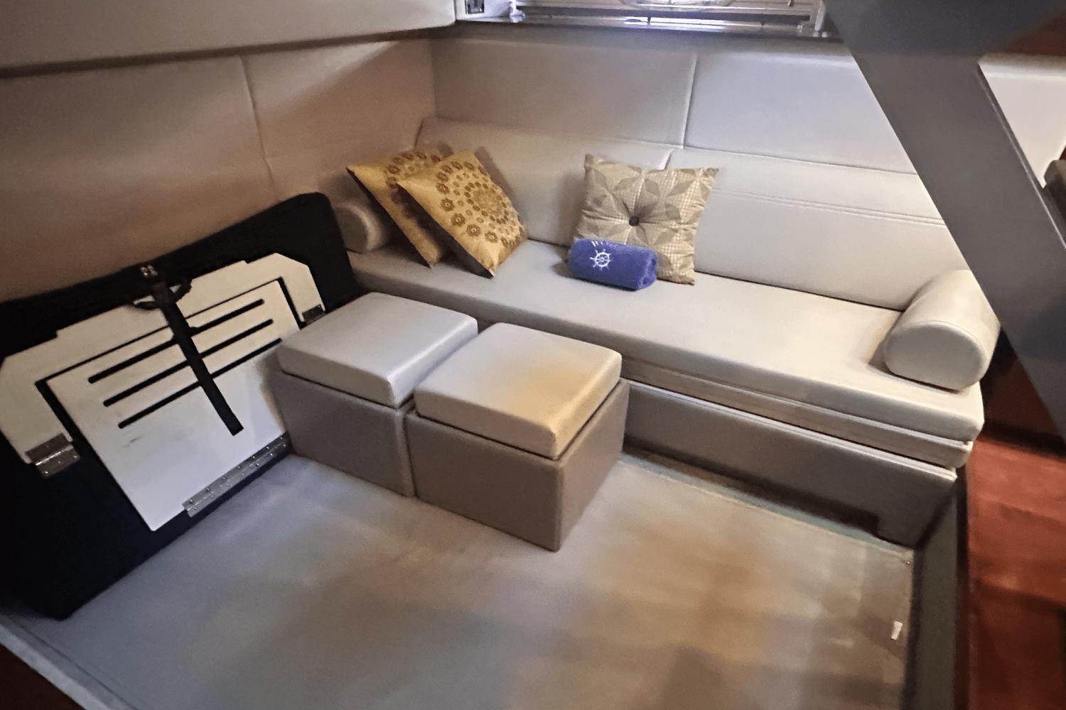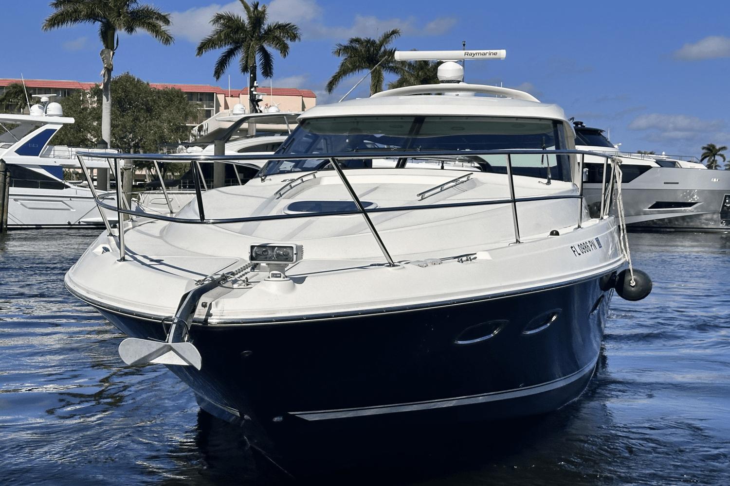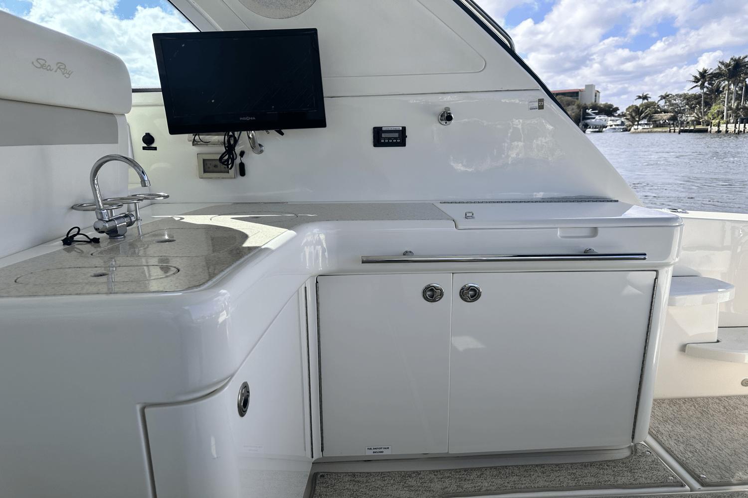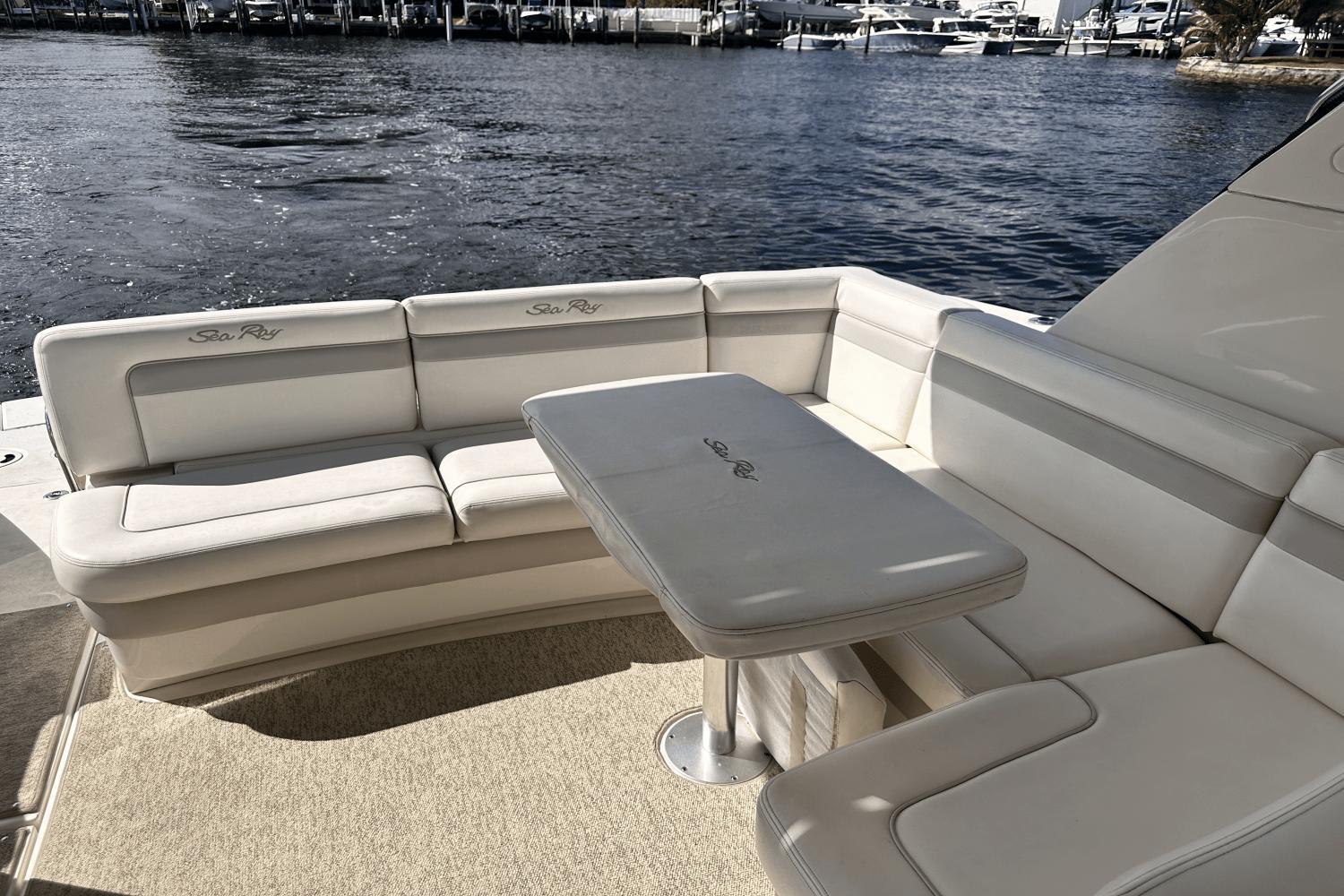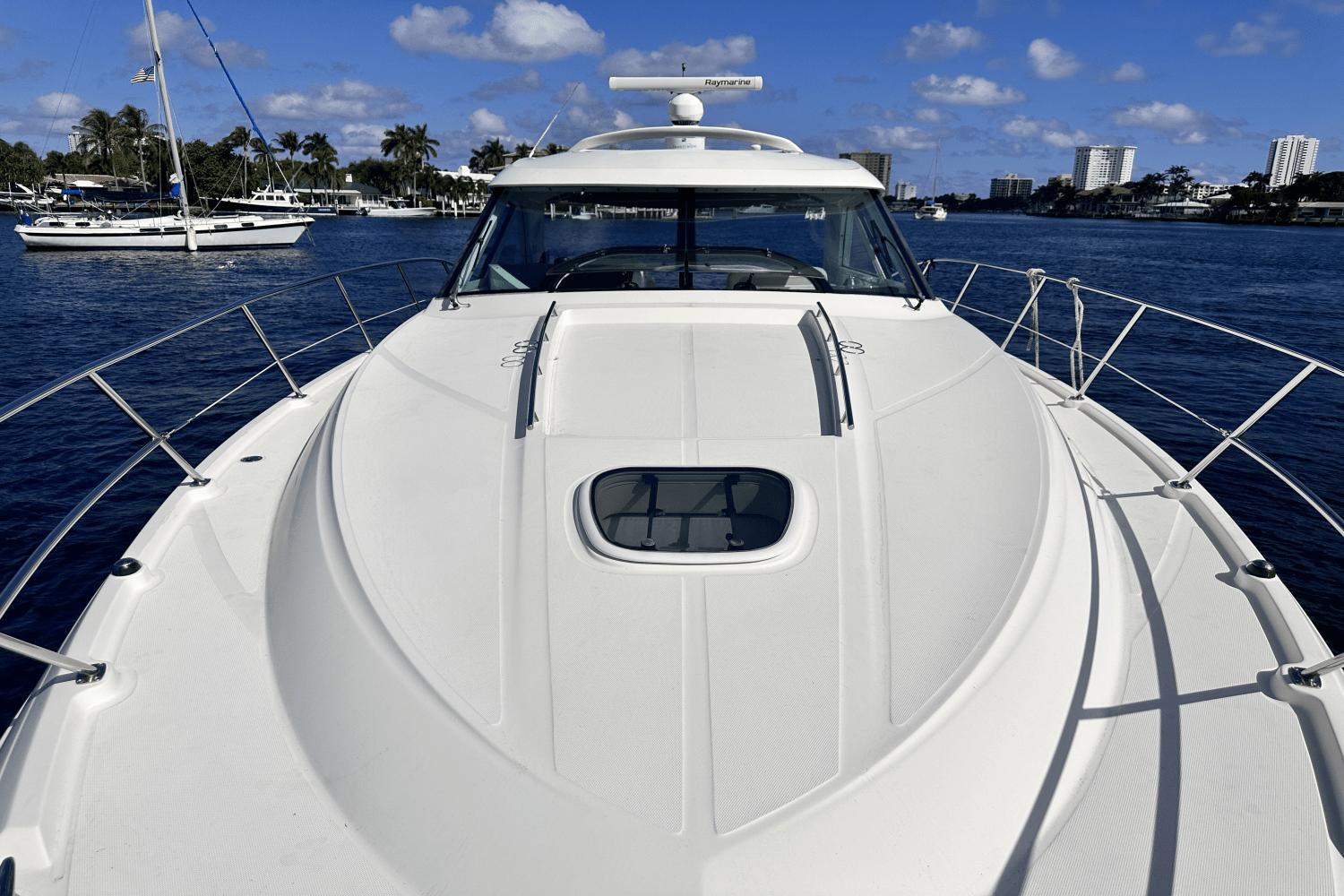 Act fast on this limited-time offer! BRING ALL REASONABLE OFFERSNEW BOTTOM PAINT AND ZINCS MAY 2025This is a very nice 450 Sundancer and the next one to be sold. Easy to see in Pompano Beach, FL offered for sale by the second owner who has had her practically since new for the last 12 years. Seller is into aviation and knows how to maintain his craft. The electronics are new in 2023 including 2 Raymarine MFD’s, Open Array Radar and AIS. Both the galley and cockpit refrigerators have been replaced. The salon and cockpit AC’s have also been replaced. The boat is ready to go. She is powered with Cummins Common Rail QSB 380 engines with 877 hours. Boat has the fuel efficient easy to maneuverZeus pods that have always been maintained. There is an Onan 11.5 KW Diesel generator with 960 hours. The interior has a private forward stateroom with private access to separate shower and head spaces. The salon has a convertible L shaped couch across from a galley with expansive counter space and there is a “Media room” in the mid cabin.OPTIONS:Air Conditioning/Heating - Cockpit (16,000 BTU) w/DefrosterCanvas, Dash CoverColored Hull, BlackDSS Satellite TV SystemFlagpole w/Base & Yacht FlagFlooring, Wood - Salon & GalleyGrill, Built-In w/Fiberglass Lid (120V) - CockpitLights, Underwater - Transom (2)Macerator w/Seacock Interlock SystemRefrigerator, Dual Voltage - CockpitRod Holders (2)Spotlight w/Dual Halogen Bulbs - Remote ControlledStereo, Sound System Upgrade - Cockpit (Speakers & Amps)Sun Pad, Forward Deck w/Adjustable BackrestTable, High-Gloss Teak w/Vinyl Cover - Cockpit (In Lieu of Std Table)TV, 26” Flatscreen LCD (120V), w/ Remote DVD Player - Upper SalonTV, 22” Flatscreen LCD w/DVD Player - CockpitVacuum System, Central - 1SPECIFICATIONSO v e r a l l l e n g t h w/extended swim platform 45’5” 13.84 mBeam 13’2” 4.01 mDraft (Zeus drives) 46” 117 cmDry weight 24,362 lbs 11,050 kgDry weight (Zeus) 27,205 lbs 12,340 kgFuel capacity 292 gal 1,106 LWater capacity 70 gal 265 LHolding tank 42 gal 159 LDead rise 19° 19°