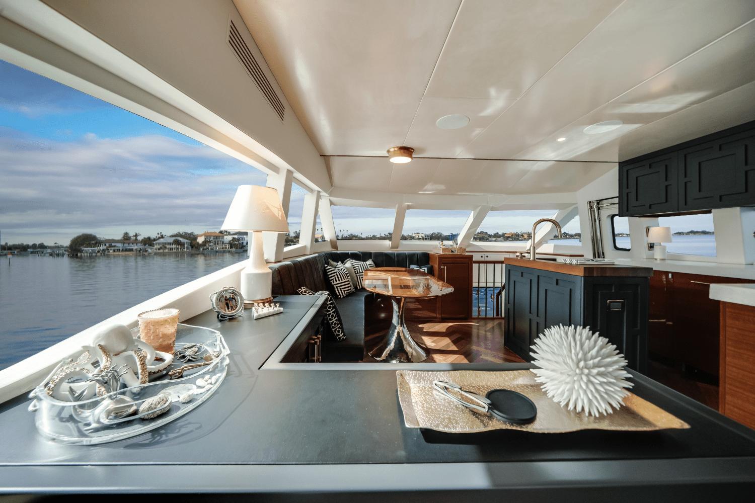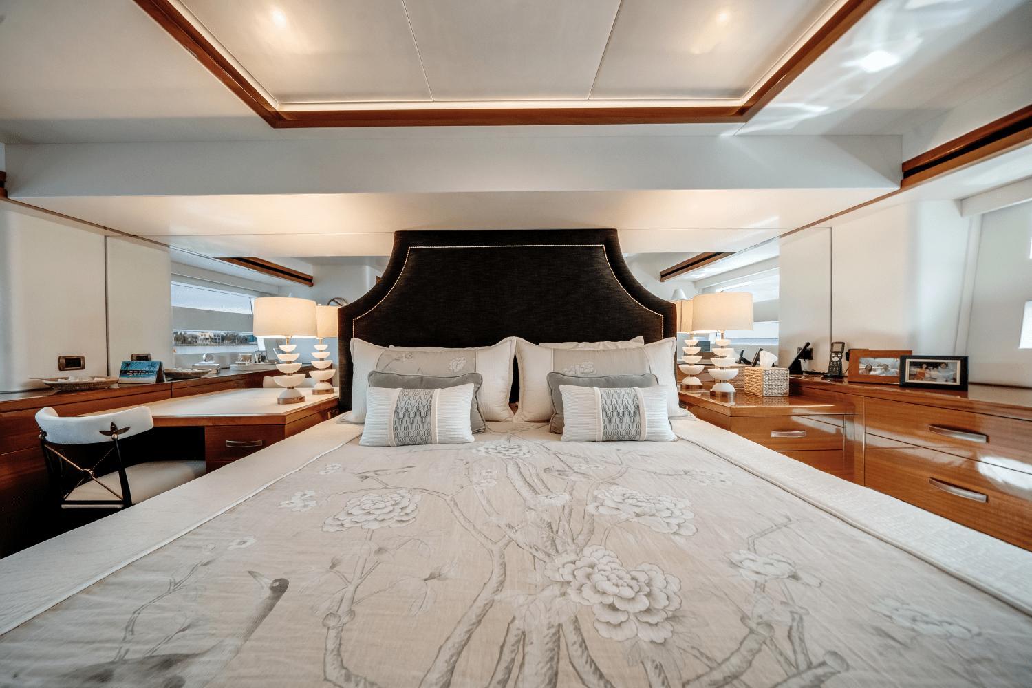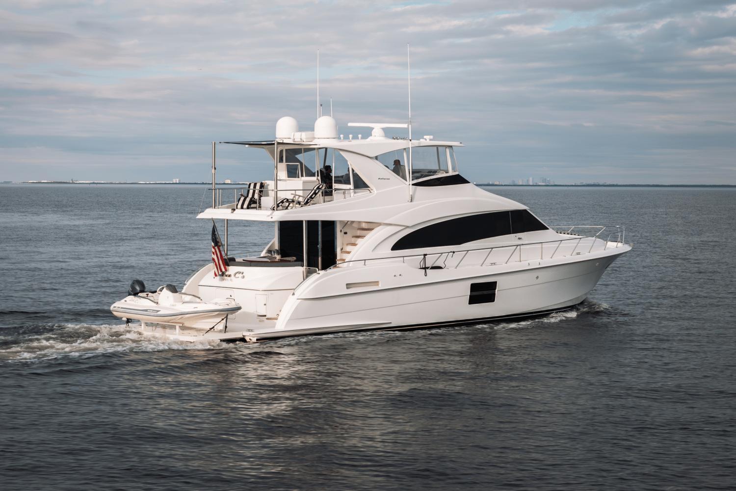 “Endless C’s” is a 2018 Hatteras 60 Motor Yacht that is powered by Twin CAT C18 1,000HP engines. Step aboard onto the Hydraulic Swim Platform that is large enough to keep a Tender or Toys. Teak stairs on either side lead to the Aft Deck with teak flooring.As you enter through the Salon door, you'll immediately notice that “Endless C ‘s” stands apart from any other 60' Motor Yacht on the market due to its “very custom” interior. The Salon offers an impressive open space, flooded with natural light from the expansive frameless windows that stretch down both sides of the Salon and Galley. The stylish Salon features a plush couch, two custom ottomans, and a club chair, creating the perfect environment for relaxation and entertainment.The Galley is a chef’s dream, with bespoke wood cabinetry and intricate “custom” designs throughout. It’s centered around a large island that boasts a “farmhouse” sink and butcher block countertop. To port, you’ll find an oversized L-shaped dinette—ample enough for all your guests to gather and enjoy meals together.Down the stairs to the Companionway, where you’ll find the Staterooms. The full-beam Master Stateroom offers a luxurious King-size bed and an en-suite head. The BowGuest Stateroom features a Queen-size bed and a unique design that will surprise and delight. Across the way, the Port Guest Stateroom is outfitted with criss-cross bunk beds, complete with custom bedding and pillows. The Guest Head, conveniently located, is accessible from either guest stateroom.On the Flybridge, the hardtop extends past the Helm to cover the dinette area, providing ample shade and shelter. Enclosed in clear acrylic, this space is fully air-conditioned, ensuring comfort whether you're cruising or relaxing. The Aft Flybridge is equipped with a Kenyon BBQ grill and sink, perfect for grilling up meals while underway. The area is surrounded by stainless steel rails and features a removable sunshade, allowing you to adjust the space for the perfect sunset view from the adjustable lounge chairs.Teak steps lead down to the walkarounds, guiding you to the Bow—another great spot to lounge and soak up the sun.