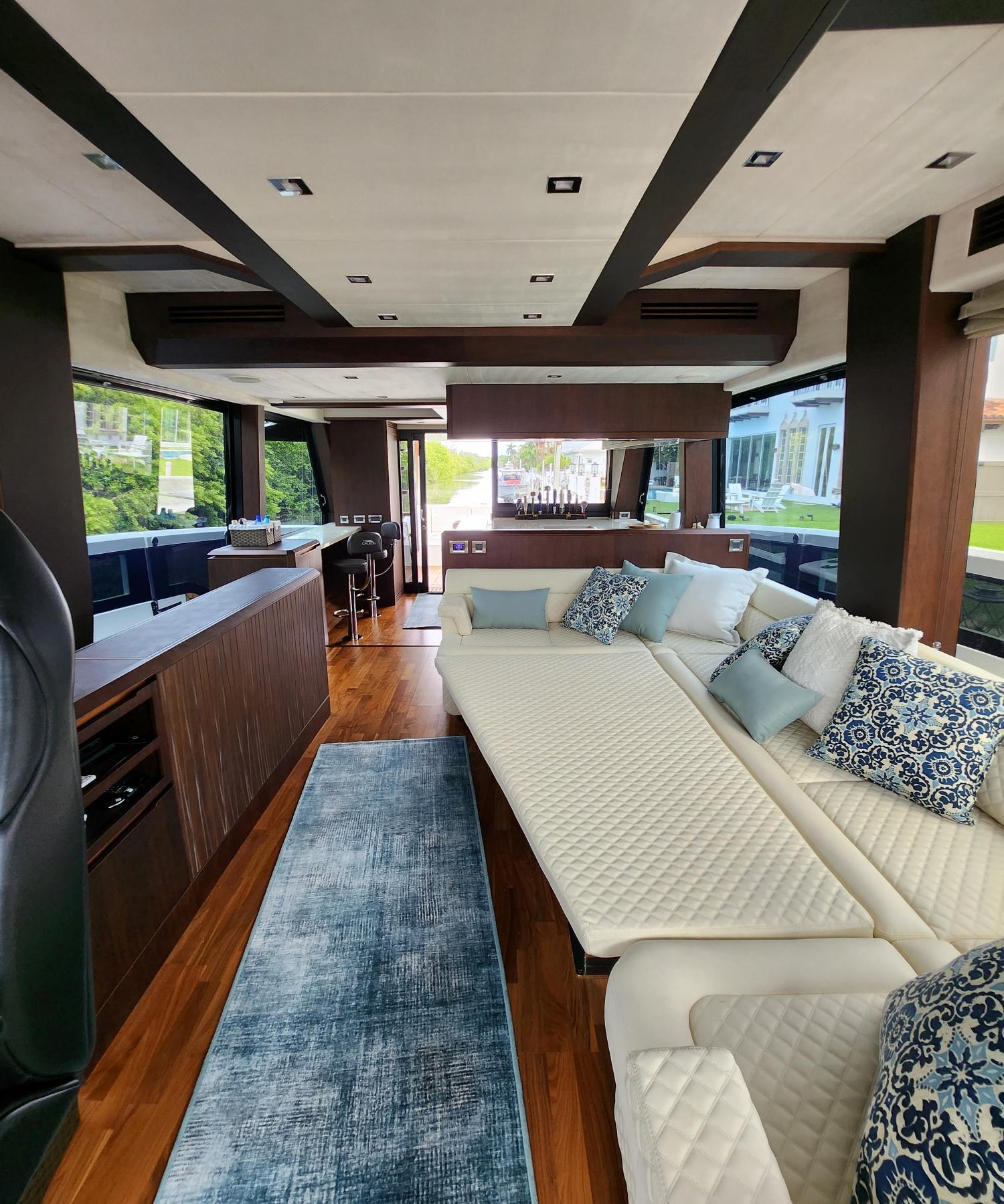 The 640 FLY will be a game changer, once again offering solutions never before seen in this class. This transformer yacht will revolutionize the segment with its innovative approach to layout and space distribution. This transformer model will follow a new design path to allow for bigger volume and better space distribution, all while maintaining the great exterior appearance Galeon models are known for.Outside, the aft cockpit dining area holds eight people who can enjoy an entertainment system with a 40-inch TV sliding up from the kitchen top, all while protected from the elements by the electric aft sunshade. Further back, find the hydraulic bath platform capable of handling all water paraphernalia and convenient access to a large skipper cabin.The top deck is enlarged to offer a generous dining space, a full-sized bar, and plenty of lounge space surrounding the steering console. The bow deck area can be approached by the revolutionary, electric front window entrance revealing two separate movable sofas with integrated foldable tables for sundeck purposes. Serve the area from a nearby wine bar to further impress your guests. Everyone's favorite Beach Mode makes a welcome reappearance, fitted with six-meter-long balconies with partially glazed floors and a breakfast bar on both sides.SEAKEEPER 9Yacht Controller Upgraded Stereo System. $35,000Underwater Lights All New Outside Cushion New and Upgraded A/C Chillers $65,000Not Often Will You Find Something As Special As ThisExcellent Opportunity To Own One Of The Most Sought After Flybridge Motor Yacht in its size range. Truly Unrivaled In Its Class, The 640 Galeon Offers More Onboard Entertainment Options With Incredible Versatility.Contact the Listing Broker for full details - Available to be seen 7 days a week - Schedule your appointment today.