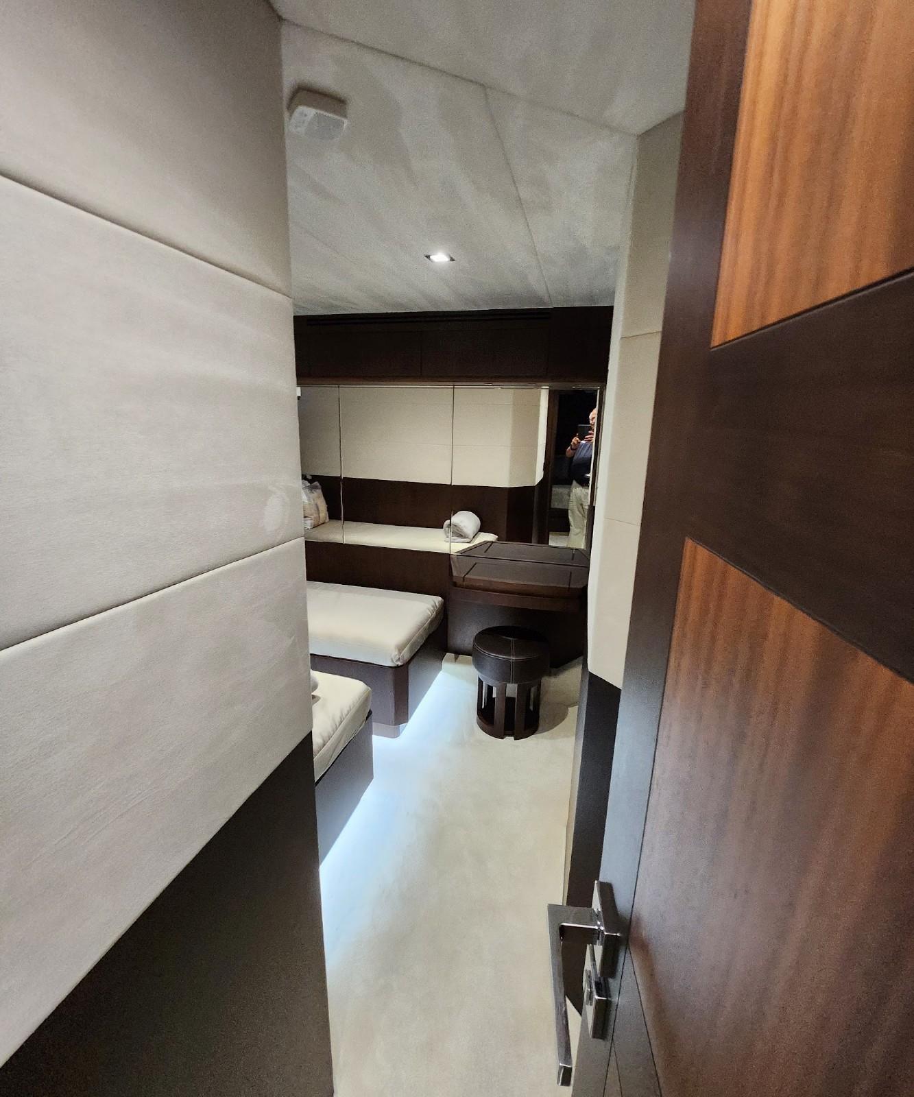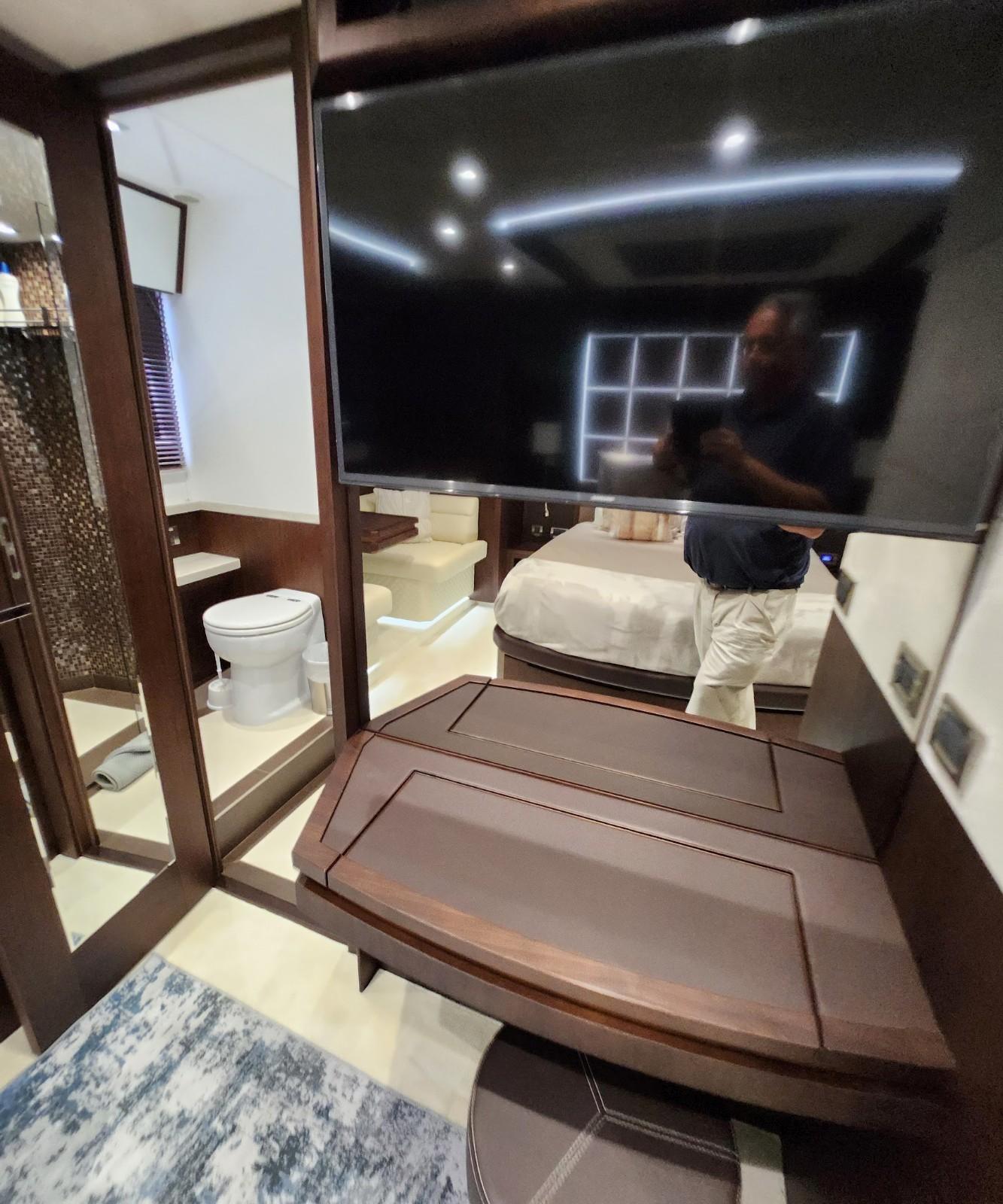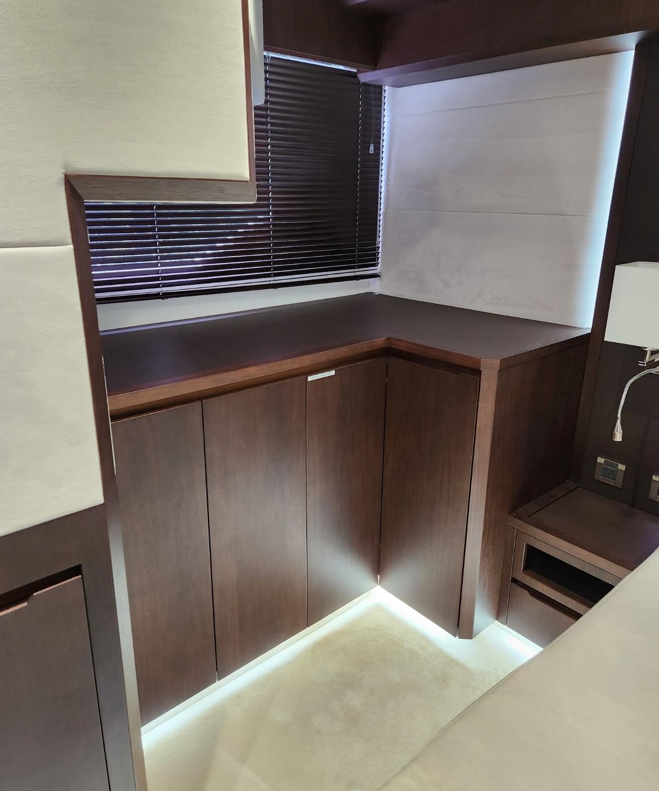 - Nightstands with storage, port, and starboard outlets, 120V