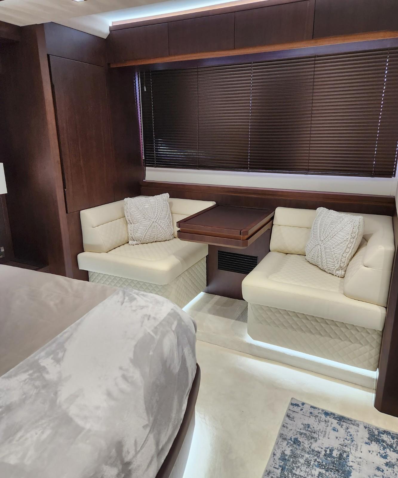 - Seating, Doublewide sofa adjacent to captain's seat
