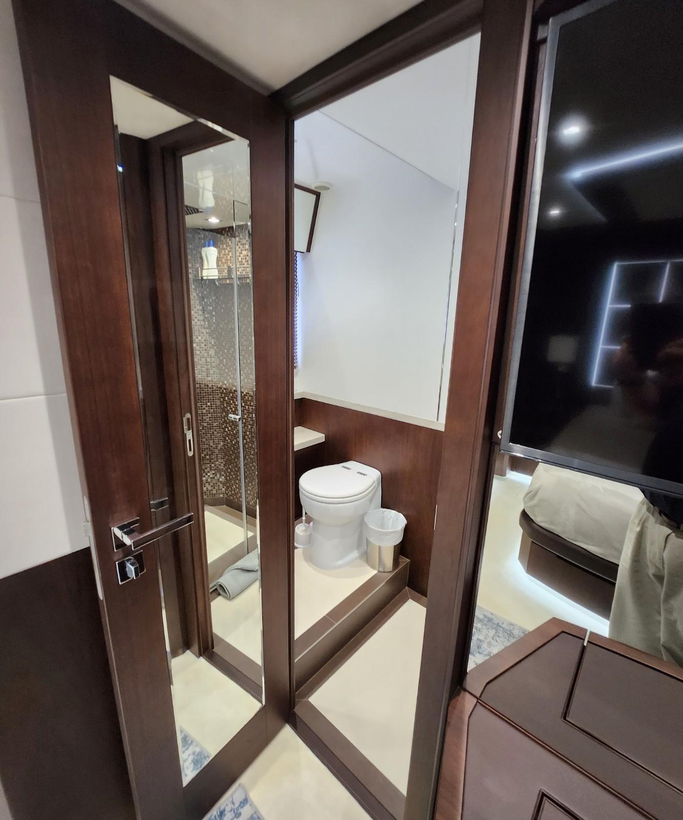 - Door, private access to owners' head &shower with full-length mirror
