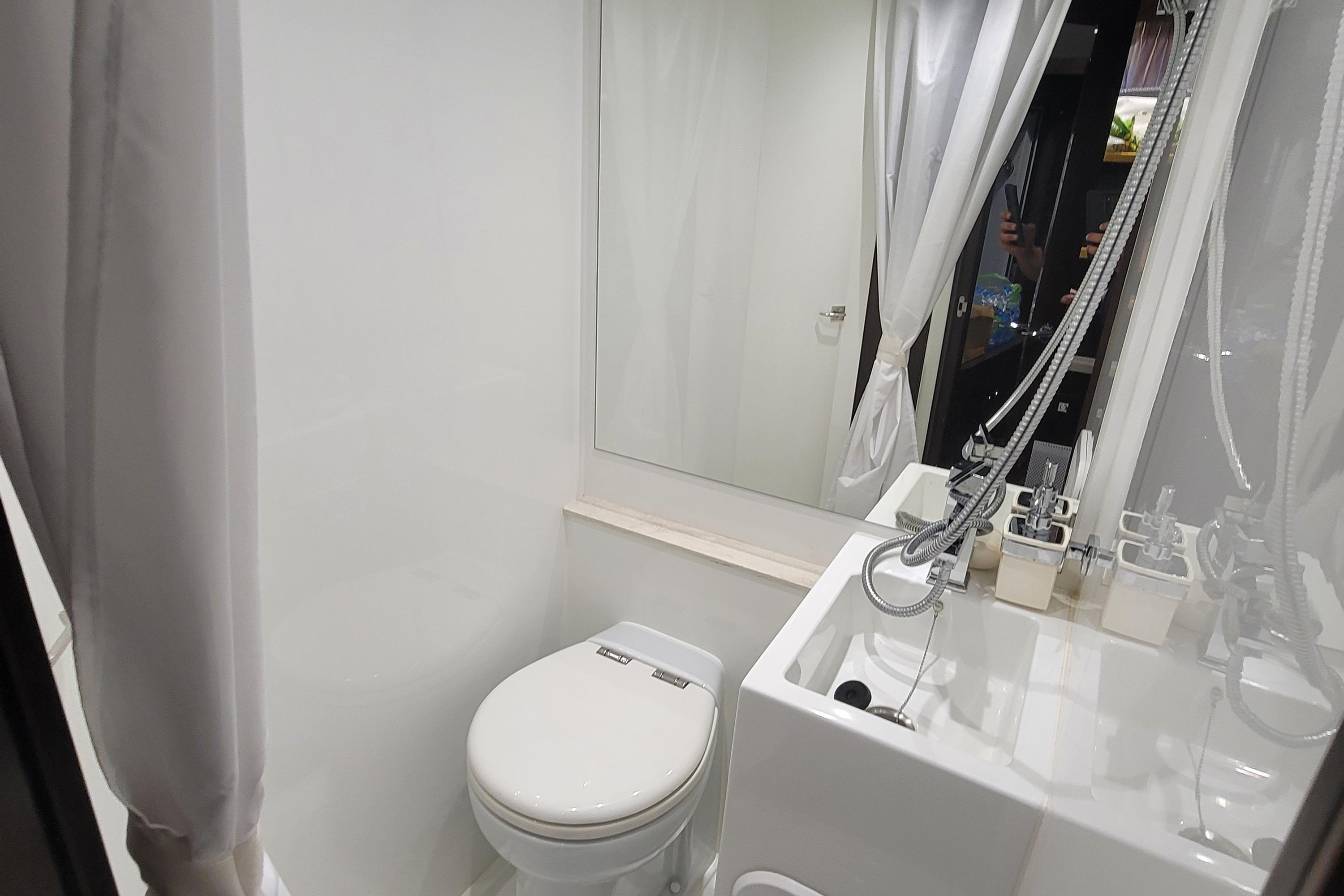 - Head with shower and sink