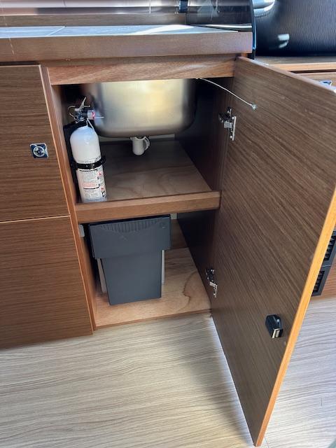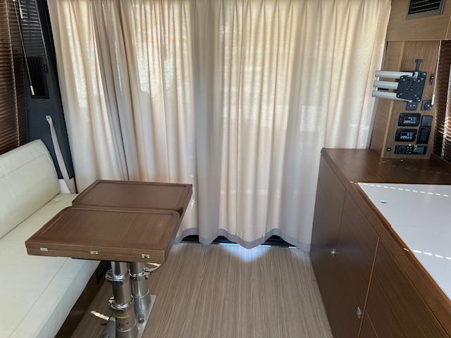 The Bavaria R40 is a well appointed two cabin with two ensuite head. The interior has 360 degree views with an large opening hatch above the helm station and lots of ventilation. The galley up has large counter space with a cook top and a refrigerator/freezer and stainless steel sink. The dinette table expands from a two person to a four person surface.