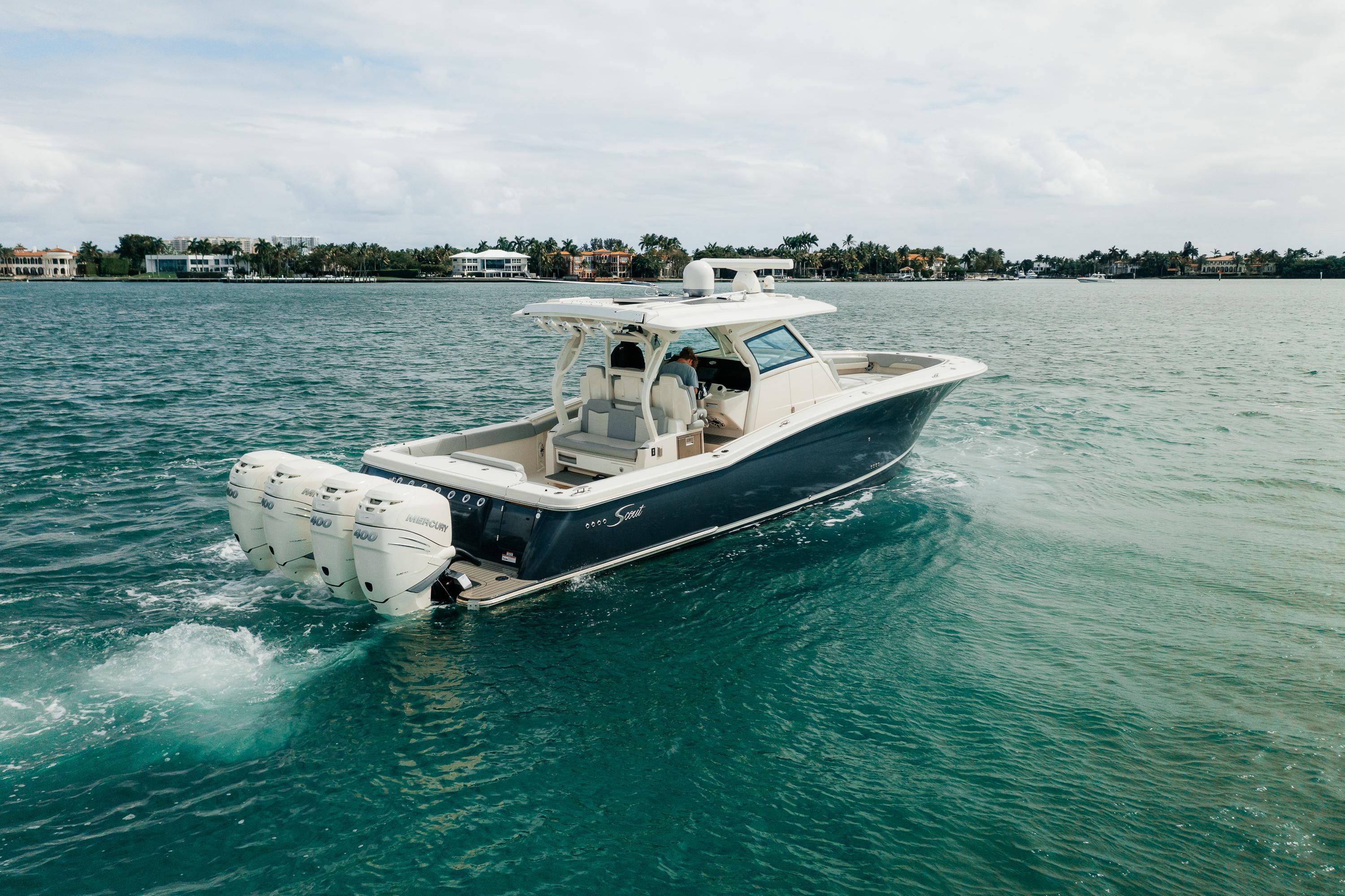 2021 Scout Boats 380 LXF. Currently only 2021 available on the market. One owner vessel. Custom ordered this boat new from Scout Boats factory. Equipped with every upgraded option available from the factory. Only 280 engines hours on quad Mercury 400's. Equipped with Brunswick extended warranty until 2027. Options listed below. Full Hul Color Shark GrayPainted Accent Strip -Scout WhiteMercury Quad 400M VDO V8 AMS w/ Joystick /Sky Hook whiteGarmin Display Upgrade to (3) 8616B175 L&HThru-Hull Transducer GMR424 XHD2 Marine Radar Garmin VHF 315 RadioXM Stereo/WeatherGrigio Cushion PackageForward Deck Shade CanvasConvertible leaning post (inc. grill, sink & Leaning Post Configuration)Sea Keeper 5Gyro Stabilizer System8kW Generator (upgrade from 5kW)(4) SMX53 LED underwater LumishoreCustom Painted FLIRCustom Painted Radar Custom Painted TVRetractable Rocket LaunchersElectric Sure Shade Integrated RetractableHot Water Shower on Deck6 YEAR BPP PASSPORT PREMIERETaco 380XL Cranking OutriggerQuad Engine Flush KitBow table &lounge filler cushion