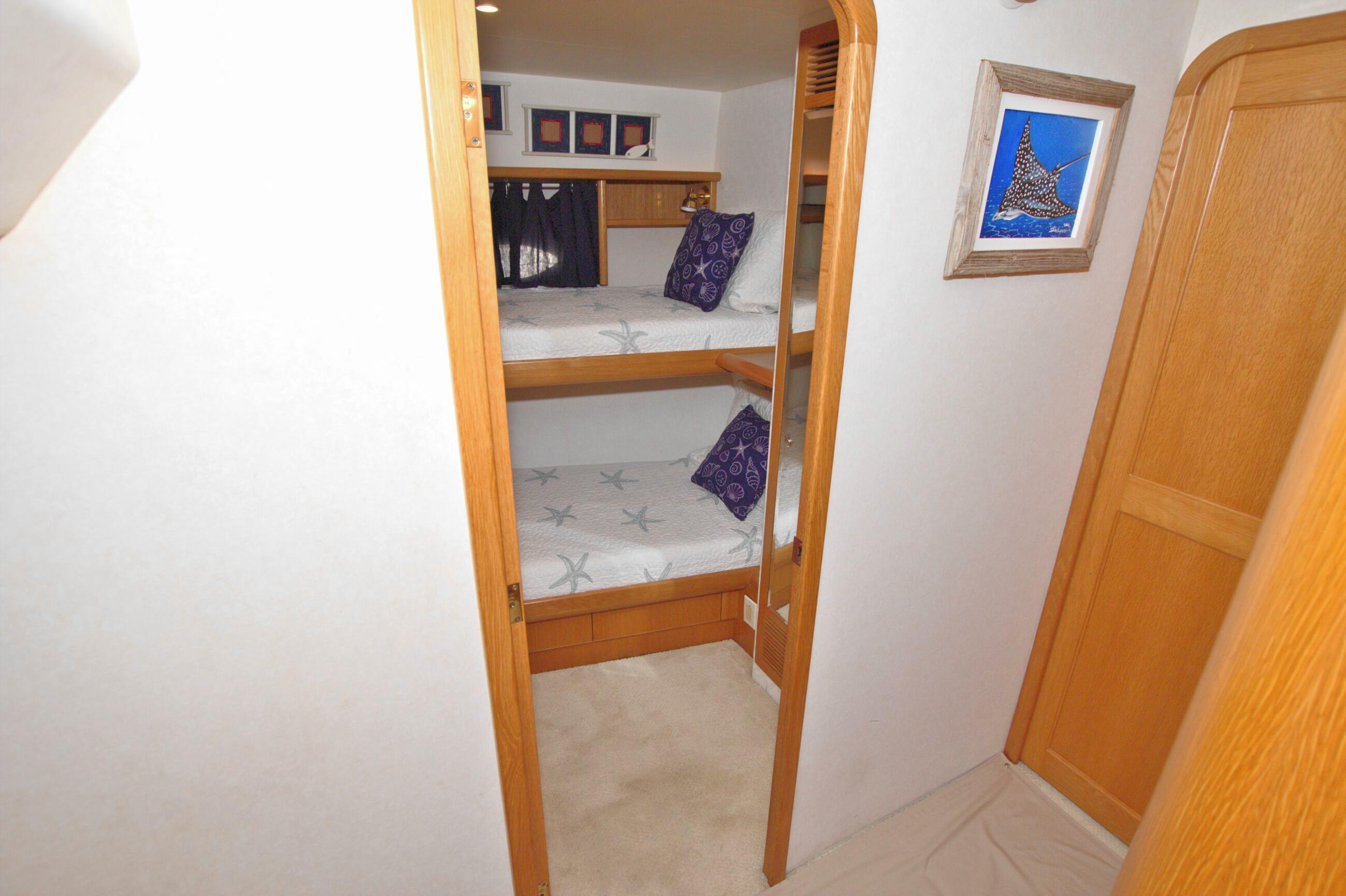 1999 58' Son Ship by West Bay – A Highly Upgraded, Self-Sufficient Cruiser for Extended VoyagesThe 1999 58' Son Ship, built by West Bay, is currently owned by an experienced cruiser who has outfitted Wavos Rancheros for long-range cruising while maintaining complete self-sufficiency. With an extensive list of upgrades and meticulously performed maintenance, this vessel stands apart from similar boats in its class.West Bay, the parent company of Son Ship, is renowned for producing high-quality, robust superyachts, and Wavos Rancheros is no exception. The attention to detail and overbuilt systems are evident throughout the vessel. Read on to explore the impressive features and upgrades of this exceptional yacht!Spacious Aft Deck with Thoughtful FeaturesBoarding Wavos Rancheros from the large, teak-clad swim platform is a breeze, thanks to strategically placed handholds for safe disembarking. Two pop-up cleats provide convenient tender storage, and the two 50 AMP shore power cords—recently replaced—are managed by a Glendinning Cable Master system for easy operation.The spacious aft deck features a locking fiberglass door for added security, keeping unplanned swim adventures at bay while cruising. The deck’s 4’ freeboard ensures a safe area for pets or children. You’ll also find a propane grill, a refrigerator for convenient access to cold beverages, and a hidden portside docking station for easy docking. A combination staircase and ladder provide access to the flybridge, which offers protection from the elements with its overhang.Luxurious Salon with Comfortable AmenitiesEnter the salon through two opening doors, designed for easy furniture replacement and appliance access. The large, bright salon boasts a U-shaped sofa, seating up to six adults, and a high/low table for dining or entertainment. On the starboard side, two new leather barrel chairs are paired with a table. A U-Line ice maker, storage for electronics, and a 35" Vizio smart TV with a sound bar round out the entertainment options.The salon features expansive windows for stunning views of your surroundings, complemented by custom wood mini-slat blinds. The space is climate-controlled with its own dedicated HVAC system.Fully Equipped Galley and Lower HelmA few steps up from the salon, the galley and lower helm area await. The galley is a chef’s dream with Corian countertops, ample storage, and 270-degree windows that offer breathtaking views. High-end appliances include a 4-burner Ceran glass cooktop, Whirlpool oven, Broan trash compactor, GE side-by-side refrigerator, Toshiba microwave, and Frigidaire dishwasher.The lower helm station is designed for ease of use and convenience, featuring cutting-edge electronics like three 16” Furuno Navnet Touch Screen MFDs, a Furuno autopilot control, and a comprehensive array of instruments for navigation, sonar, speed, and depth. Wireless Yacht Controller, a spotlight, and night vision camera enhance night navigation.Spacious Accommodations for Long VoyagesThe accommodations level features three comfortable staterooms, starting with the master suite. The master cabin offers abundant storage, including a walk-in closet and a hidden washer/dryer. The ensuite head features a newer Raritan macerating toilet, Corian countertop with a single bowl sink, and a spacious shower. The queen-size, centerline berth ensures restful sleep, and the suite is temperature-controlled by its own HVAC system.The midship cabin, featuring upper and lower berths, offers versatile storage options, while the second head serves as both a day head and a guest bathroom. The VIP stateroom forward offers an island queen bed with storage and private HVAC, ensuring comfort and privacy.Outdoor Spaces and Forward DeckThe exterior of Wavos Rancheros offers easy access to the forward deck via port and starboard sliding doors. The side decks connect the aft deck to the bow, protected by sturdy stainless steel railings. The bow features MarQuipt tide ride stairs, neatly stored for easy deployment. The anchor system includes a 105 lb Mantus anchor, 250 feet of 3/8” galvanized chain, and a brand-new Muir hydraulic windlass for simple anchor retrieval.A Vessel Designed for Cruising Comfort and ReliabilityFrom its overbuilt systems to its attention to detail, Wavos Rancheros is a one-of-a-kind vessel. Whether cruising long distances or enjoying time at anchor, this yacht offers unmatched comfort, safety, and self-sufficiency for extended voyages. With its numerous upgrades, well-maintained systems, and spacious accommodations, this 1999 58' Son Ship by West Bay is ready for its next adventure.For more information or to schedule a viewing, contact us today!