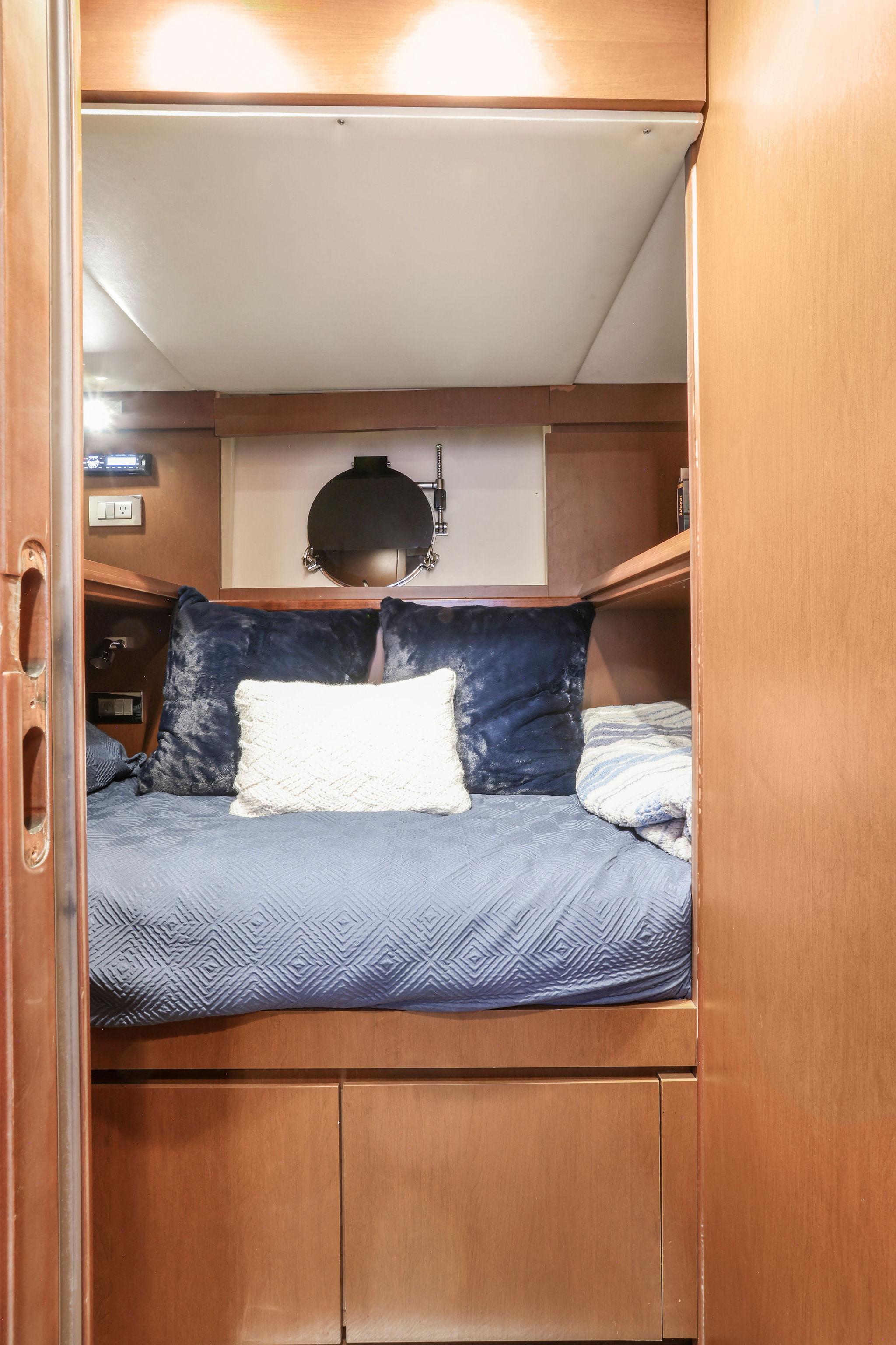 - Forward to the portside is a walk-in closet with drawer storage inside