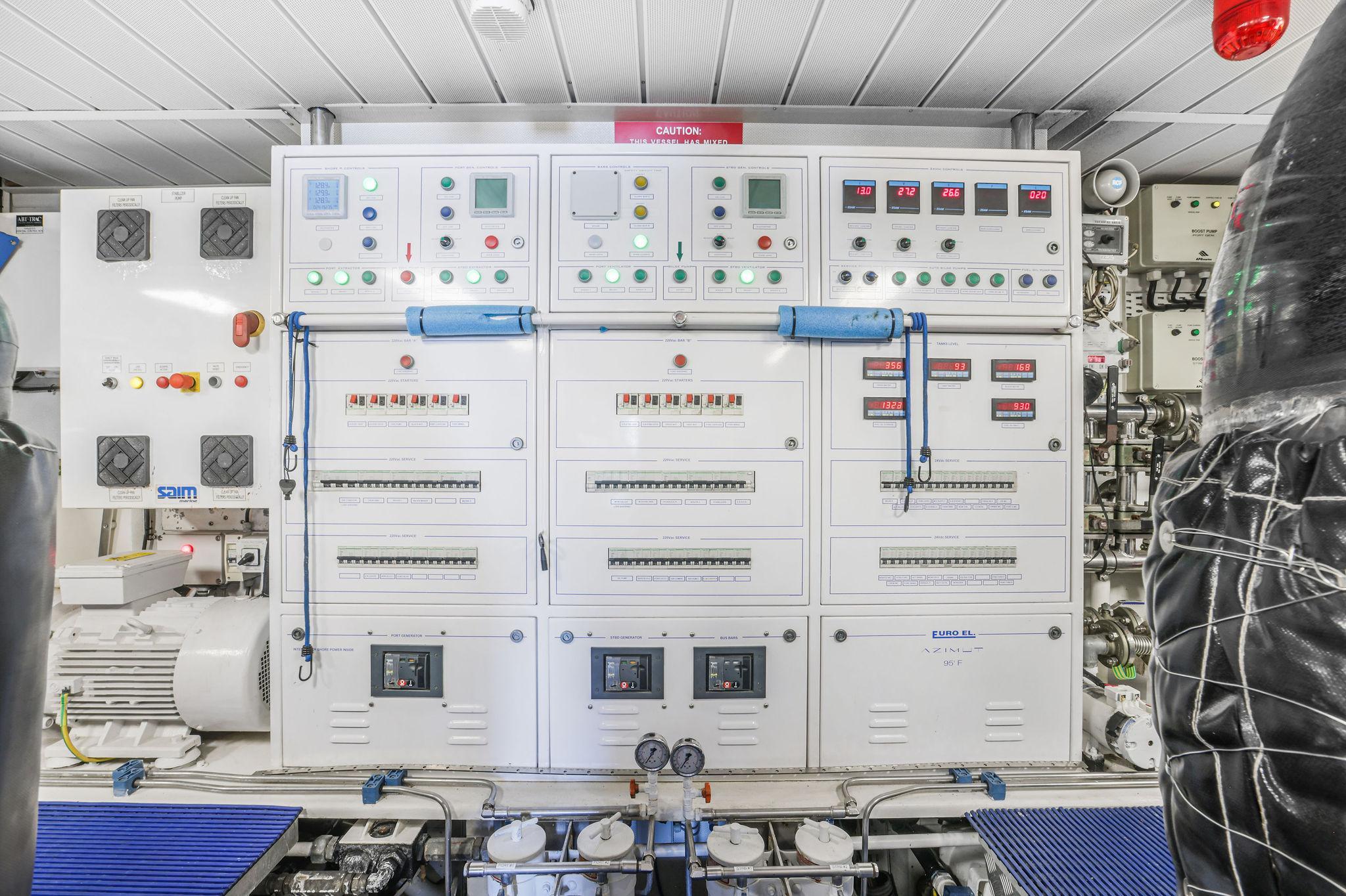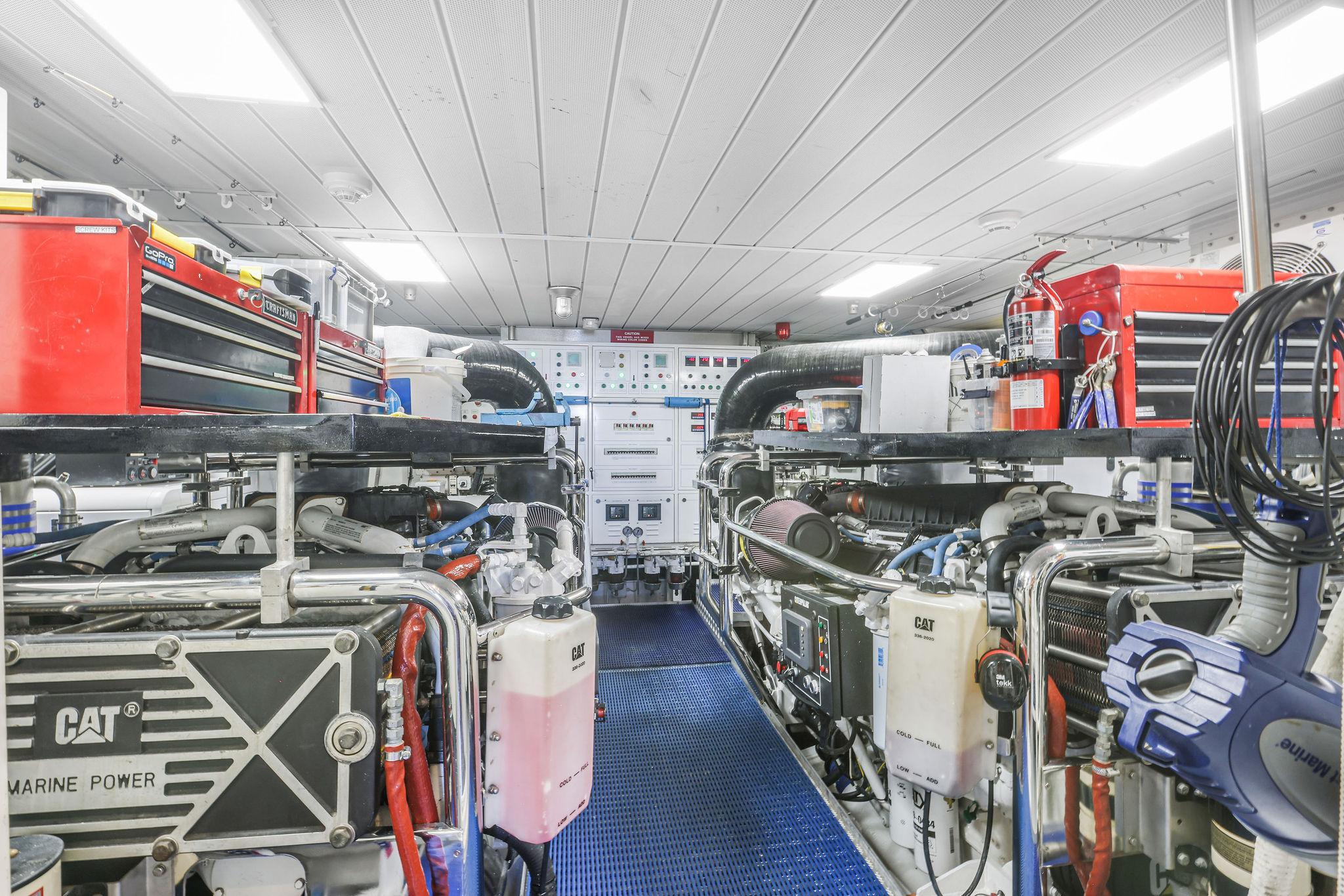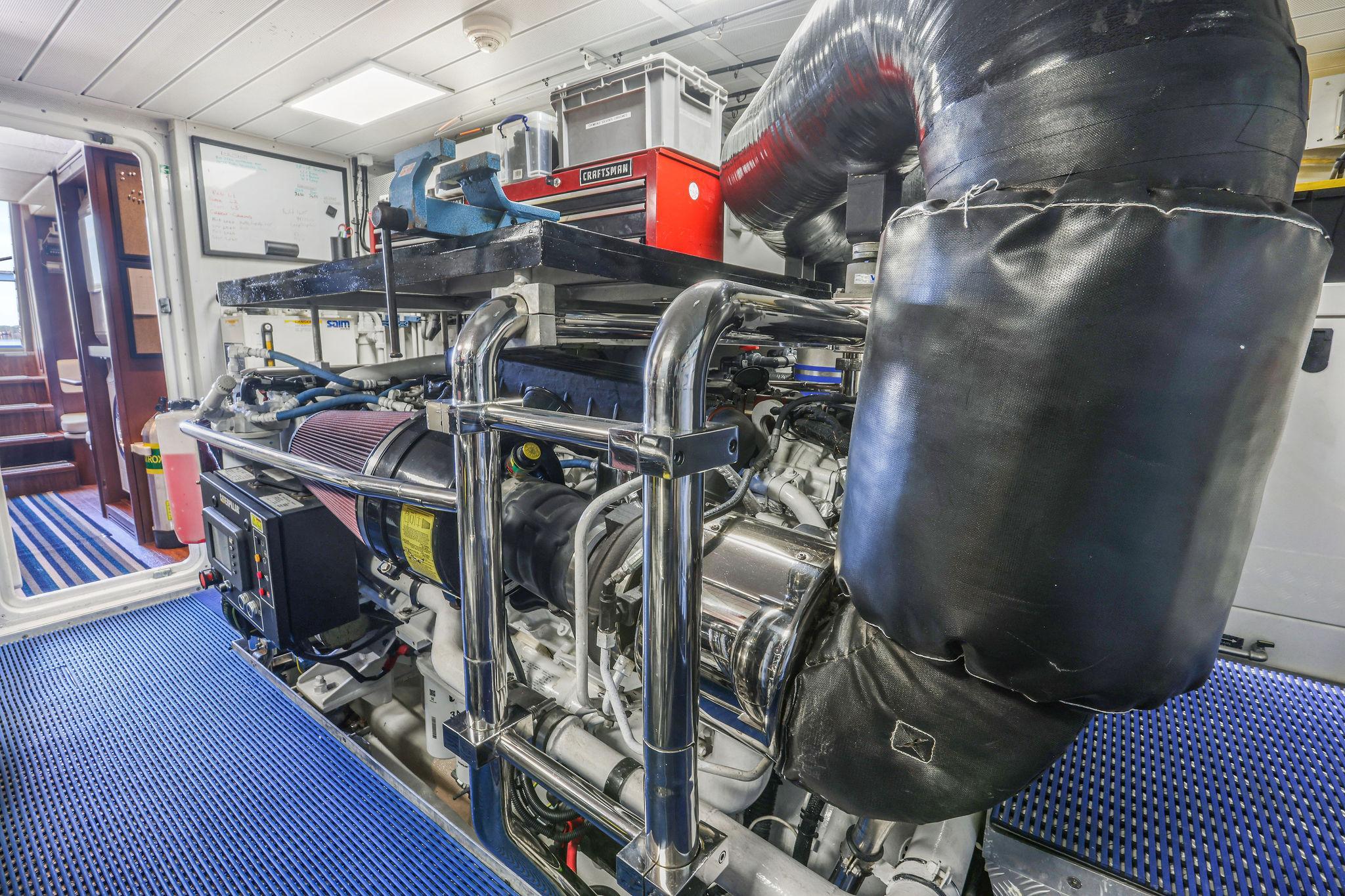 - Engine room cameras, Craftsman tool boxes, quick removable storage tables above motors, vice