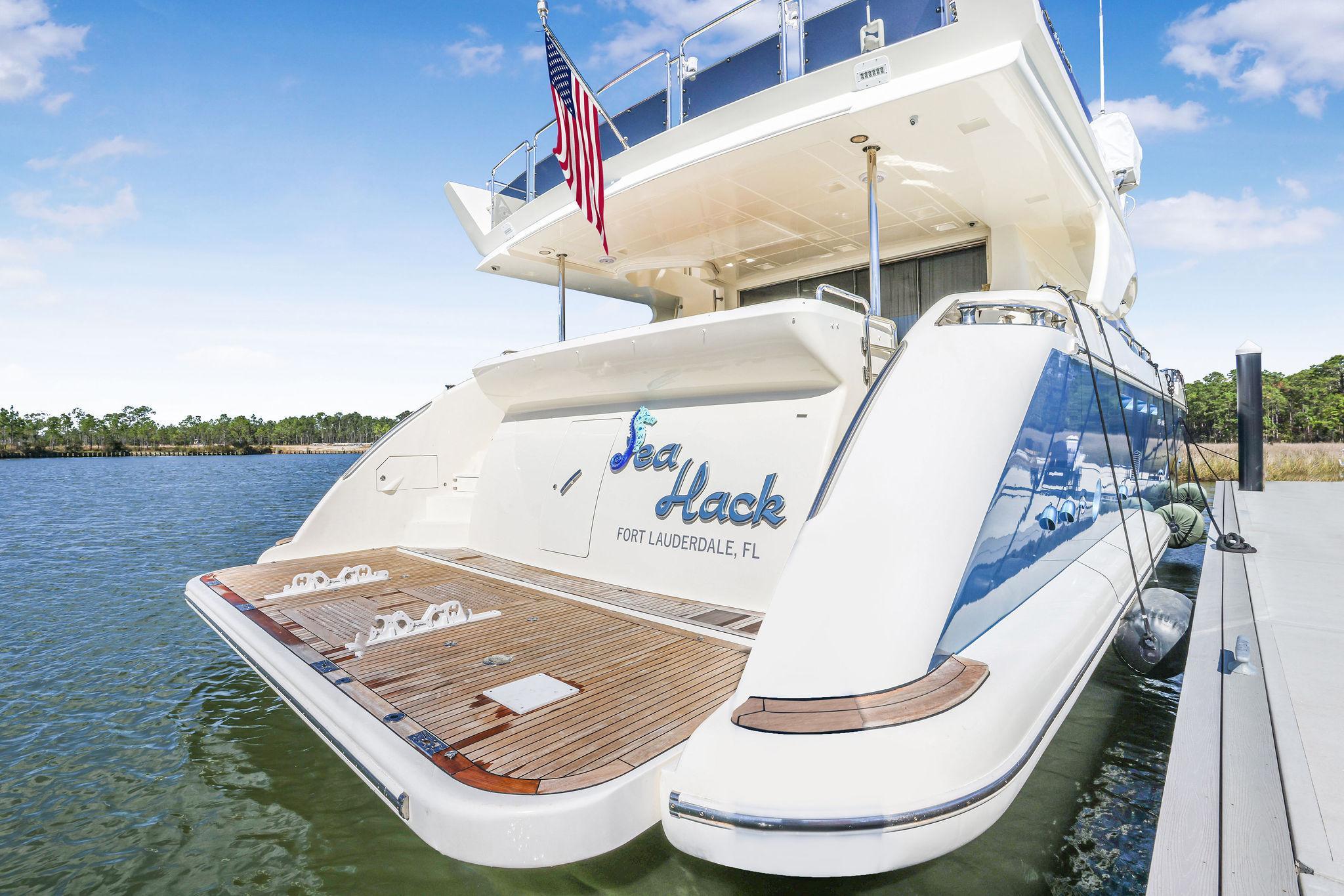 - There is still teak on the aft near transom and on the hydraulic swim platform