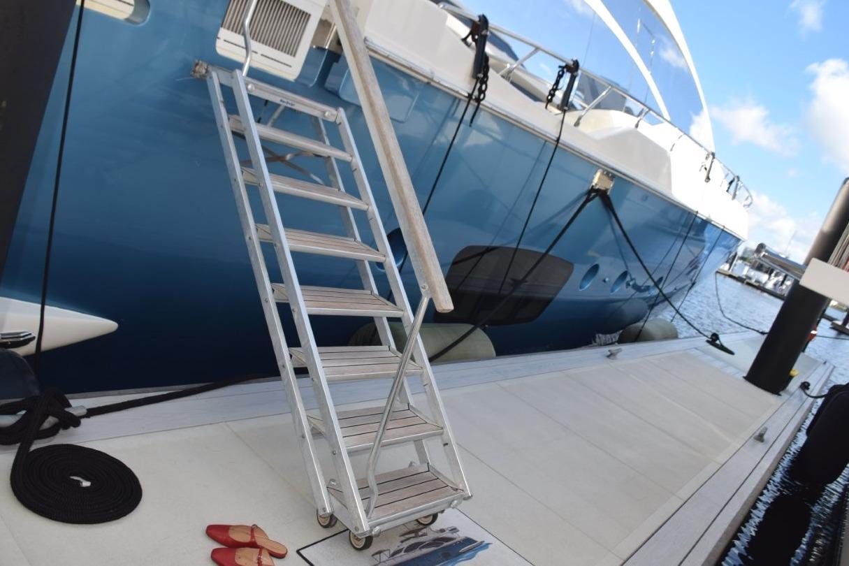 - From the top starboard sidestep there is a Opacmare stainless steel retractable passarelle with guidelines. Controls for this unit is in the aft deck railing.
