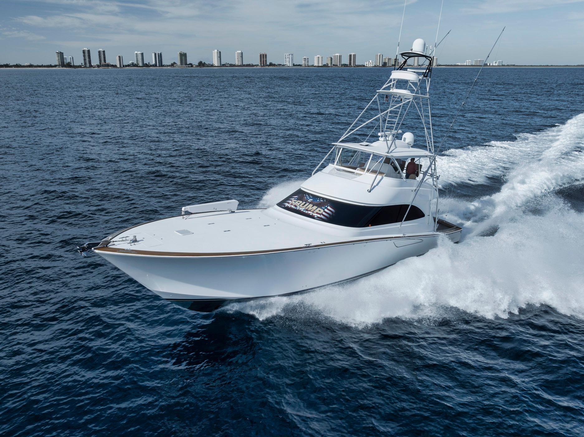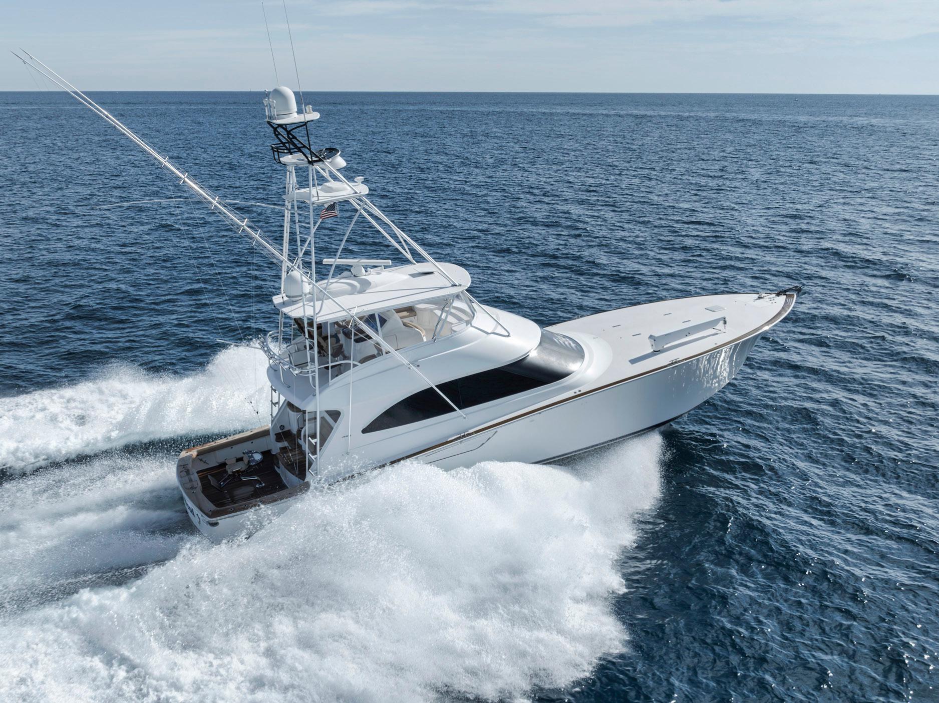The 70 enjoys a familial resemblance to its siblings the Viking 82 and Viking 76. The aggressively raked stem featuring better than eight feet of freeboard forward is designed to make small work out of those big head seas typically encountered offshore when hunting marlin. Likewise, the freeboard is a subtle indication of the significant headroom beneath the flush foredeck. The sheer line is pure sweetness that tapers aft to three-feet of freeboard in the cockpit for ease of releasing and tagging billfish and tuna.