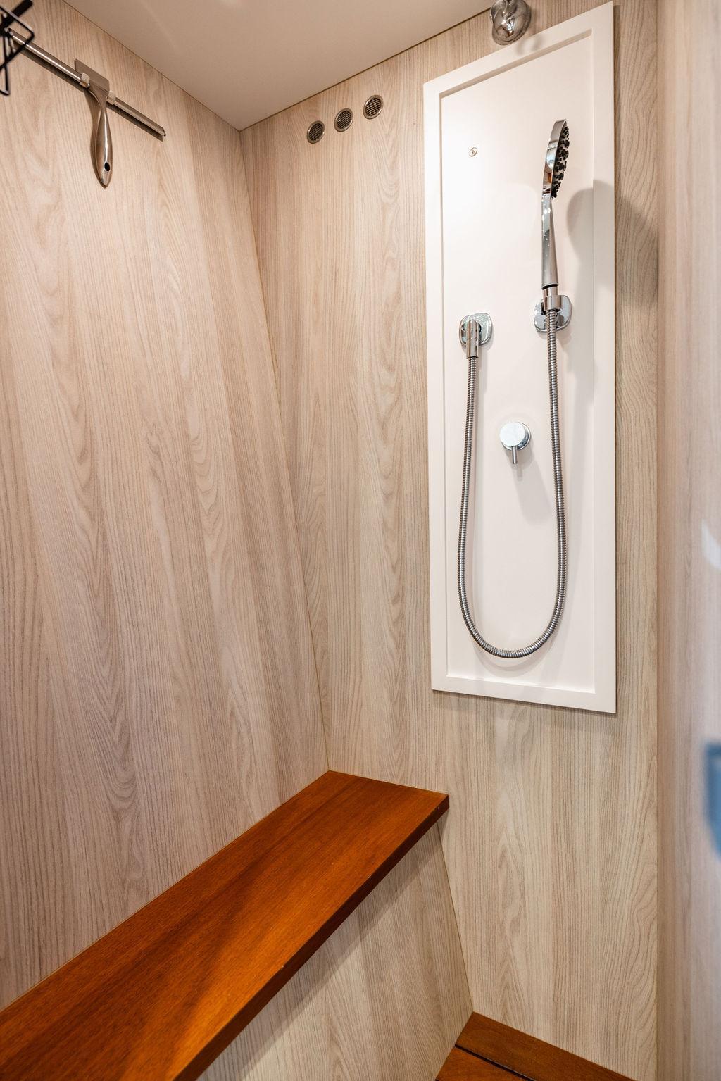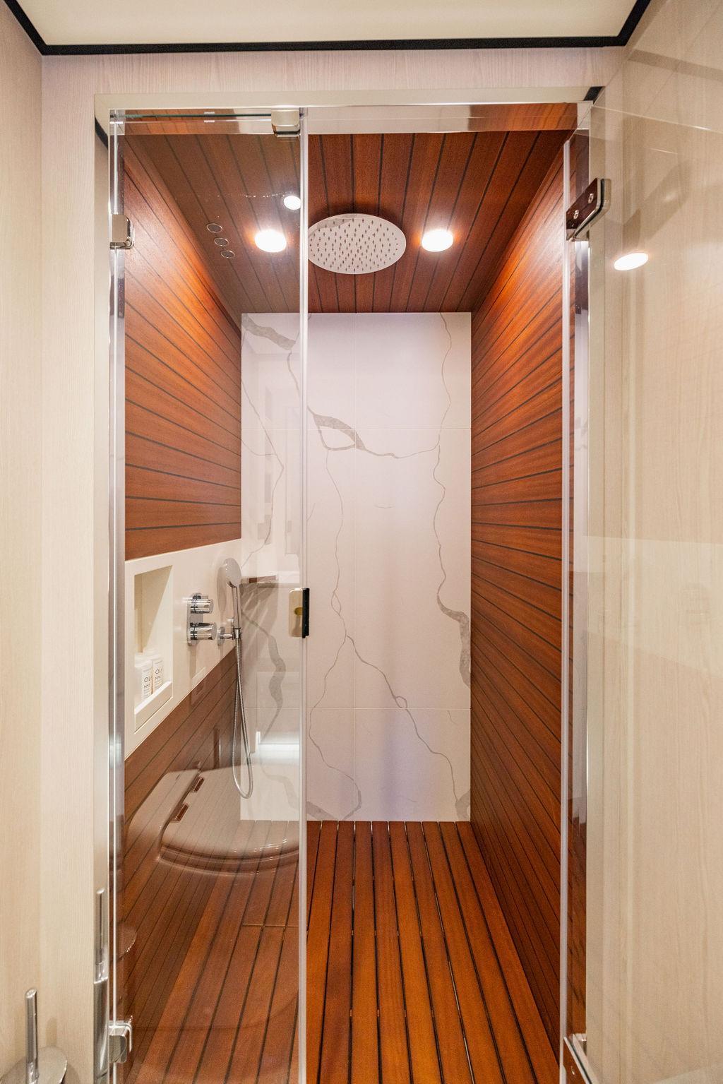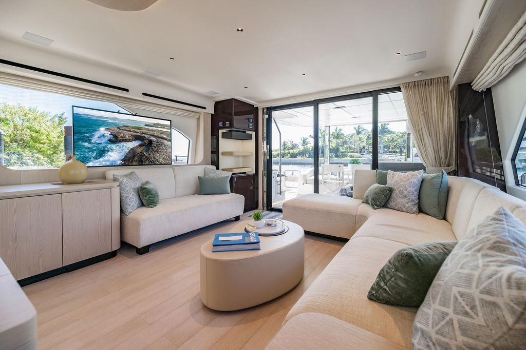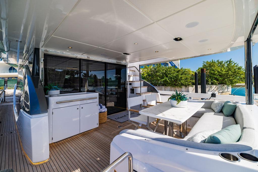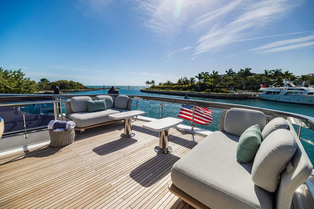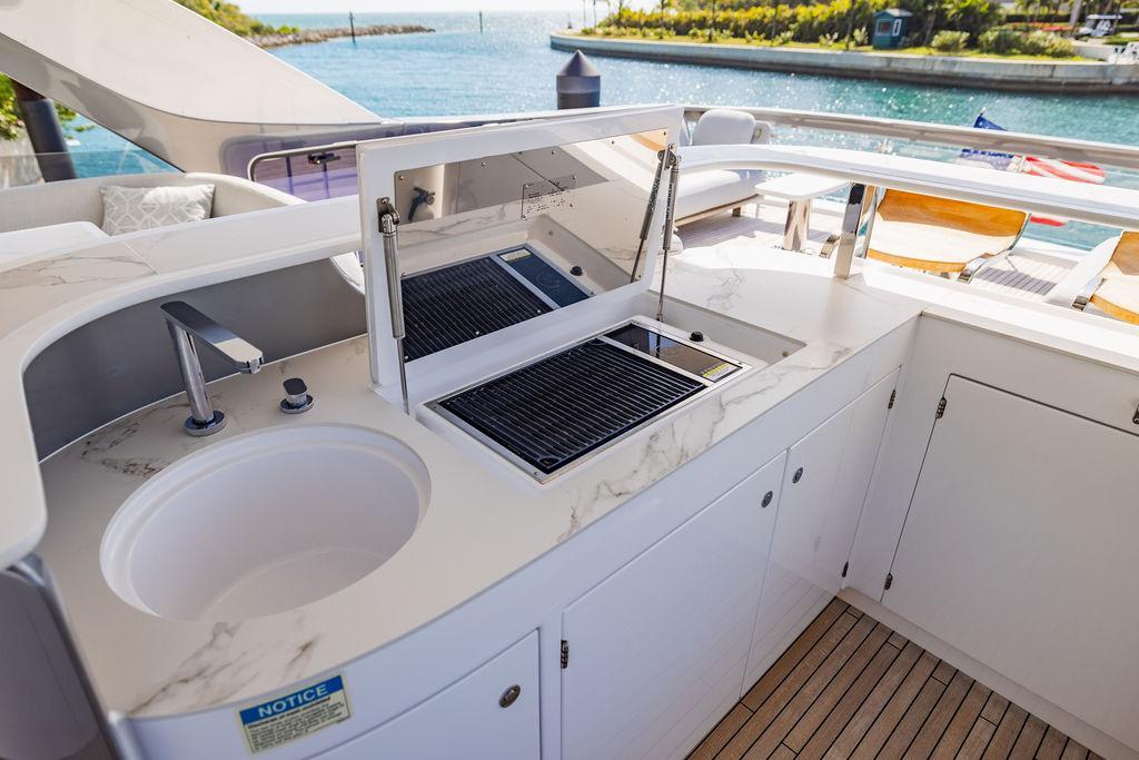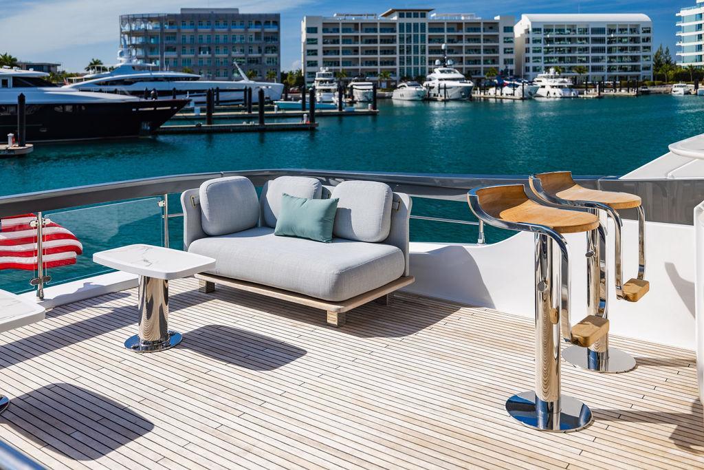 Through impeccable spatial solutions, the Fly 78 mimics the ambience of a larger yacht without compromising the sportive agility of smaller vessels. Secluded quarters eclipse behind-the-scenes service happenings, in the first ever boat in its category to organize completely partitioned areas for the galley and crew. A fluid and original onboard culture for the guests, elated by space blissand sheer sophistication.Revel in the atmosphere of the Fly 78, without compromise.Advance package :Black Water Tank Washing System, Dècor Upgrade Extra conduits,Grey Water Tank Washing System,,Miele appliances (upgrade for oven and cooktop), Watermaker predisposition (salt water - fresh water - electrical) OPTIONALS MAIN SYSTEM: 3 x VOLVO IPS 1350 (1000 hp) upgrade, Air Purification System Clearline, air conditioning raw water purification system, Cockpit docking station and bow thruster, (including engines control joystick and thruster control), Dynamic positioning system - Skyhook, Seakeeper Stabilizer 26 EXTERIOR: Bow sun shade with removable carbon fiber poles for sunbathing area and sitting area, Bow table with corian frame and synthetic marble insert, Cockpit awning (automatic), Cockpit Chair (mod. Oskar), Cockpit furniture with corian frame and synthetic marble insert top, Co-pilot seat on fly, Dimmer lights on fly, Electric awning for aft flybridge (requires hard top), Electric searchlight upgrade to ACR Flagpole, Flybridge hatch, Hard top (painted in Etna Grey), Lounge furniture on aft fly with two love seats in Batyline fabric (A000127336) and two coffee tables with corian frame and synthetic marble insert, Luxury lighting package for exteriors, Painted boot stripe, Painted flybridge furniture (frontal panel) in Grigio Savoia, Manouvering lights on bow (nr.2), Teak on flybridge deck, Telescopic gangway, Nr. 2 exterior teak stools for flybridge bar, Spreader lights on aft fly, Synthetic marble insert for the lower part of the flybridge bar furniture top, Underwater lights under sponsons (2X2) and transom (3) Oceanled S3124S, Upgraded standard exterior cushions in Batyline fabric (A000127336), Upgraded standard exterior teak tables and tops in corian frame with syntetic marble insert tops, Watertight hand control for anchor winch.INTERIOR: Co-pilot seat in main helm, Forward salon sofa (lounge version), Additional storage cabinet in vip cabin designed by Achille Salvagni, Black-out system for master cabin curtains, Carpet Besana Royal 43 Divina Icelandic in lower deck, Dividing wall with door in crew cabin, Domotic lighting system in salon, Dresser in master cabin with settee in lieu of standard sofa on port side, Electric roman blinds with integrated blackout system in salon (in lieu of standard manual roman blinds), Gentas Cement floor for galley and main helm, Heads floor in Gentash Cement 26 (in lieu of standard teak floors), Lacquered bronze color inserts on forward salon bulkhead (in lieu of standard white lacquered inserts), Master head shower wall in Quartzite Statuario (in lieu of standard laminate with slate finishing), Mosquito net for portholes Roman blinds in master cabin (in lieu of standard venetian blinds), Roman blinds with integrated blackout system in vip and guest cabins (in lieu of standard venetian blinds), Safe in crew cabin Safe in master cabin Scenic lights for interior, Set of linens for cabins (crew cabin not included), Set of linens for crew cabin (standard configuration), Set of linens for third bed in crew cabin, Set of towels for one person with Azimut logo, Third bed in crew cabin, Toilet with bidet faucet feature in master head Wooden floor in main deckAPPLIANCES: Barbecue for flybridge furniture, Dishwasher Icemaker on fly Refrigerator and icemaker for cockpit furniture, Washer and dryer in crew cabin (2 units), Winecooler in galleyELECTRONICS: Garmin AIS 800 Garmin videocameras (nr.3), Raymarine Flir M364-C thermal camera, Volvo Glass Platinum packageVIDEO - TV - HI-FI Audio/Video Package (with SAT TV Antenna KVH Tracvision HD7 and Decoders) (hi-lo system for TV in salon included), Flybridge furniture with 43'' TV and lift with decoders and antennaEXTRAS; SMALLER HI-LO TABLE IN SALON TO BE ALIGNED TO THE AFT SIDE OF THE SOFA, IN ONE SINGLE FINISHING: BRUSHED OAK GRAY 10 GLOSS SALON COFFEE TABLE IN LEATHER A000120541 IN LIEU OF STD. LEATHER A000139335