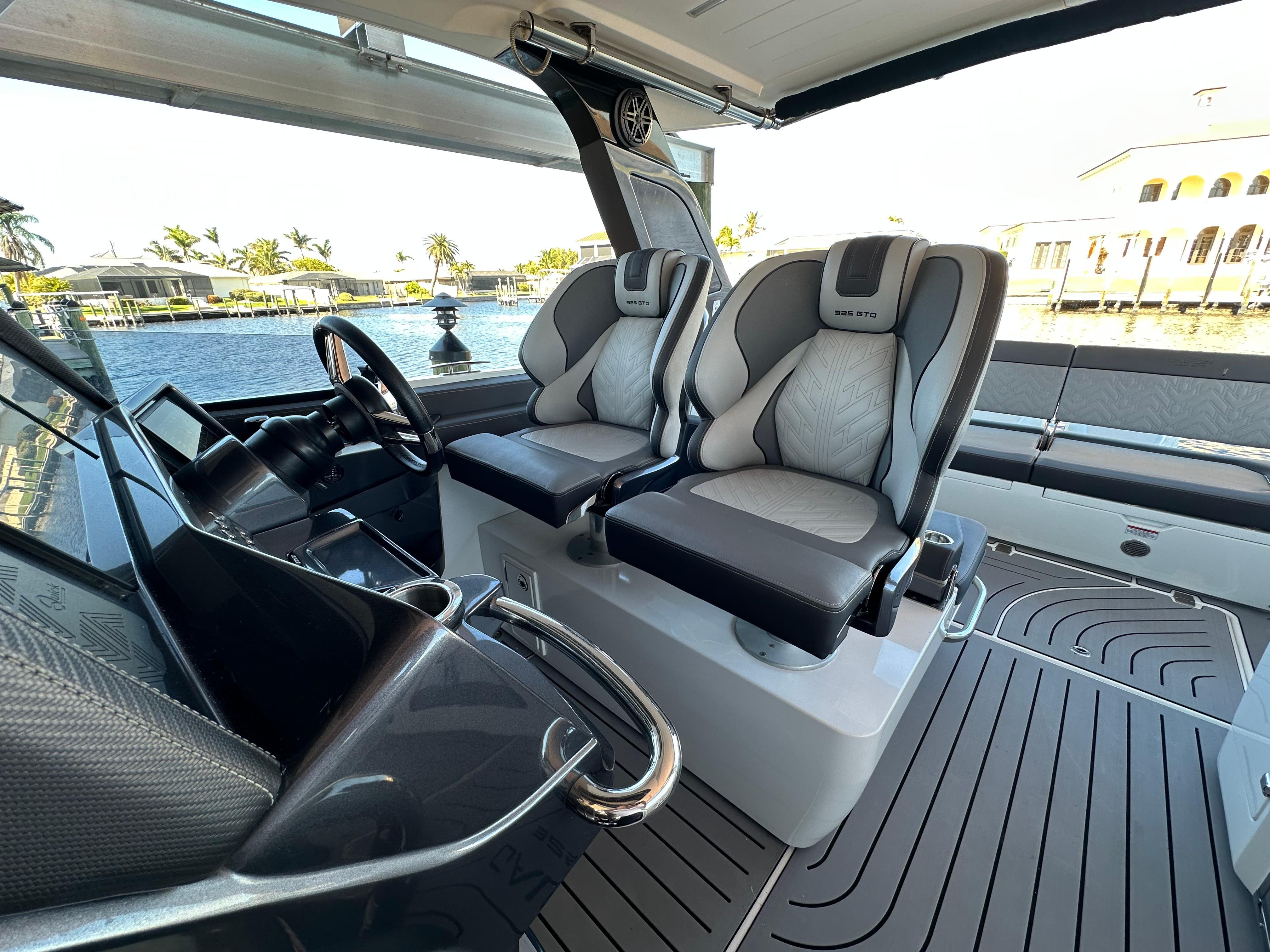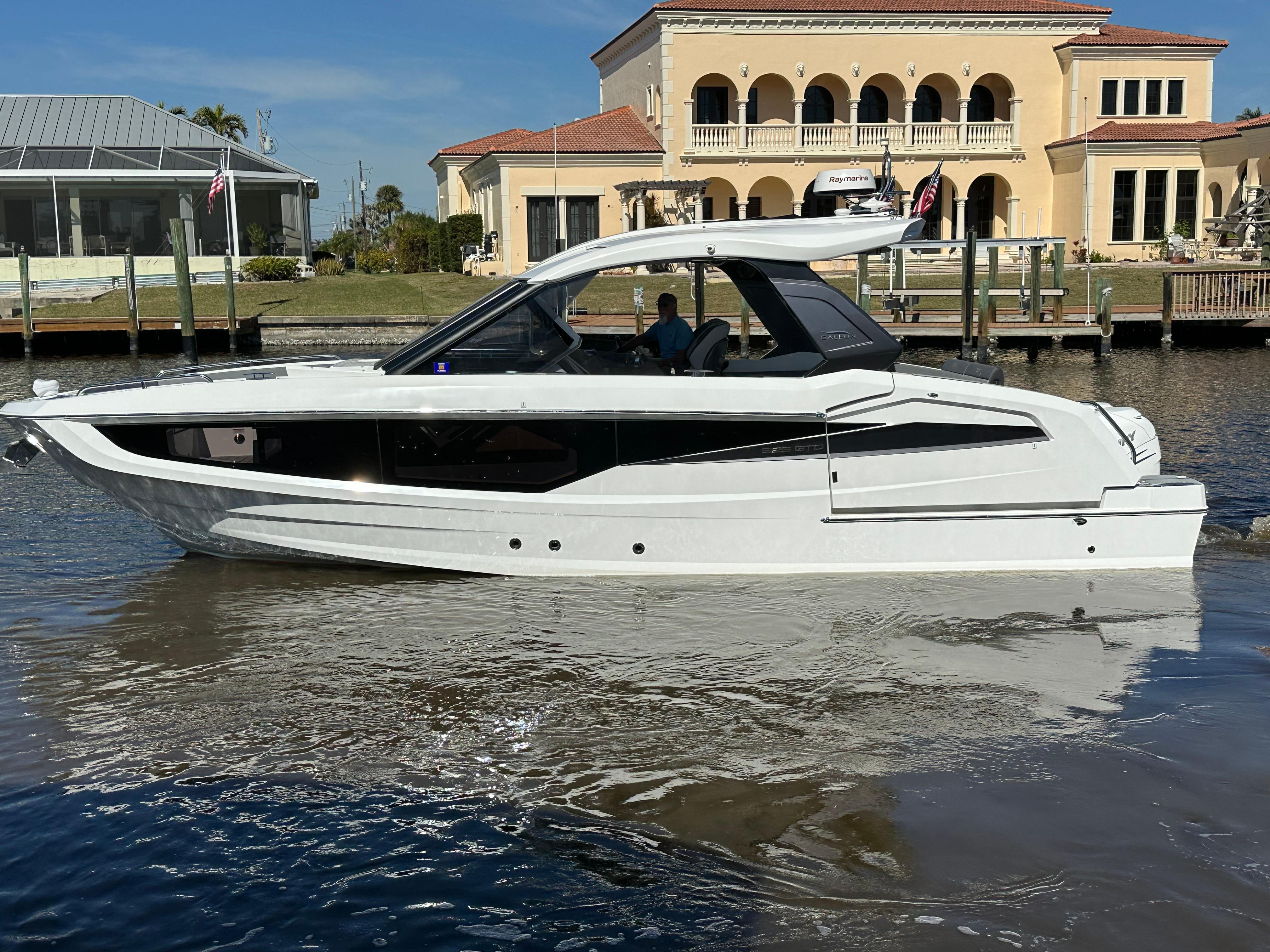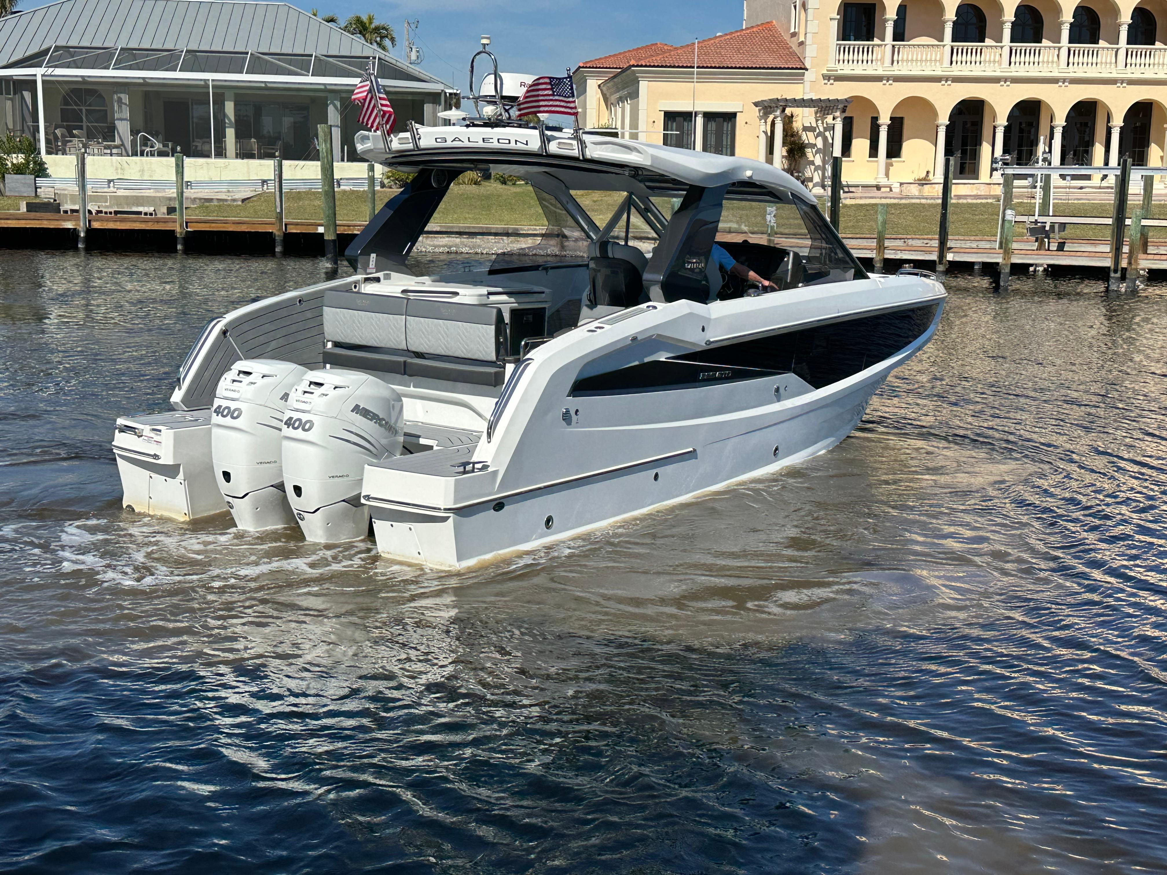 Low Hour 2022 Galeon 325 GTO is great shape and ready to go!!! The boat is powered with the upgraded Twin Mercury Verado 400's. Only 130 hour's on the boat and motors. The boat has been lift kept and under a cover since it was purchased. Very versatile boat that offers open bow seating along with a coupe enclosure with plenty of seating throughout the boat. Sporty Bucket helms seats that are adjustable with the touch of a button. Power Port fold down side wing for extra deck space when at anchor. Cockpit grill and refrigerator. Deisel Fischer Panda generator. Twin 16" Raymarine Chartplotters, Underwater lights, VHF Radio, Fusion Stereo System. Windlass Anchor, Electric Aft Sureshade, Cockpit A/C, Cabin A/C. The spacious cabin offer a galley with dinette, large head including shower. Large aft bed that sleeps two. All service is up to date. Don't miss the opportunity on this Clean low hour Galeon!!!