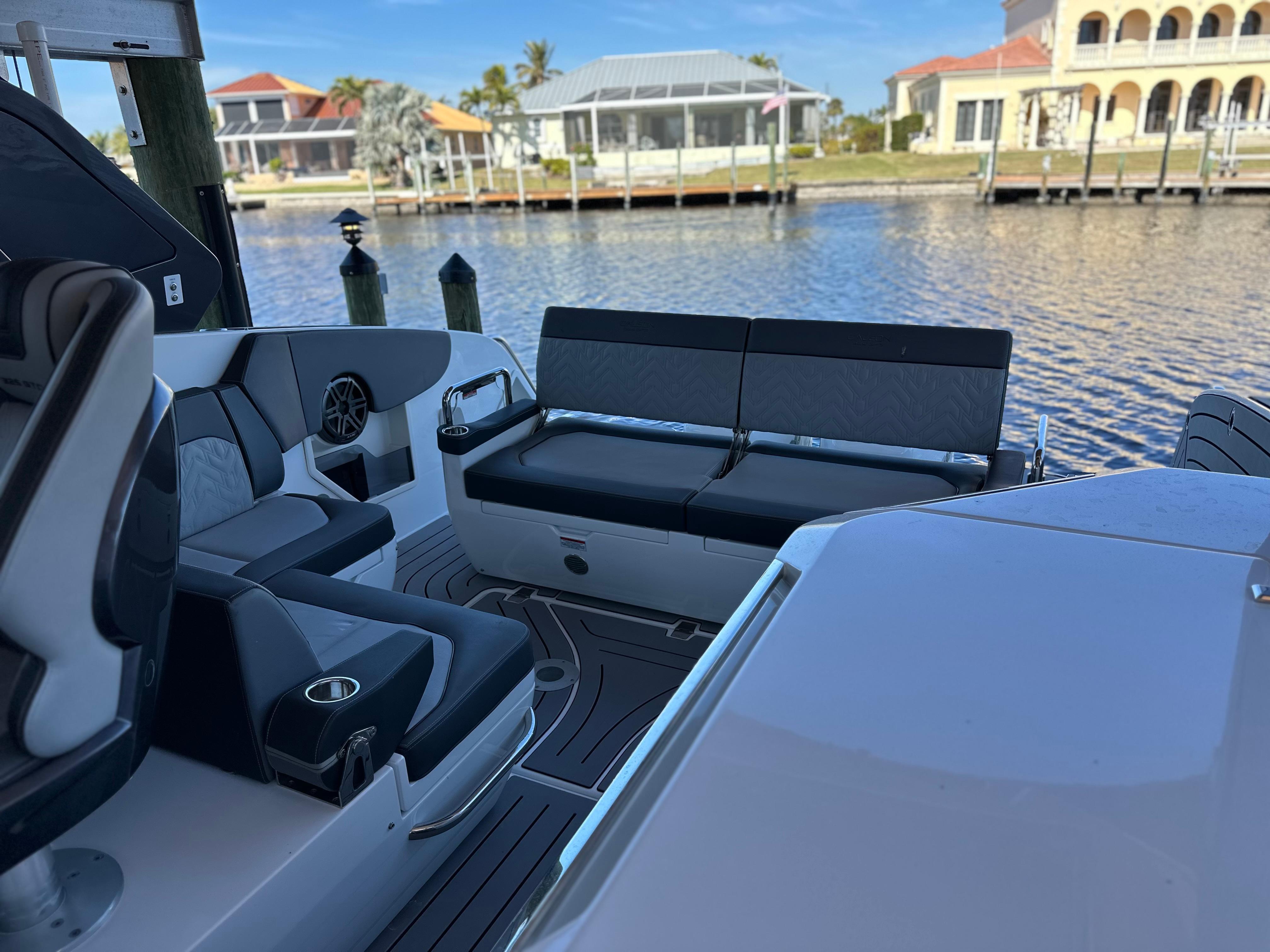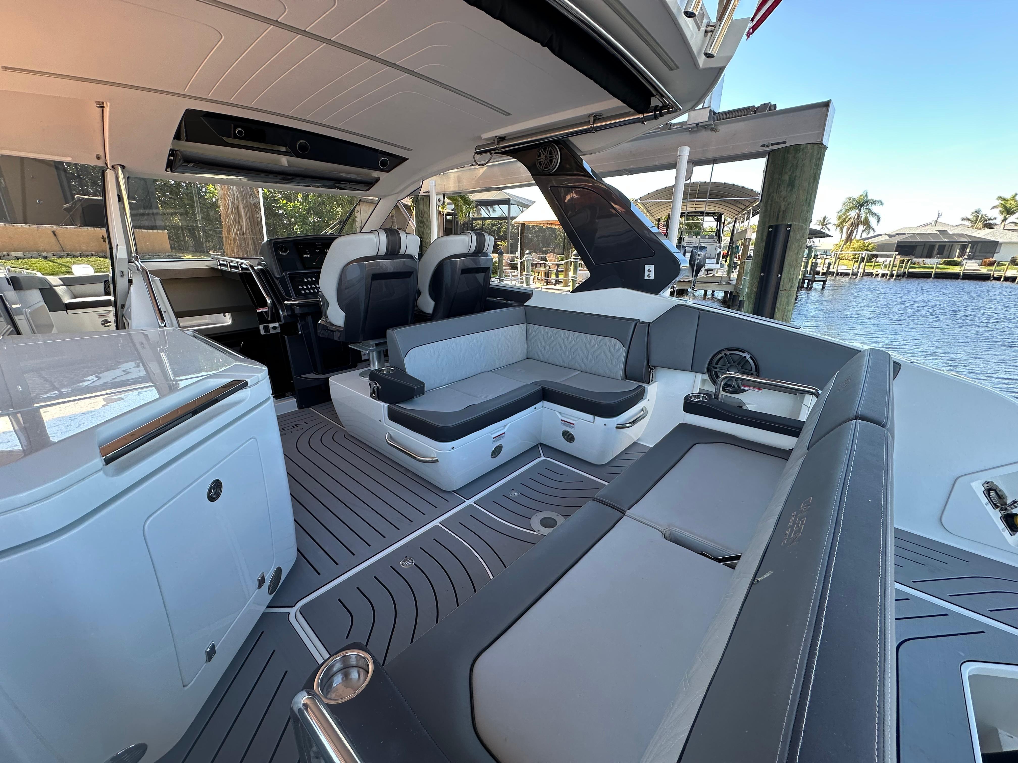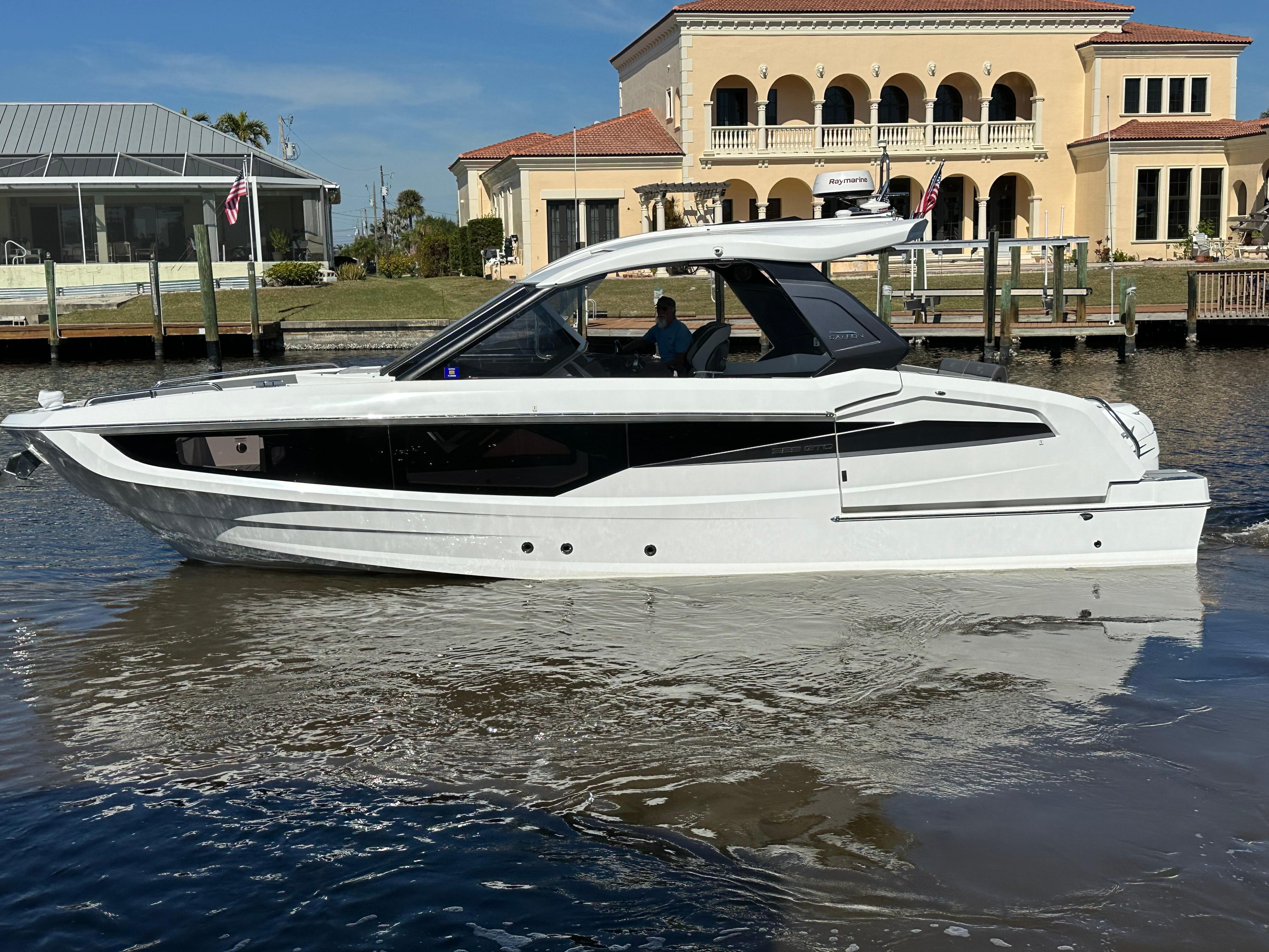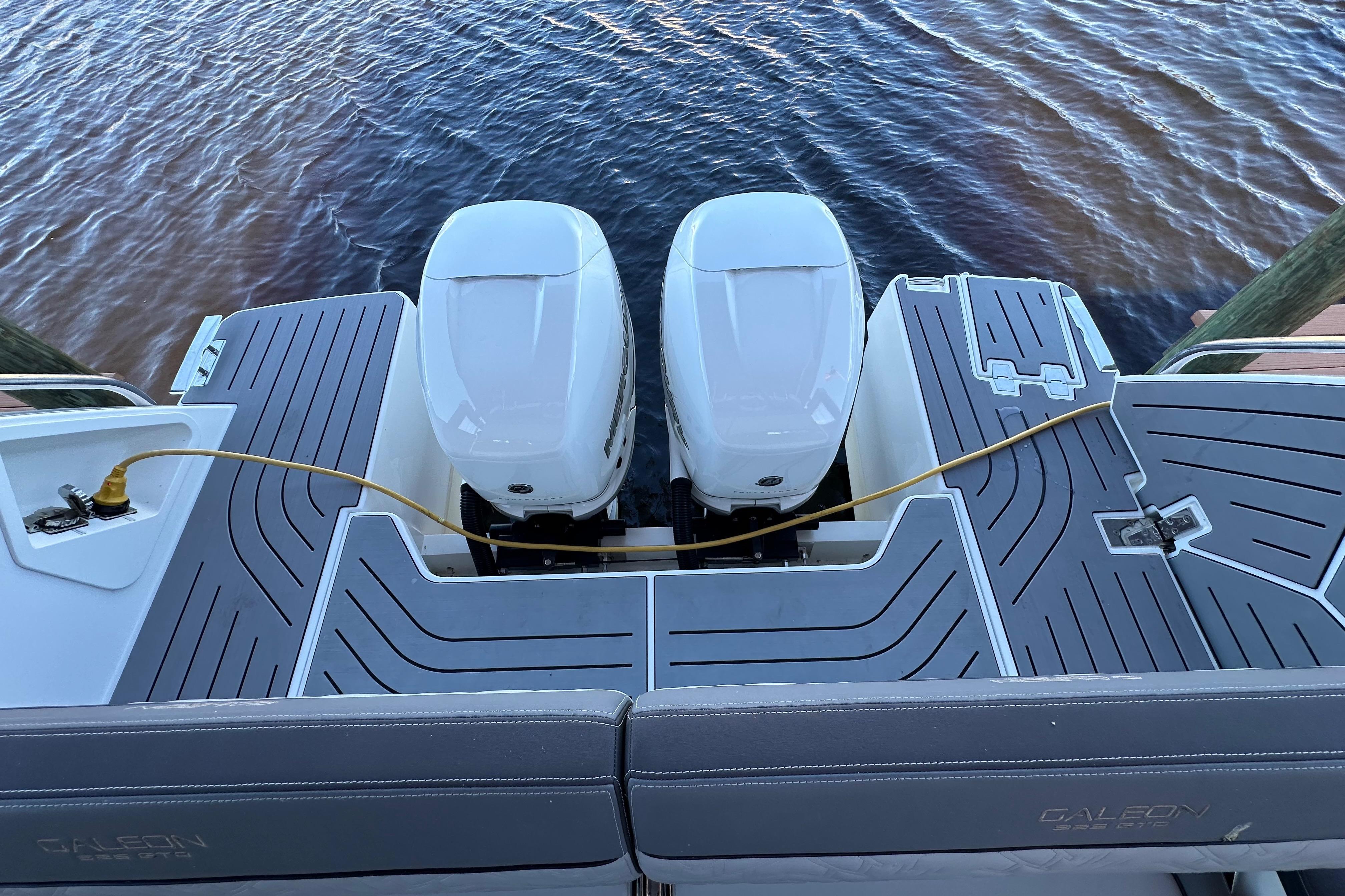 Low Hour 2022 Galeon 325 GTO is great shape and ready to go!!! The boat is powered with the upgraded Twin Mercury Verado 400's. Only 130 hour's on the boat and motors. The boat has been lift kept and under a cover since it was purchased. Very versatile boat that offers open bow seating along with a coupe enclosure with plenty of seating throughout the boat. Sporty Bucket helms seats that are adjustable with the touch of a button. Power Port fold down side wing for extra deck space when at anchor. Cockpit grill and refrigerator. Deisel Fischer Panda generator. Twin 16" Raymarine Chartplotters, Underwater lights, VHF Radio, Fusion Stereo System. Windlass Anchor, Electric Aft Sureshade, Cockpit A/C, Cabin A/C. The spacious cabin offer a galley with dinette, large head including shower. Large aft bed that sleeps two. All service is up to date. Don't miss the opportunity on this Clean low hour Galeon!!!