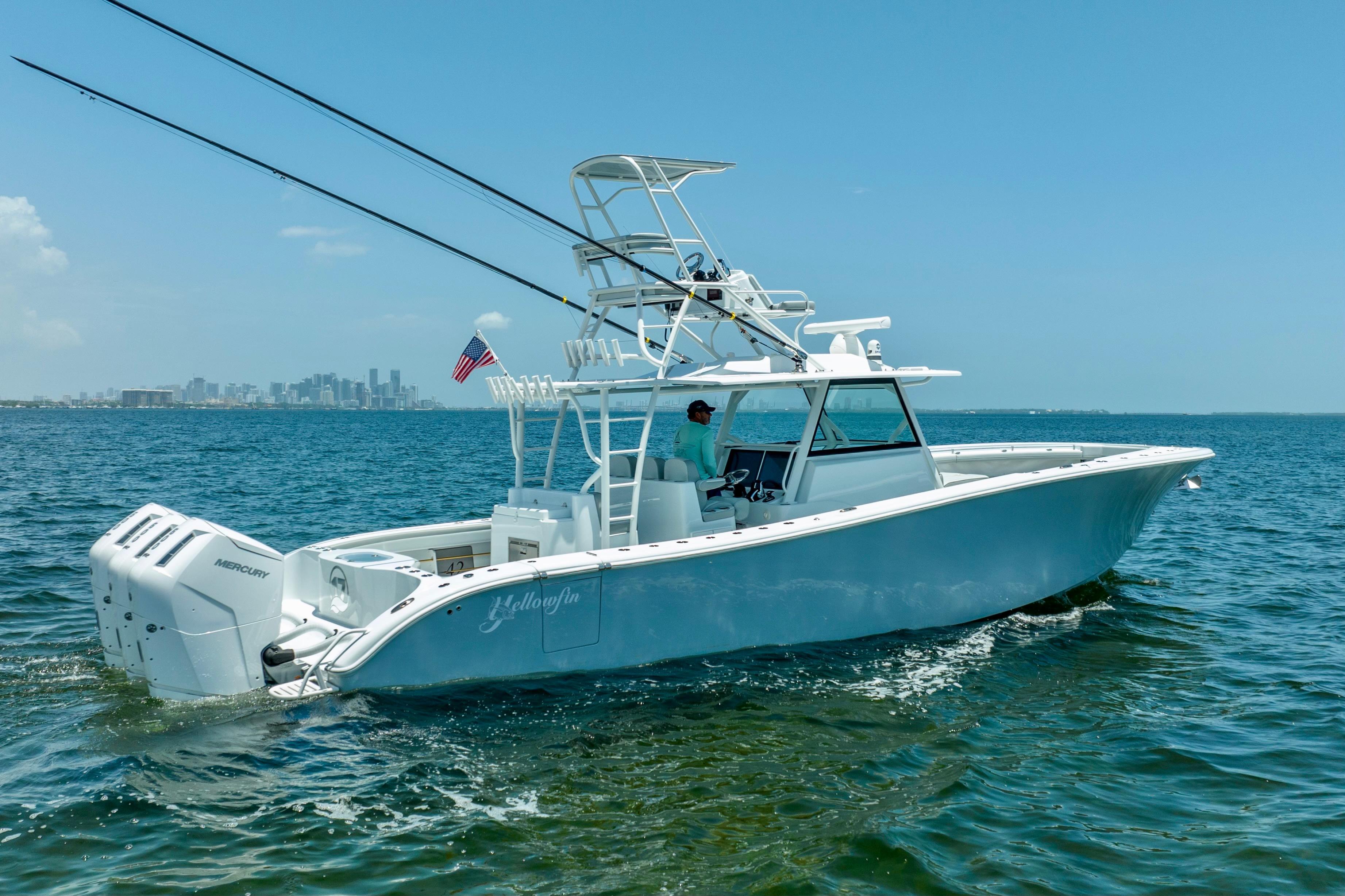 THE NEWEST 42' YELLOWFIN TO HIT THE MARKET!! THIS VESSEL IS LOADED WITH TONS OF OPTIONS AND UPGRADES!! JUST REPOWERED IN FEBRUARY OF 2025 WITH QUAD MERCURY 400V10'S!! 0 HOURS!! (NOT YET IN THE PICTURES)- Whisper Grey hull and underside of the hard top. - Windlass- Dive door- Marlin tower with full controls and Garmin unit - Custom front fracing seat on the Marlin tower- Double rod rack on the back of the hard top- (2) 24' Garmin 8624 units at the helm- 12' Garmin in the tower- Garmin HD Open array radar- Garmin ram mic VHF- Garmin autopilot - Massive JL audio sound system, speakers, subwoofers, and amplifiers.- Bow thruster- FLIR Night vision - Joystick - Double Row seating - Rear pull-out fridge - Custom covers- Underwater lights- Hard top lights multicolor - Under gunwale lights- Carbon fiber outriggers - Live-well window on the transom - Air conditioning system- Generator- Triple deluxe helm seating- Forward seating with hydraulic backrests- Custom Two-tone upholstery - Pump box system- Extra rod holders and cup/rod holders- Razor Lightbars - Transom boarding ladder THIS BOAT WON'T LAST!! COMPLETELY LOADED!! WE CAN ASSIST WITH FINANCING AND WILL CONSIDER ALL TRADES!