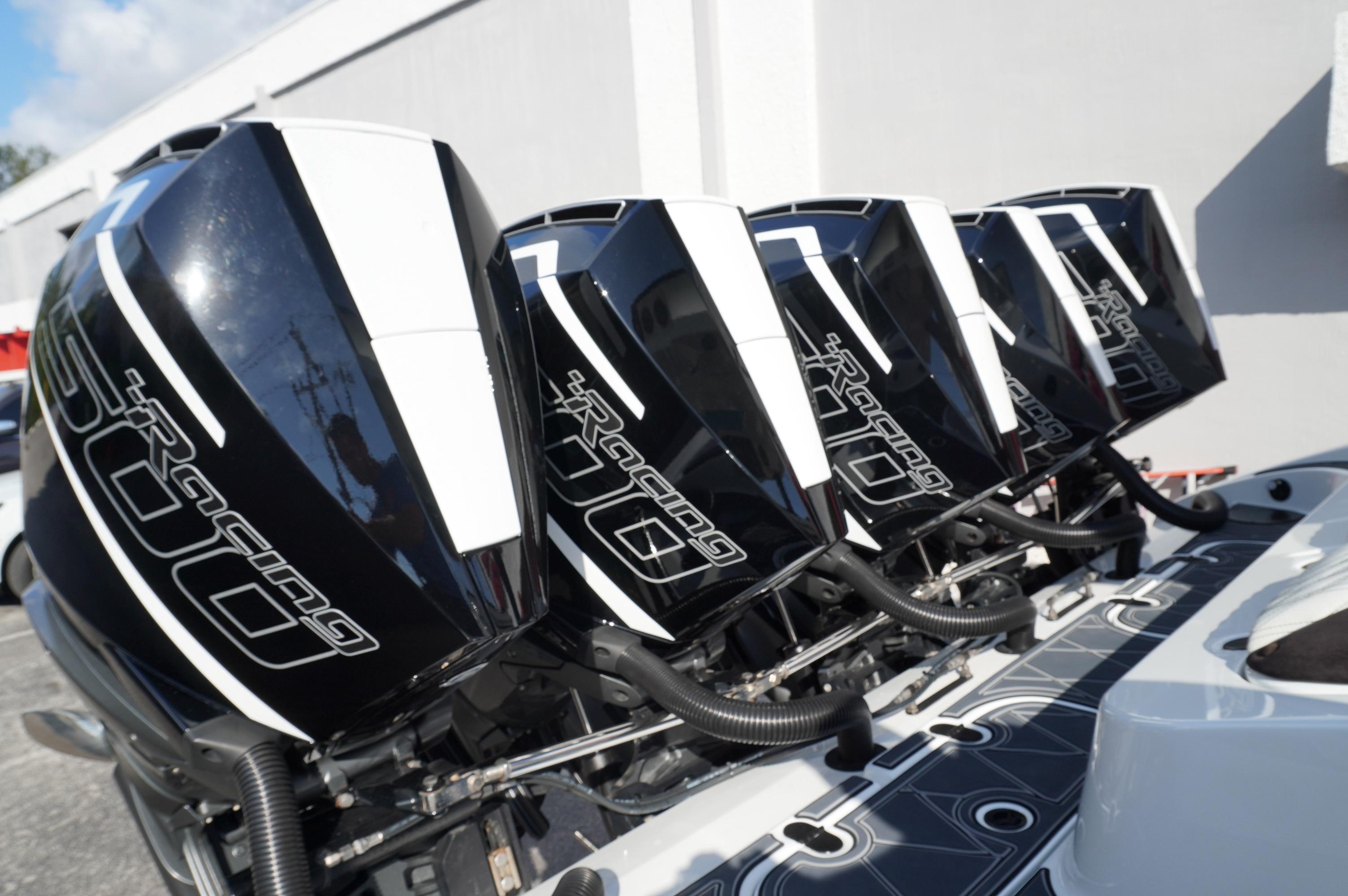 2021 MTI-V 42 with 54 hours on Quint Mercury Racing 500Rs (One year old) with original warranties to 12/16/26 that can be extended, Very Nicely Optioned Boat with key options such as , Black Out Hardware Package, Aluminum Cleats, Bar with Clear doors and Bottle Holder, Stage 3 Stereo with Wing Speakers, Under Water Lighting, Cabin Air Conditioning, Triple Garmin Screens at helm, Chill Plate in Cooler, Bow and Stern Thrusters, Anchor Windlass, Hard Top Skylight and Cabin top Skylight, Full Cover, 24,000lb Myco Aluminum Trailer is Included. Multi MTI owner wants this boat to be sold. BRING ALL OFFERS!