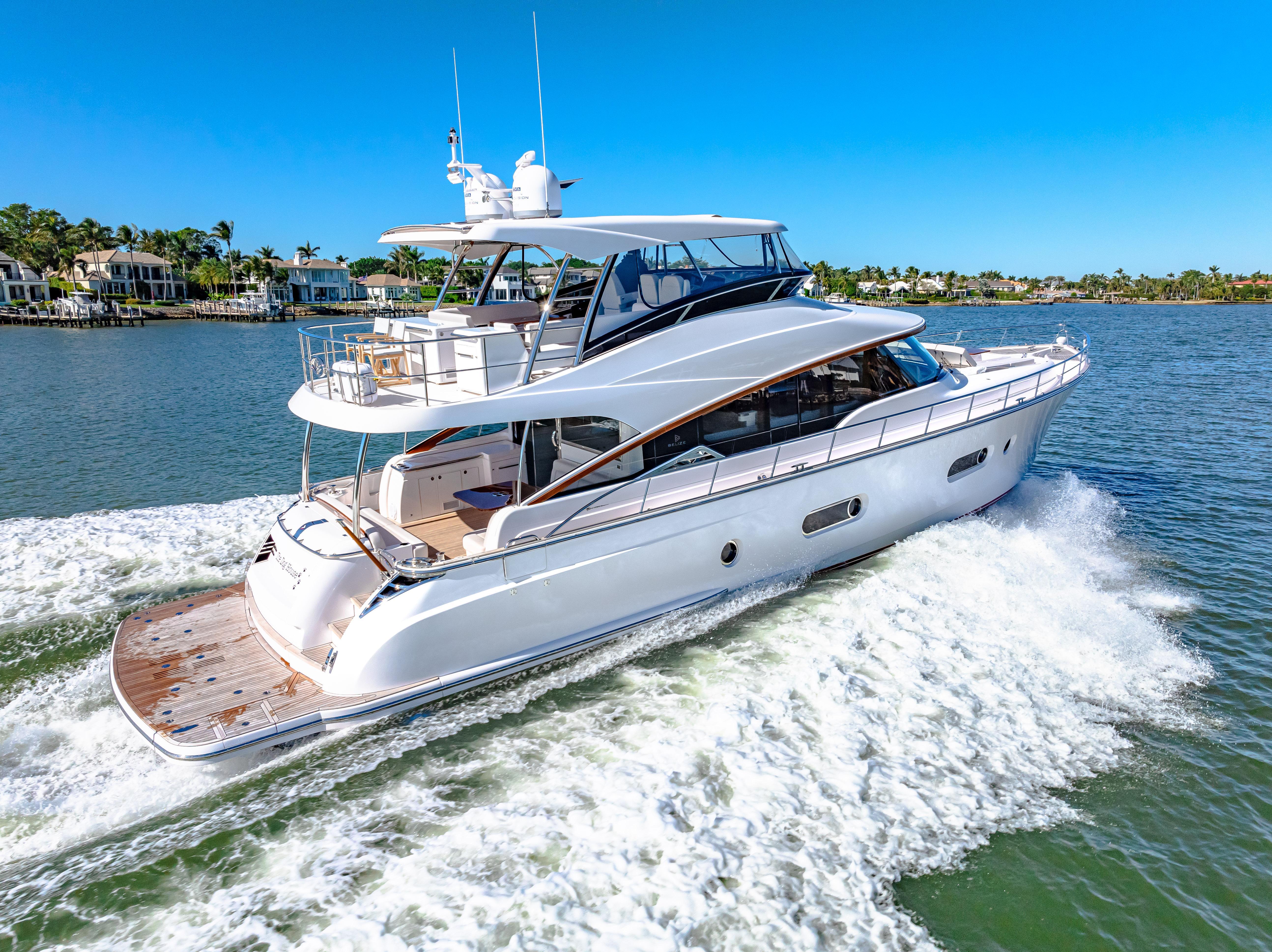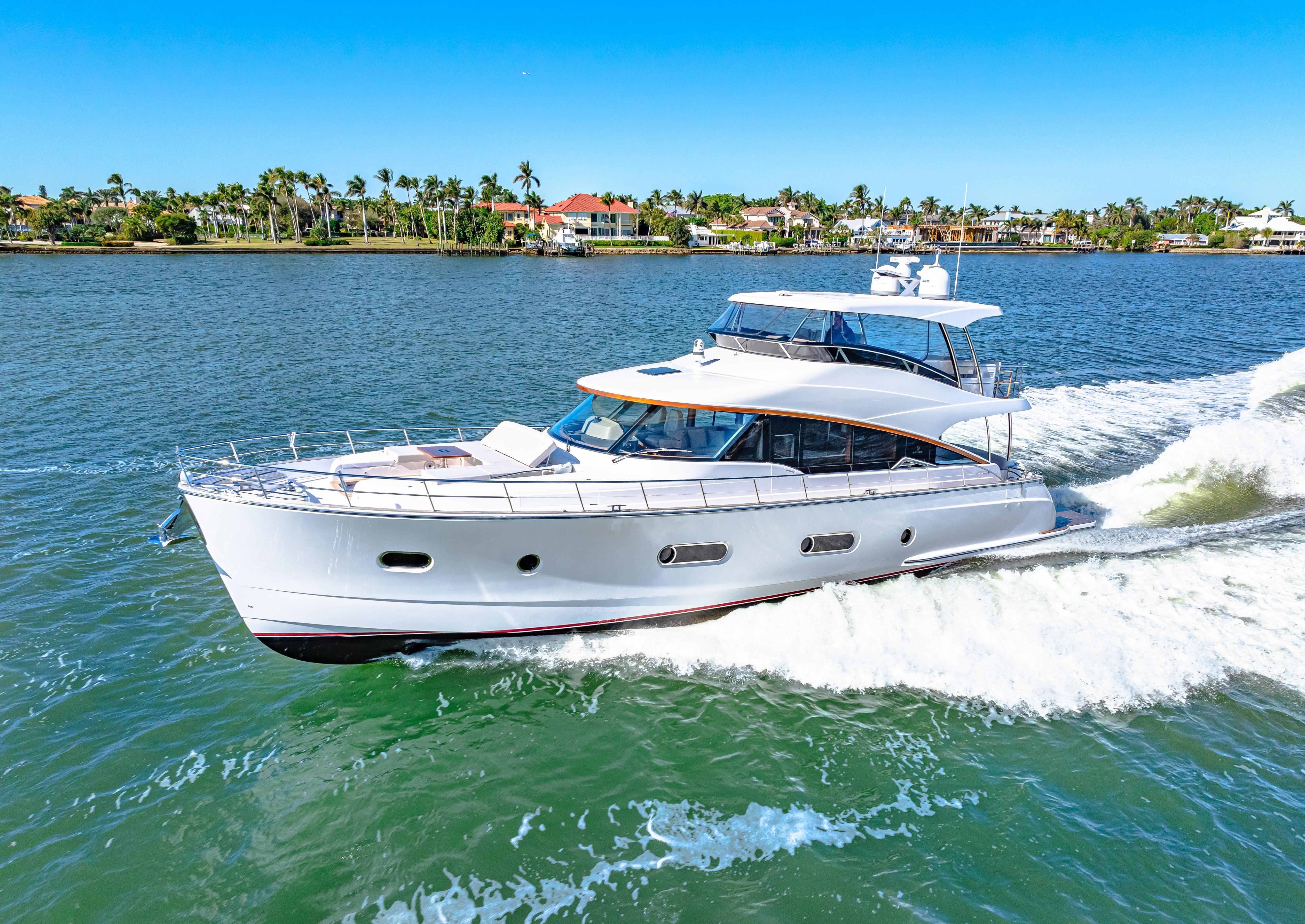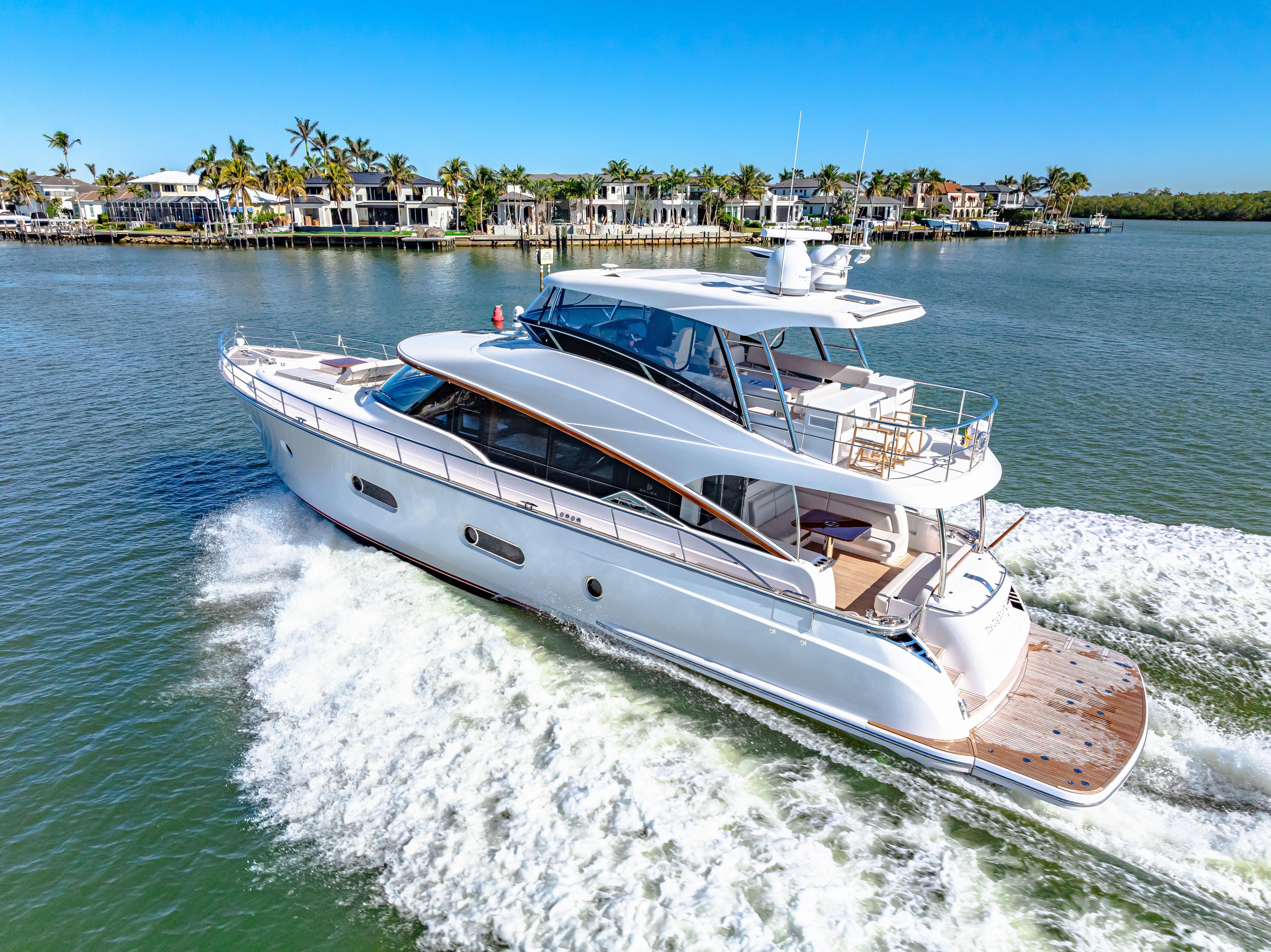 Excellent opportunity to own a barely enjoyed 2025 Belize 66 Daybridge without the wait! Highly optioned with an extensive list of equipment to make her easy to operate by one couple. She was delivered in November of 2024 and will be conveyed with the remainder of factory warranties on both engines and hull. Photos taken in Naples Bay in January of 2025. Please see descriptions for a comprehensive list of both standard and optional equipment. Keen seller is seeking offers on a premium yacht that can be owned at a significant discount over replacement cost. Rarely do opportunities arise to own a Belize 66 Daybridge in the brokerage market and this fine example is the only one available currently in North America. A select list of features includes: Seakeeper 18, Volvo Dock Assist with integrated thruster, Watermaker, Custom master layout with King Berth, FLIR HD, ElectroSea ClearLine system, DockMate Remote Control Docking, Custom Boarding Ladder and ramps (3), Satellite Weather, Starlink Internet with Network, Siren Marine Security and Vessel Management, IPad connectivity to CZone while aboard, and much more. For a full list of standard features, optional features, and custom features, please see additional descriptions below and in full specifications. The Belize 66 Daybridge Motor Yacht Flybridge for Sale brings memories of classic design from the golden age. Alive with modern technology and materials, advanced propulsion systems and contemporary luxury. Riviera proudly present the breathtaking Belize 66 Daybridge. A unique design that perfectly encompasses the ultimate motor yachting luxury and style. Designed by 4D Designs in collaboration with the Riviera and Belize design team, the Belize 66 is in a class of her own. Craftsmanship without equal. Customization with no peer.Enter via transom gates into a large, teak-laid cockpit with tender garage beneath, or through the side bulwark doors. Personalize the entire massive saloon area with select fabrics and bespoke finishes. The U-shaped galley, forward dining area and free-standing lounge will all delight. Outside, wide high side decks lead to the sun lovers’ foredeck.Discover the skipper’s helm forward. The lower helm and expansive helm in the Daybridge both feature state-of-the-art navigation aids, simple touchscreen operation and effortless joystick control. Volvo Penta Inboard Performance System (IPS) delivers exhilarating performance and impressive economy.Descend the forward staircase to the accommodation deck. Choose from three or four-stateroom designs with three luxury bathrooms. Option of additional crew quarters or utility room.A limited number of Belize Motor Yachts are built each year. This means that you will own and command something quite different and unique…