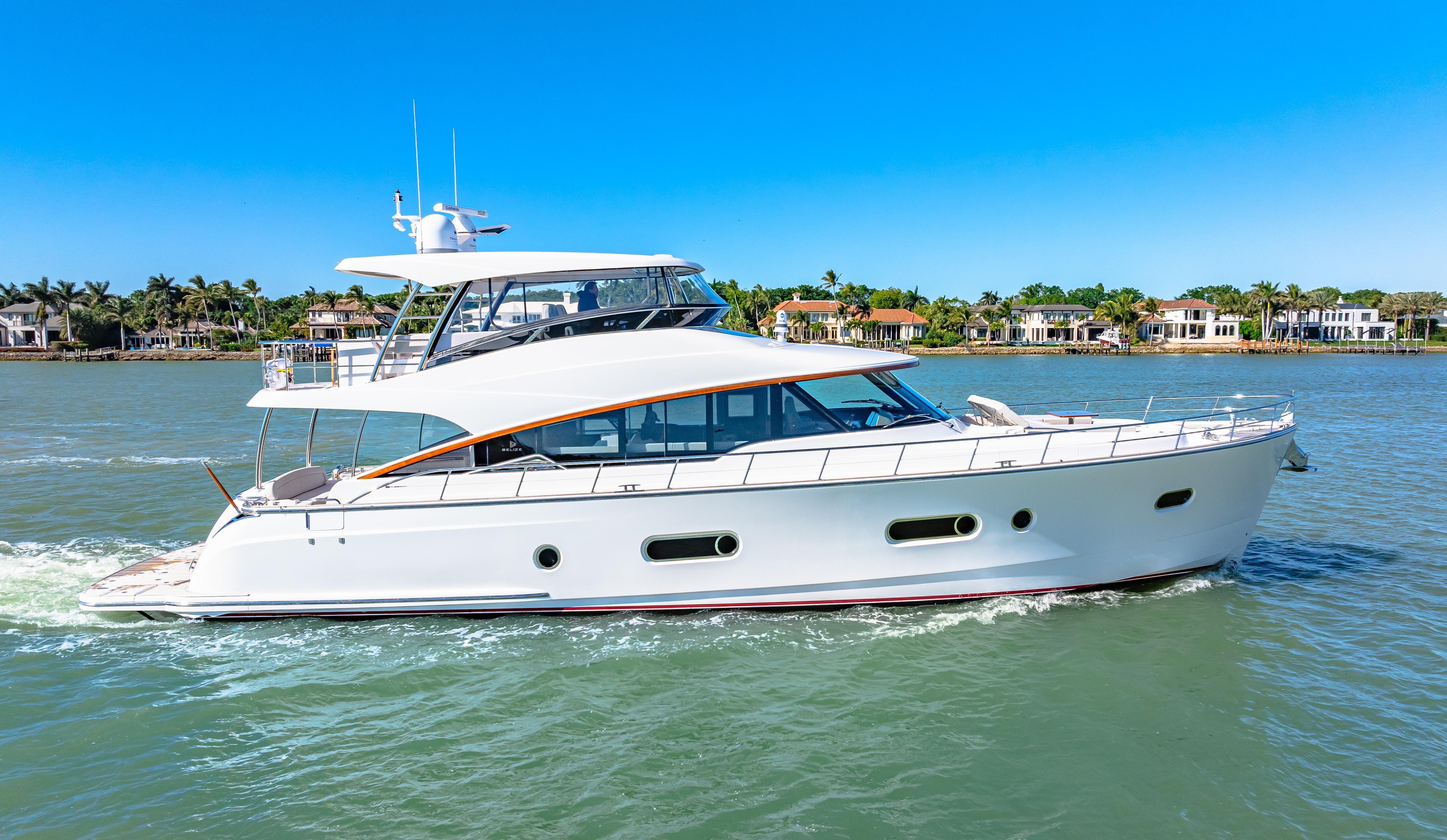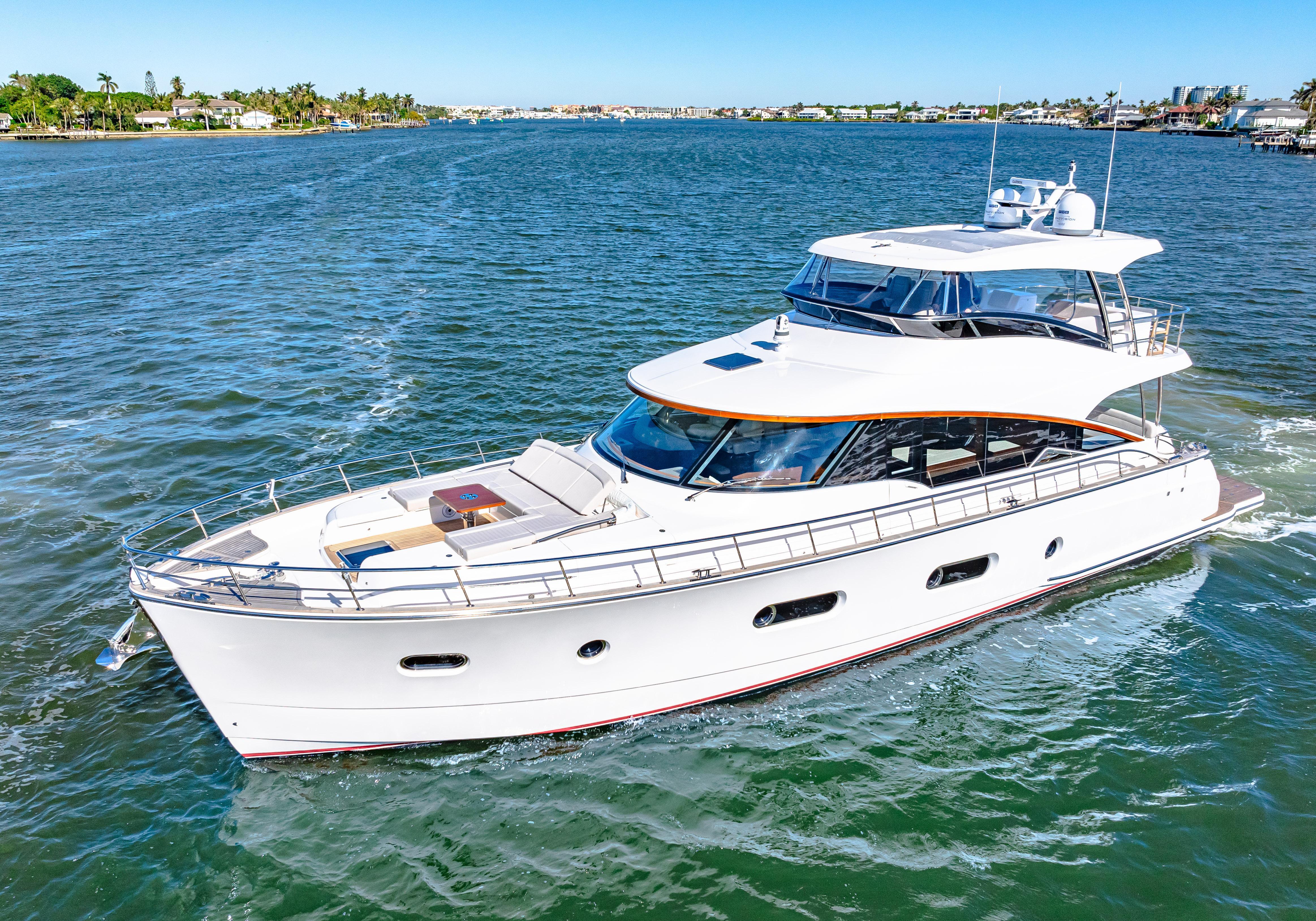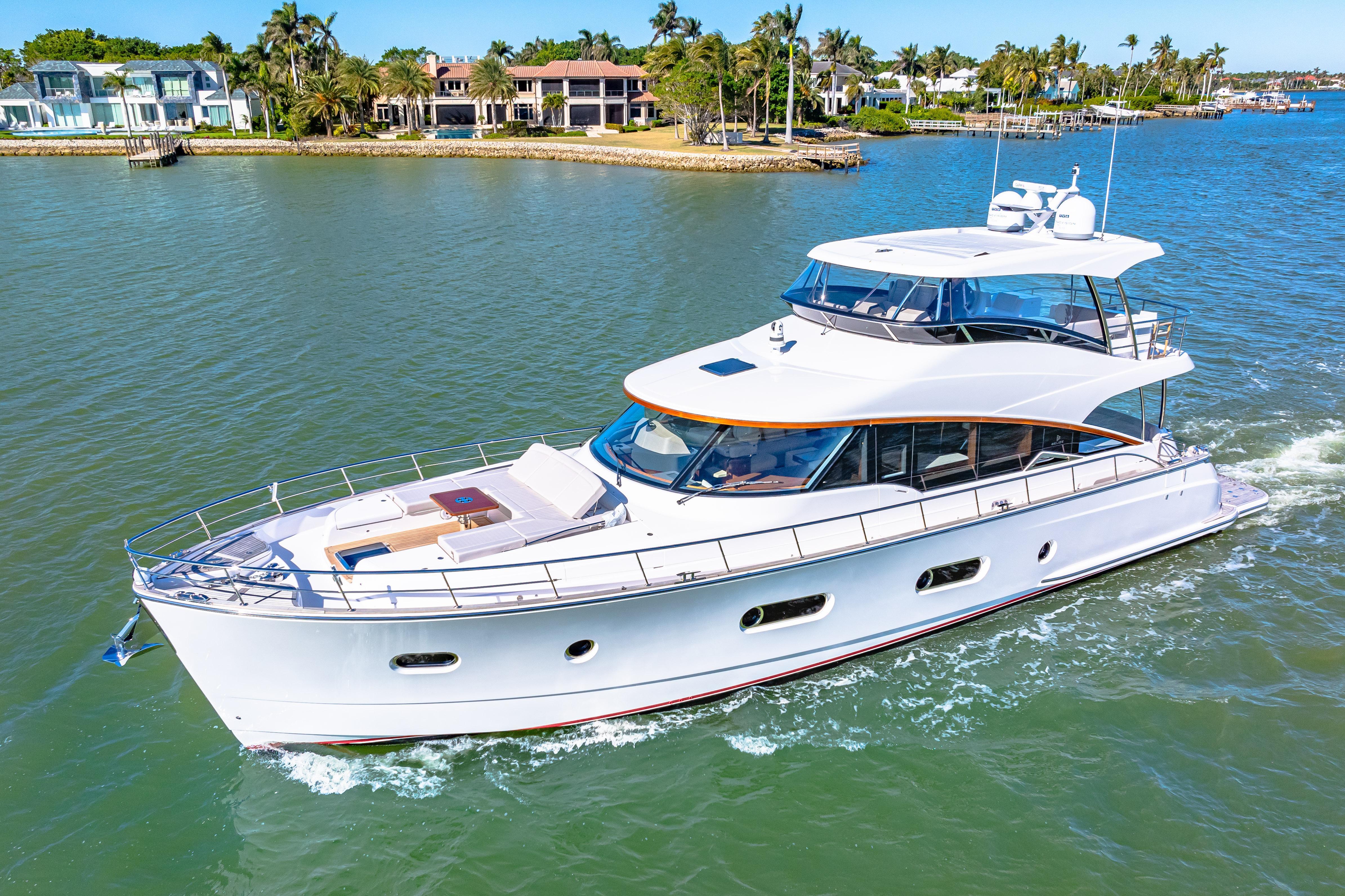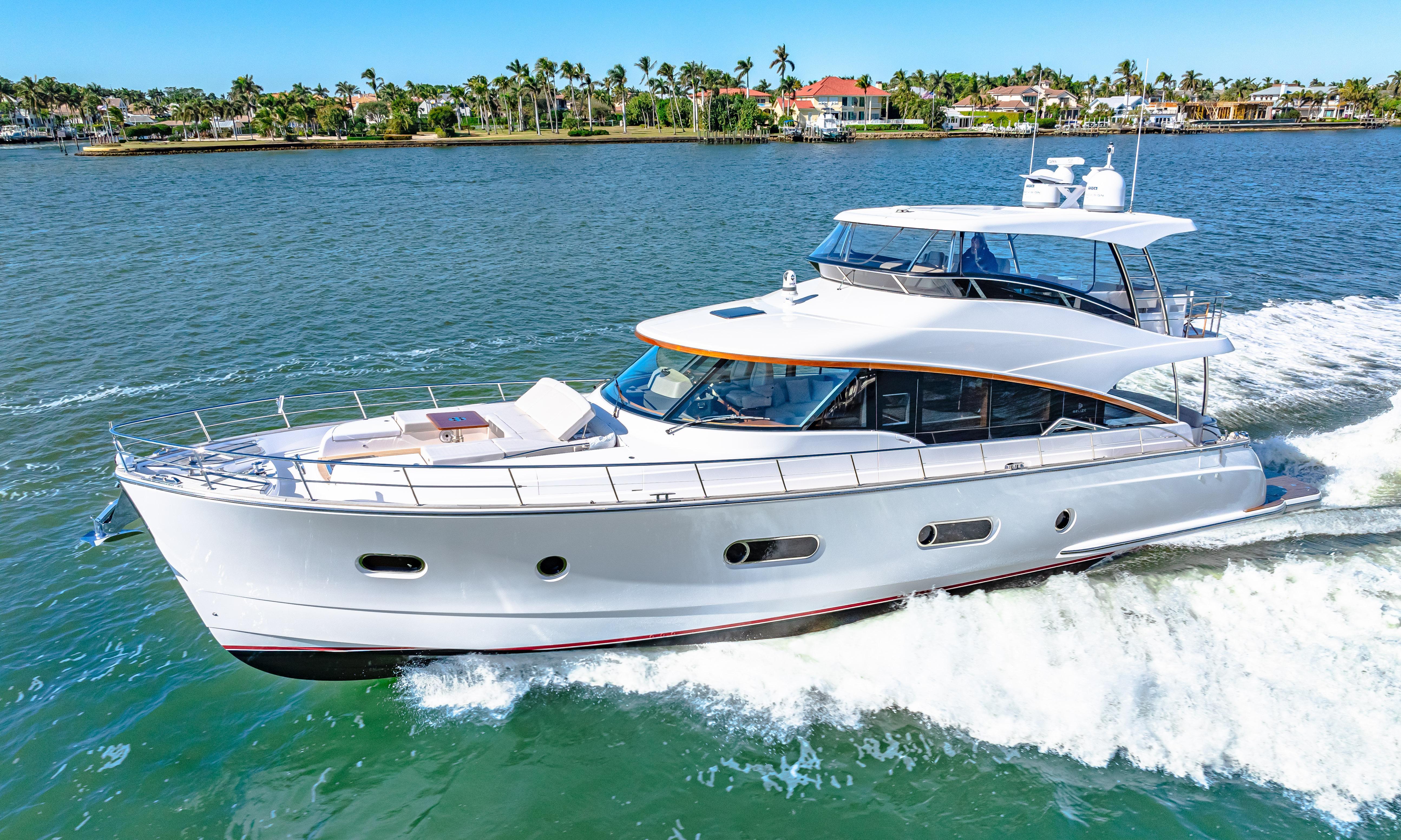 Excellent opportunity to own a barely enjoyed 2025 Belize 66 Daybridge without the wait! Highly optioned with an extensive list of equipment to make her easy to operate by one couple. She was delivered in November of 2024 and will be conveyed with the remainder of factory warranties on both engines and hull. Photos taken in Naples Bay in January of 2025. Please see descriptions for a comprehensive list of both standard and optional equipment. Keen seller is seeking offers on a premium yacht that can be owned at a significant discount over replacement cost. Rarely do opportunities arise to own a Belize 66 Daybridge in the brokerage market and this fine example is the only one available currently in North America. A select list of features includes: Seakeeper 18, Volvo Dock Assist with integrated thruster, Watermaker, Custom master layout with King Berth, FLIR HD, ElectroSea ClearLine system, DockMate Remote Control Docking, Custom Boarding Ladder and ramps (3), Satellite Weather, Starlink Internet with Network, Siren Marine Security and Vessel Management, IPad connectivity to CZone while aboard, and much more. For a full list of standard features, optional features, and custom features, please see additional descriptions below and in full specifications. The Belize 66 Daybridge Motor Yacht Flybridge for Sale brings memories of classic design from the golden age. Alive with modern technology and materials, advanced propulsion systems and contemporary luxury. Riviera proudly present the breathtaking Belize 66 Daybridge. A unique design that perfectly encompasses the ultimate motor yachting luxury and style. Designed by 4D Designs in collaboration with the Riviera and Belize design team, the Belize 66 is in a class of her own. Craftsmanship without equal. Customization with no peer.Enter via transom gates into a large, teak-laid cockpit with tender garage beneath, or through the side bulwark doors. Personalize the entire massive saloon area with select fabrics and bespoke finishes. The U-shaped galley, forward dining area and free-standing lounge will all delight. Outside, wide high side decks lead to the sun lovers’ foredeck.Discover the skipper’s helm forward. The lower helm and expansive helm in the Daybridge both feature state-of-the-art navigation aids, simple touchscreen operation and effortless joystick control. Volvo Penta Inboard Performance System (IPS) delivers exhilarating performance and impressive economy.Descend the forward staircase to the accommodation deck. Choose from three or four-stateroom designs with three luxury bathrooms. Option of additional crew quarters or utility room.A limited number of Belize Motor Yachts are built each year. This means that you will own and command something quite different and unique…