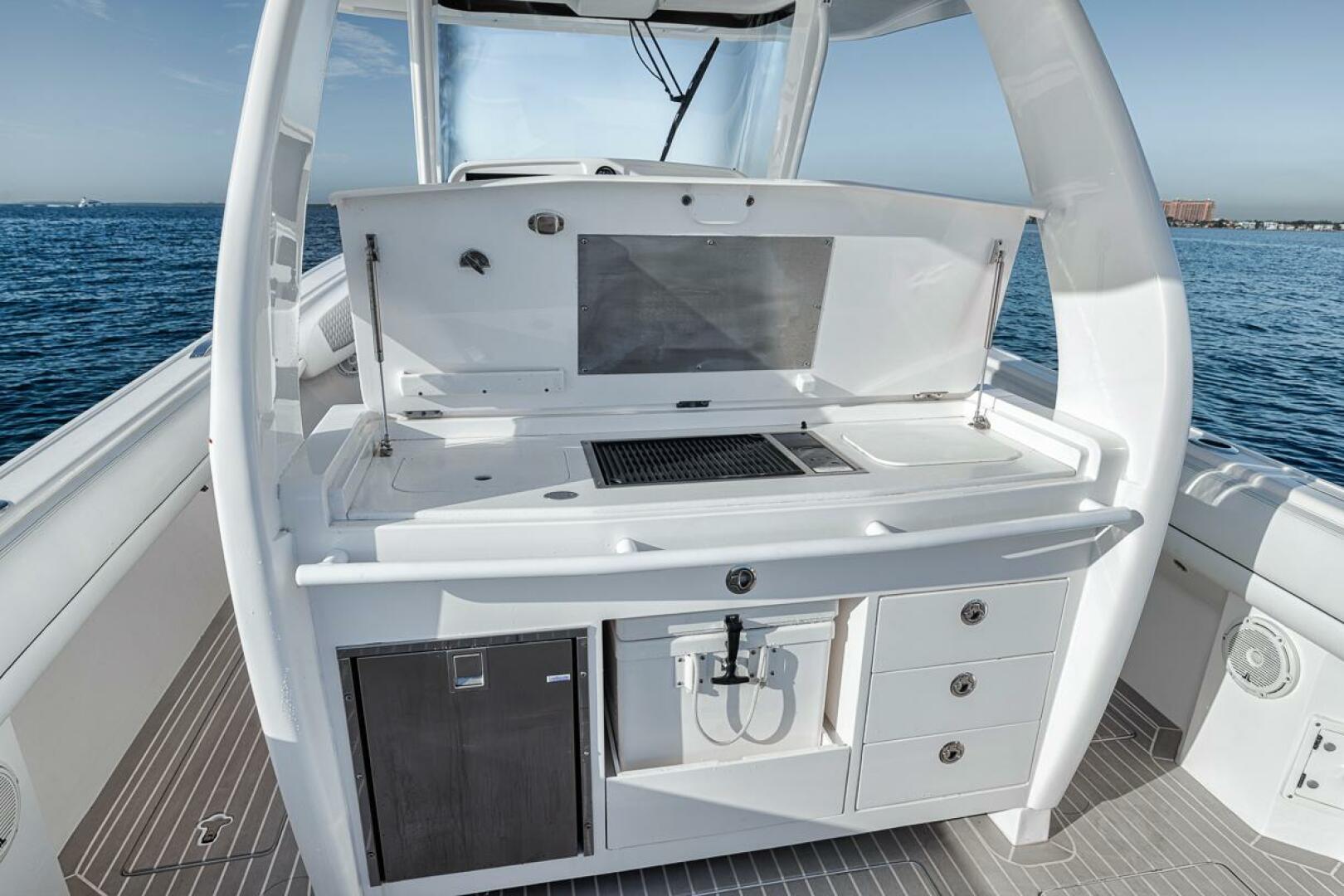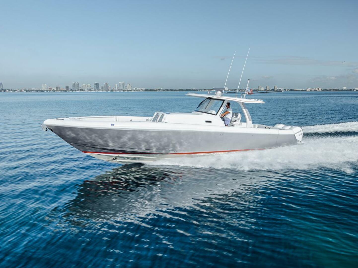 Restless is an Immaculate Intrepid 407 Panacea offered with low hours on triple 400 Mercury V6’s. This fully loaded beauty features a stunning custom metallic silver paint job with a red boot stripe, turning heads wherever it goes. Built for performance and luxury, this vessel is perfect for cruising or offshore adventures, offering unmatched comfort, cutting-edge technology, and a pristine condition that shows extremely well. Don’t miss out on this exceptional, turn-key opportunity.