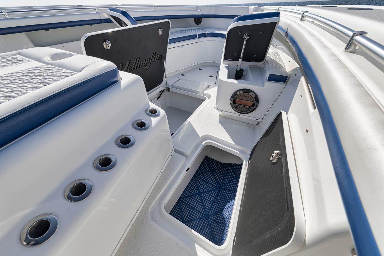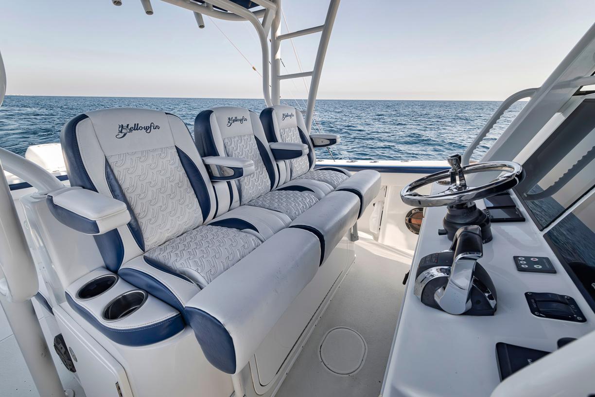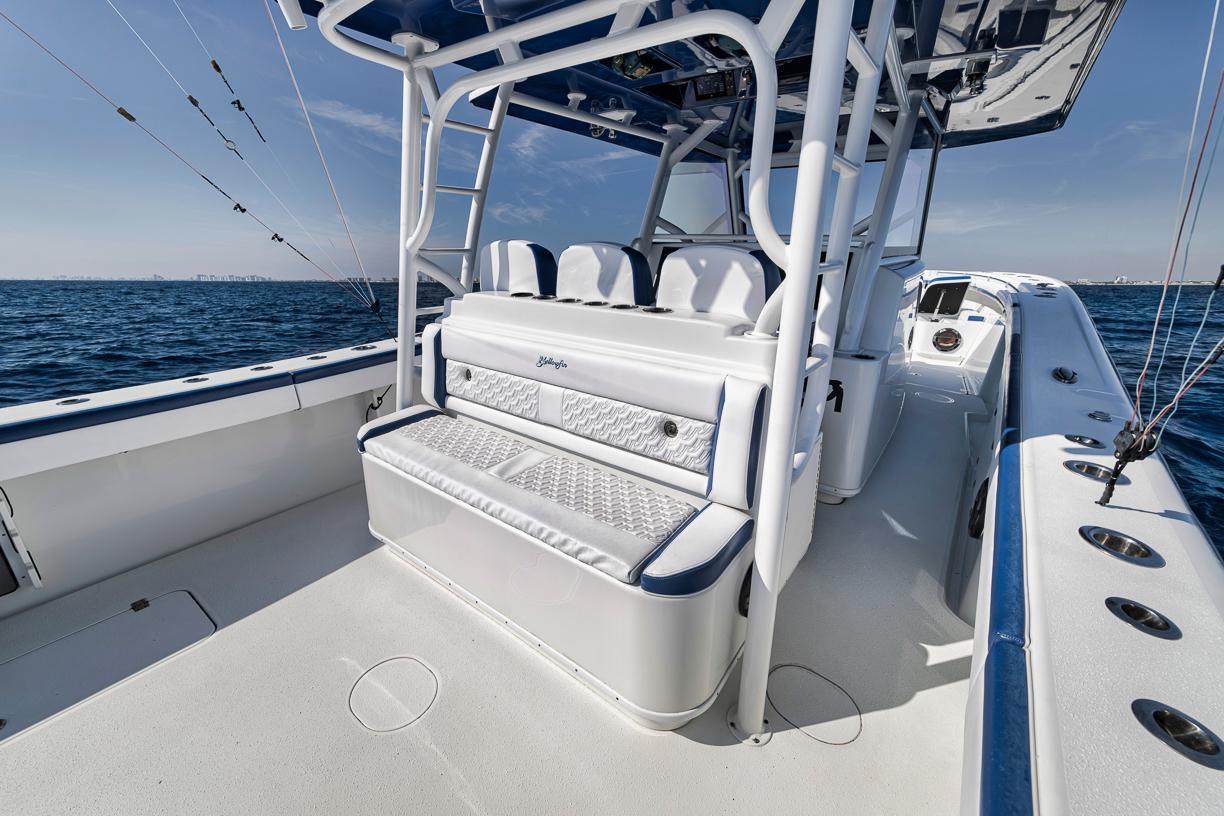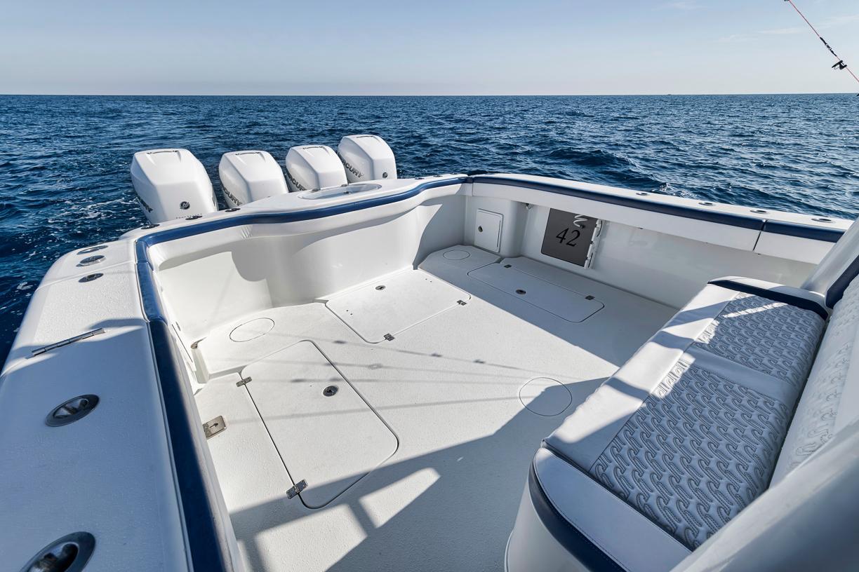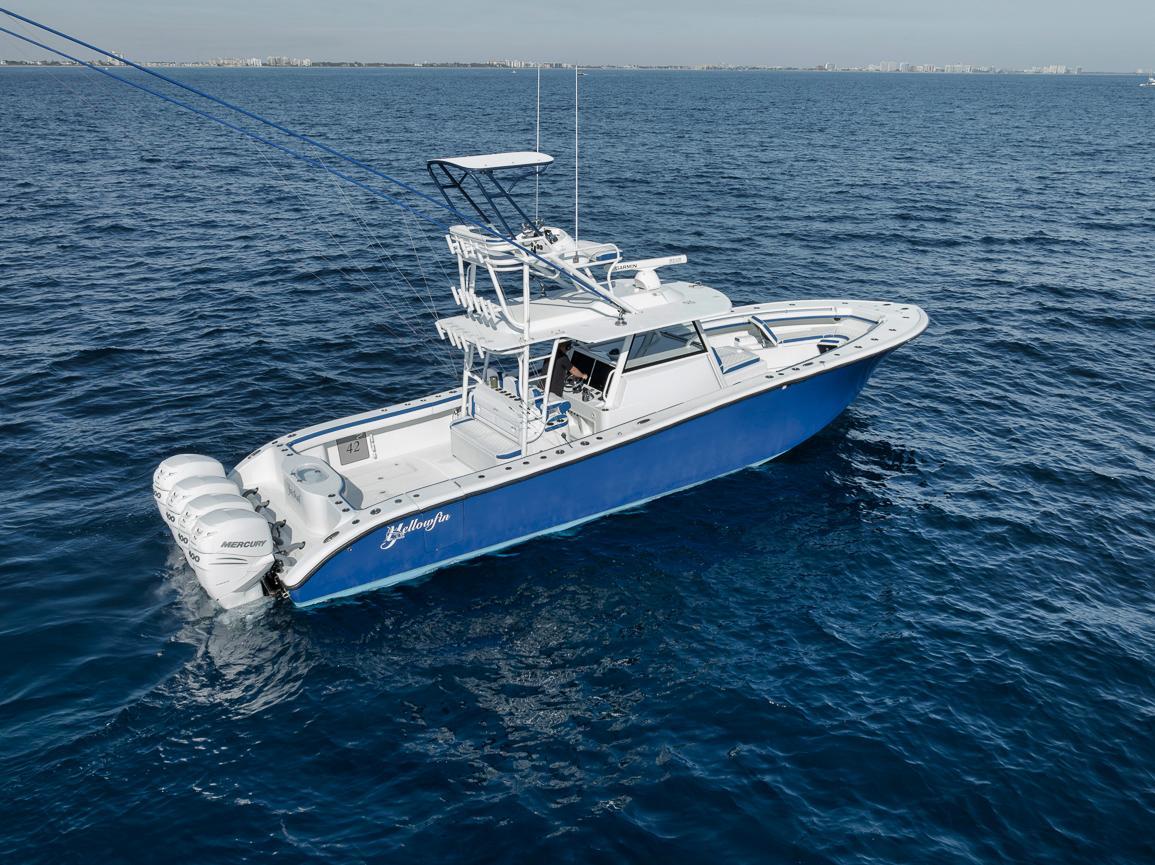 Yellowfin’s flagship sets the standard for what a big, brawny, no-holds-barred center console can be. Powered by quad 400hp Mercury Verado outboards, the 42 can run circles around big diesel inboards in a Marlin Tournament (while burning a fraction of the fuel), but is equally at home competing in a local KDW competition. Its versatility in terms of the sheer number of tasks it does well defies comparison.Whether you seek a large, family boat for weekend excursions in total safety and comfort, or a full-on tournament ready battlewagon, the 42 easily accommodates both duties. With an unmatched attention to detail in fit-and-finish, smooth dry ride, and performance, there is simply nothing else in the market to compare.Notable Upgrades Include: Seakeeper 12VCold Fusion Verados in WhiteA/C CabinTriple Helm Seating with Diamond Stitched UpholsteryDual Station TowerGemlux Outriggers w/ 22' Carbon PolesUpgraded Garmin Electronics Package