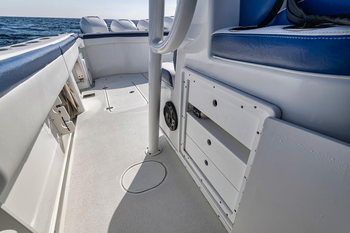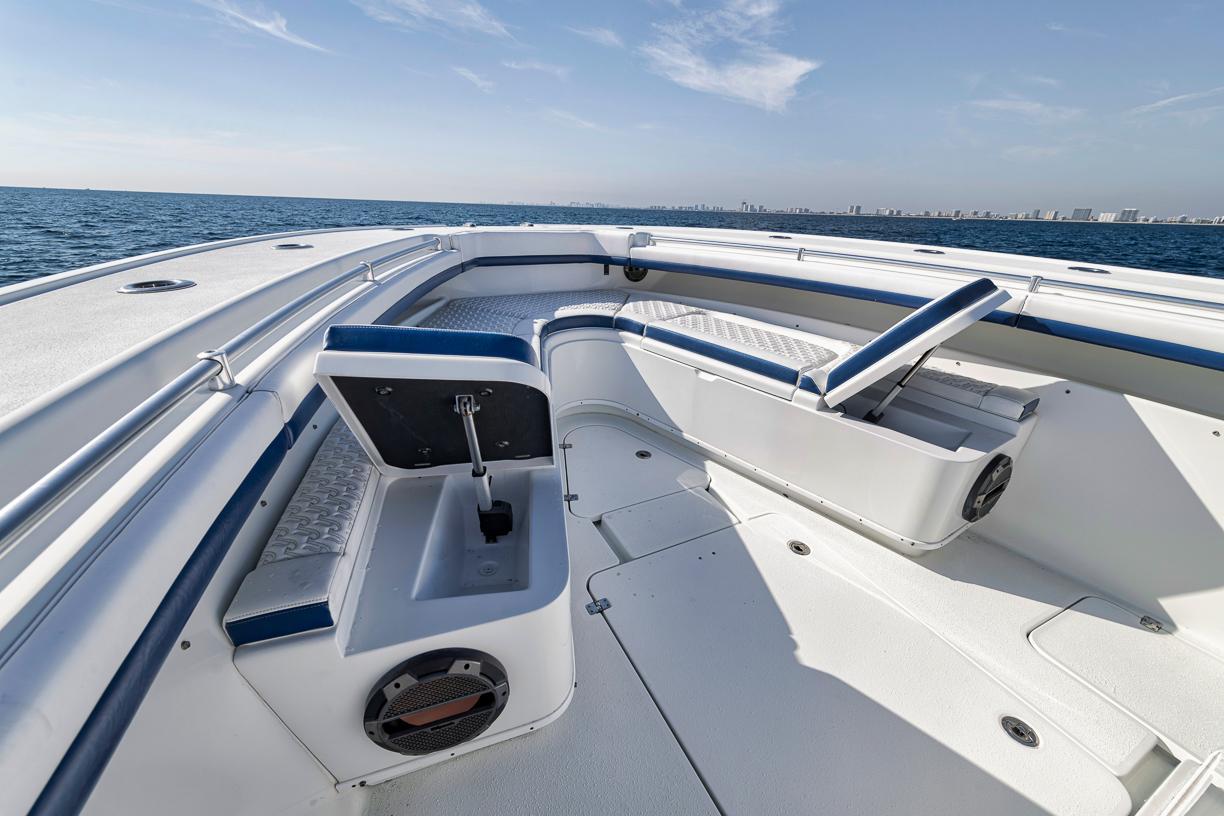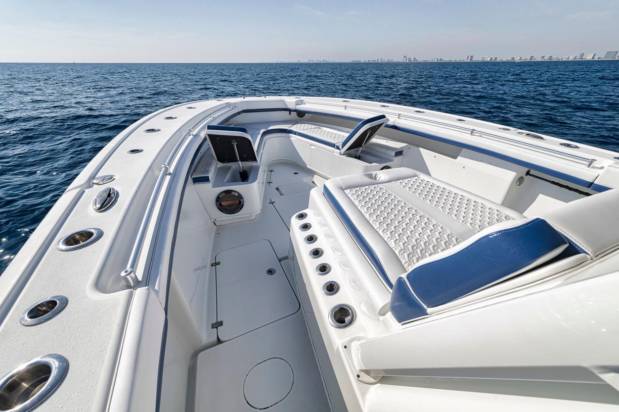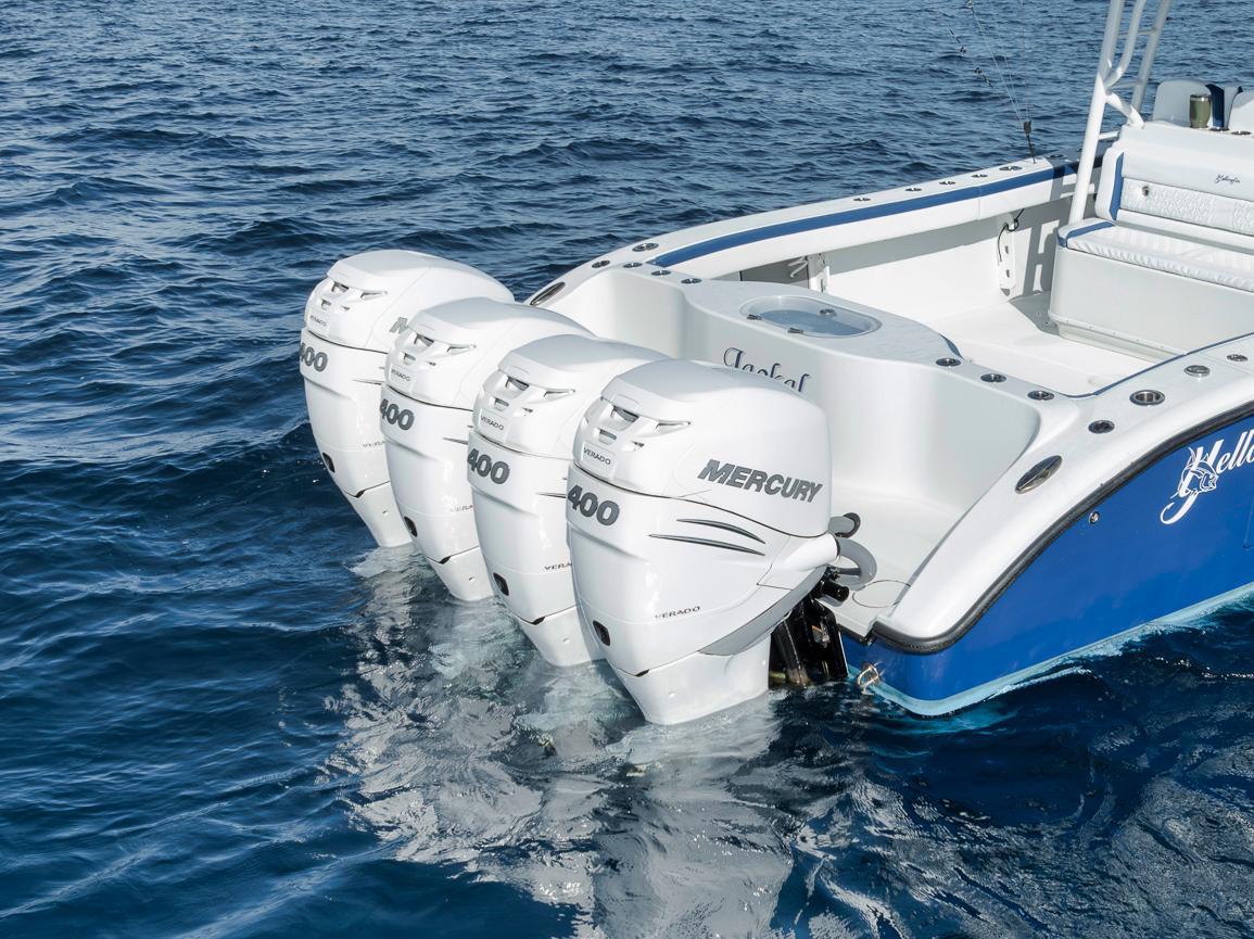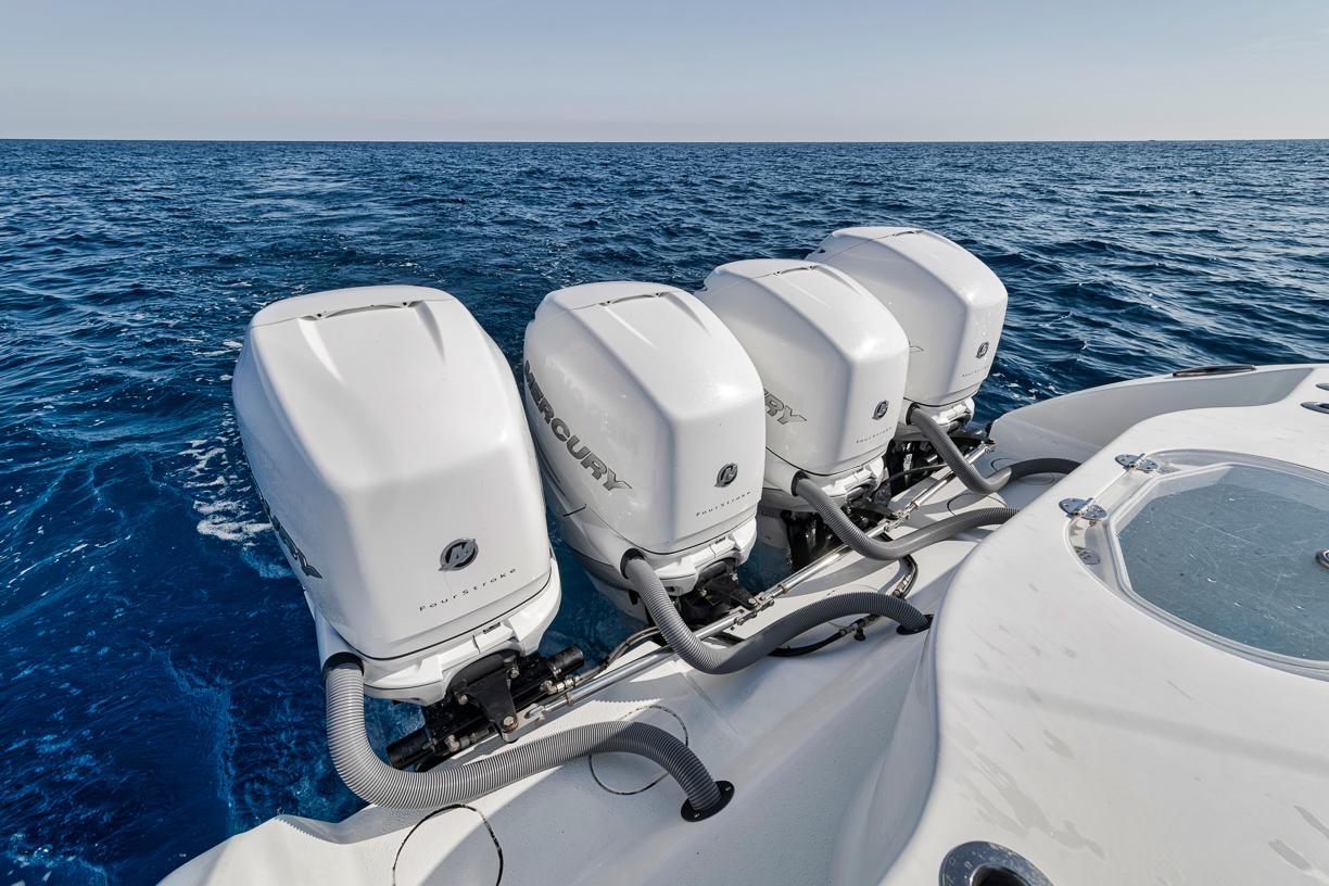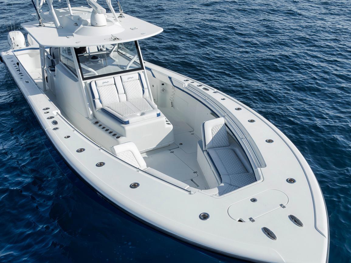 Yellowfin’s flagship sets the standard for what a big, brawny, no-holds-barred center console can be. Powered by quad 400hp Mercury Verado outboards, the 42 can run circles around big diesel inboards in a Marlin Tournament (while burning a fraction of the fuel), but is equally at home competing in a local KDW competition. Its versatility in terms of the sheer number of tasks it does well defies comparison.Whether you seek a large, family boat for weekend excursions in total safety and comfort, or a full-on tournament ready battlewagon, the 42 easily accommodates both duties. With an unmatched attention to detail in fit-and-finish, smooth dry ride, and performance, there is simply nothing else in the market to compare.Notable Upgrades Include: Seakeeper 12VCold Fusion Verados in WhiteA/C CabinTriple Helm Seating with Diamond Stitched UpholsteryDual Station TowerGemlux Outriggers w/ 22' Carbon PolesUpgraded Garmin Electronics Package