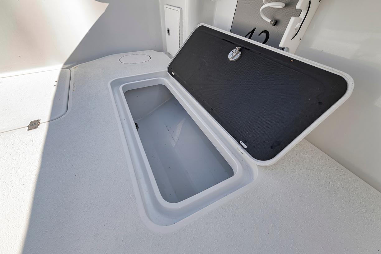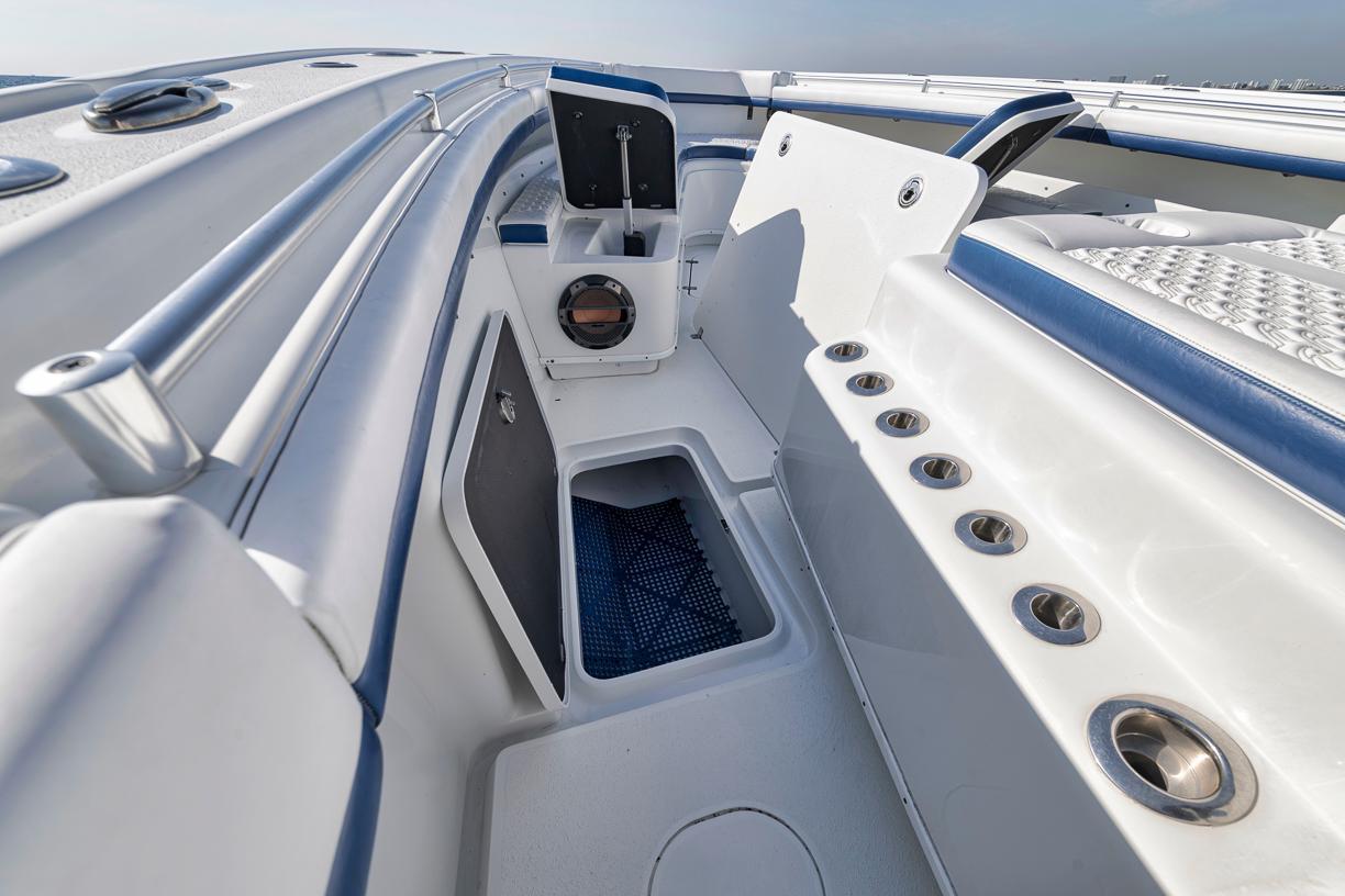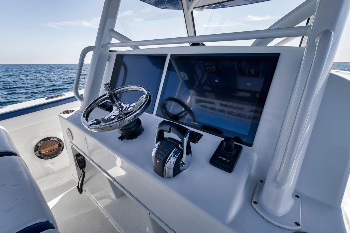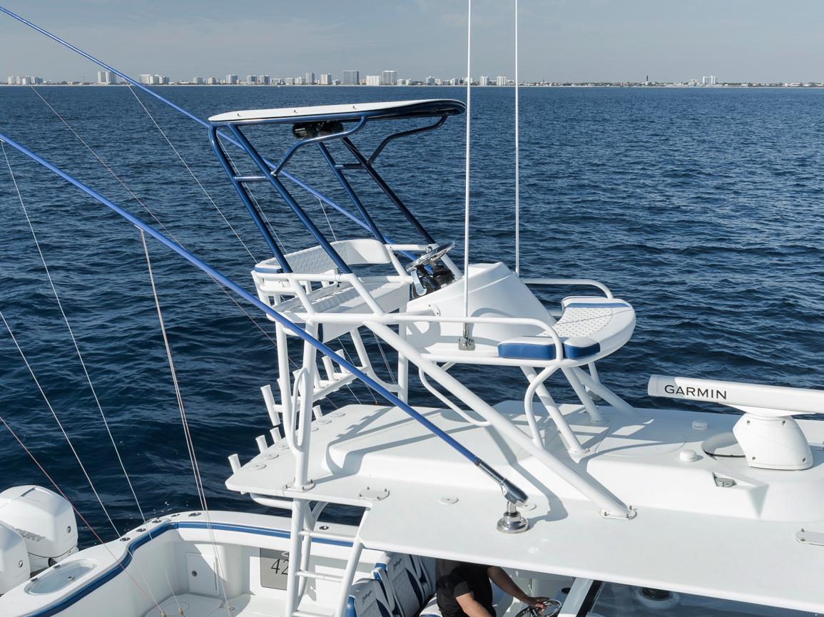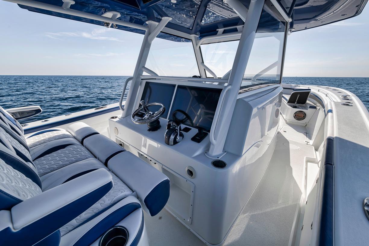 Yellowfin’s flagship sets the standard for what a big, brawny, no-holds-barred center console can be. Powered by quad 400hp Mercury Verado outboards, the 42 can run circles around big diesel inboards in a Marlin Tournament (while burning a fraction of the fuel), but is equally at home competing in a local KDW competition. Its versatility in terms of the sheer number of tasks it does well defies comparison.Whether you seek a large, family boat for weekend excursions in total safety and comfort, or a full-on tournament ready battlewagon, the 42 easily accommodates both duties. With an unmatched attention to detail in fit-and-finish, smooth dry ride, and performance, there is simply nothing else in the market to compare.Notable Upgrades Include: Seakeeper 12VCold Fusion Verados in WhiteA/C CabinTriple Helm Seating with Diamond Stitched UpholsteryDual Station TowerGemlux Outriggers w/ 22' Carbon PolesUpgraded Garmin Electronics Package