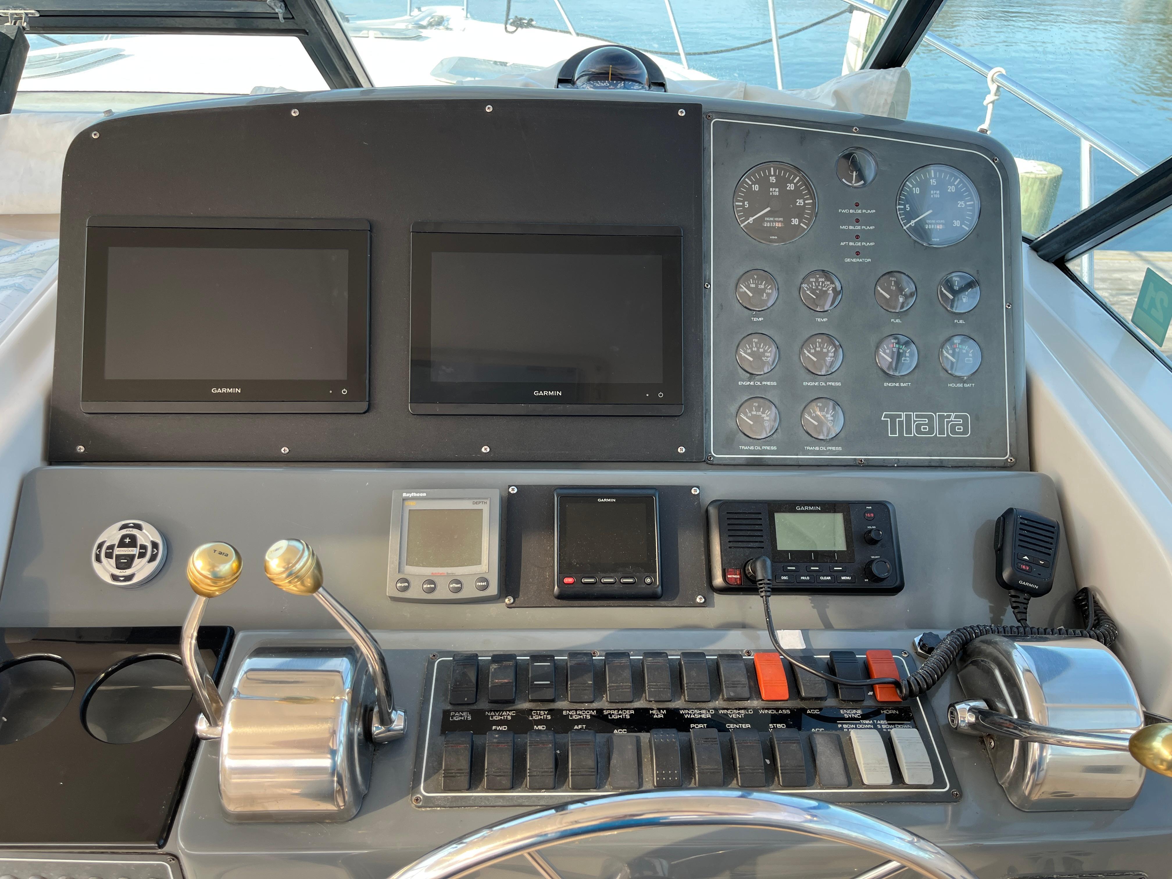 Additional DescriptionAn array of safety equipment is standard including: Cockpit lighting, automatic bilge pumps, hand-held fire extinguishers, FE-241 fire extinguisher system in the engine room, Coast Guard safety and medical kit, 6 Tiara life vests, and the certification from the NMMA, U.S.C.G., and CE (European.)