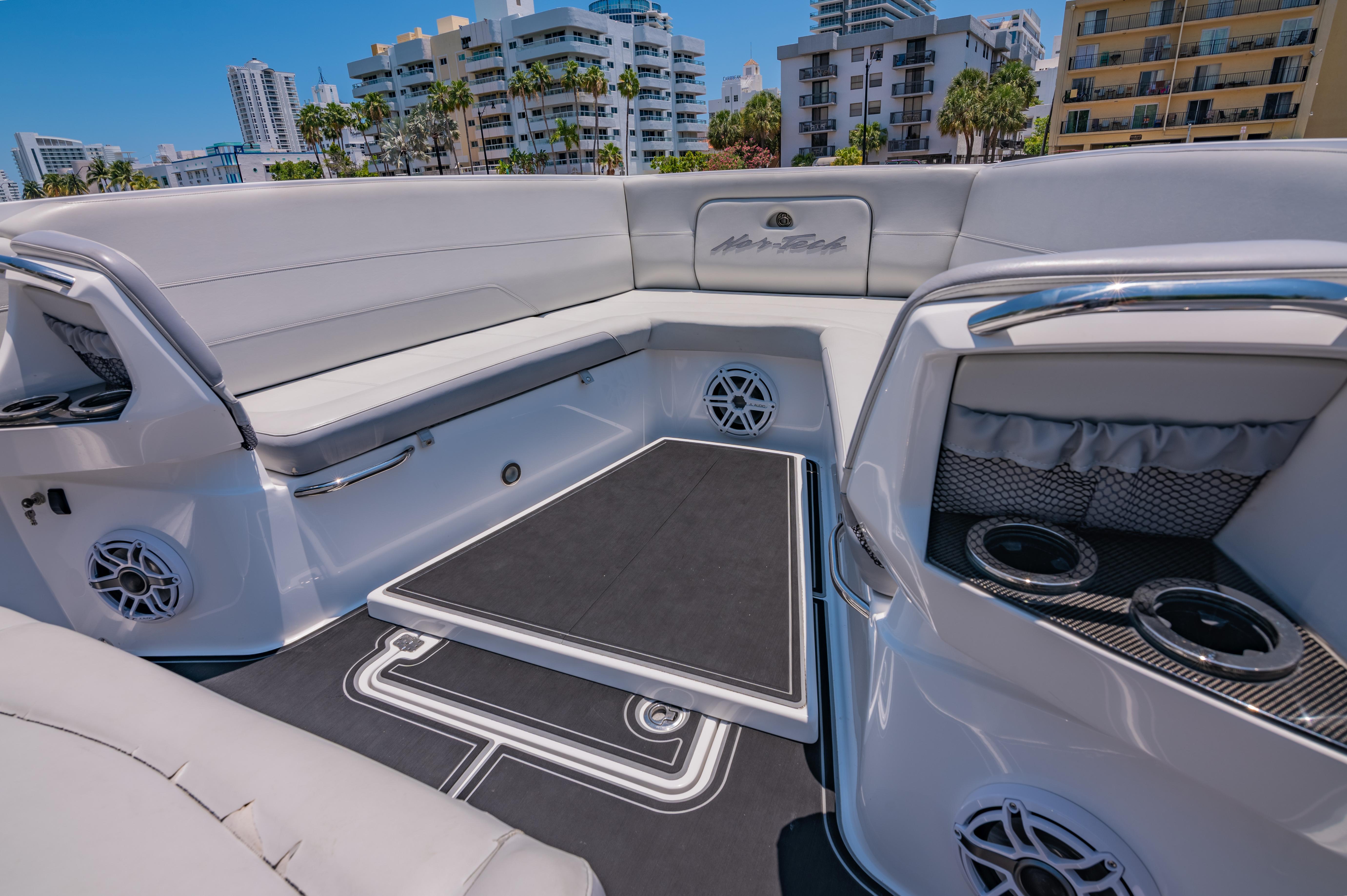 2024 - New Cushions and Upholstery, New Seadek, full annual service. NorTech Boats are all about industry leading performance, while simultaneously ensuring comfort, quality, and an abundance of features discerning enthusiasts demand. Enjoy the thrill of hitting 80 mph top speed in seconds, on this mint condition example of the 390 SuperSport. Highlights include double row bolster seating, Electric Bow Table, Duel Garmin with JL Audio, FLIR, bow thruster, underwater camera, Seadek flooring, dive door, and a comfortable cabin.
