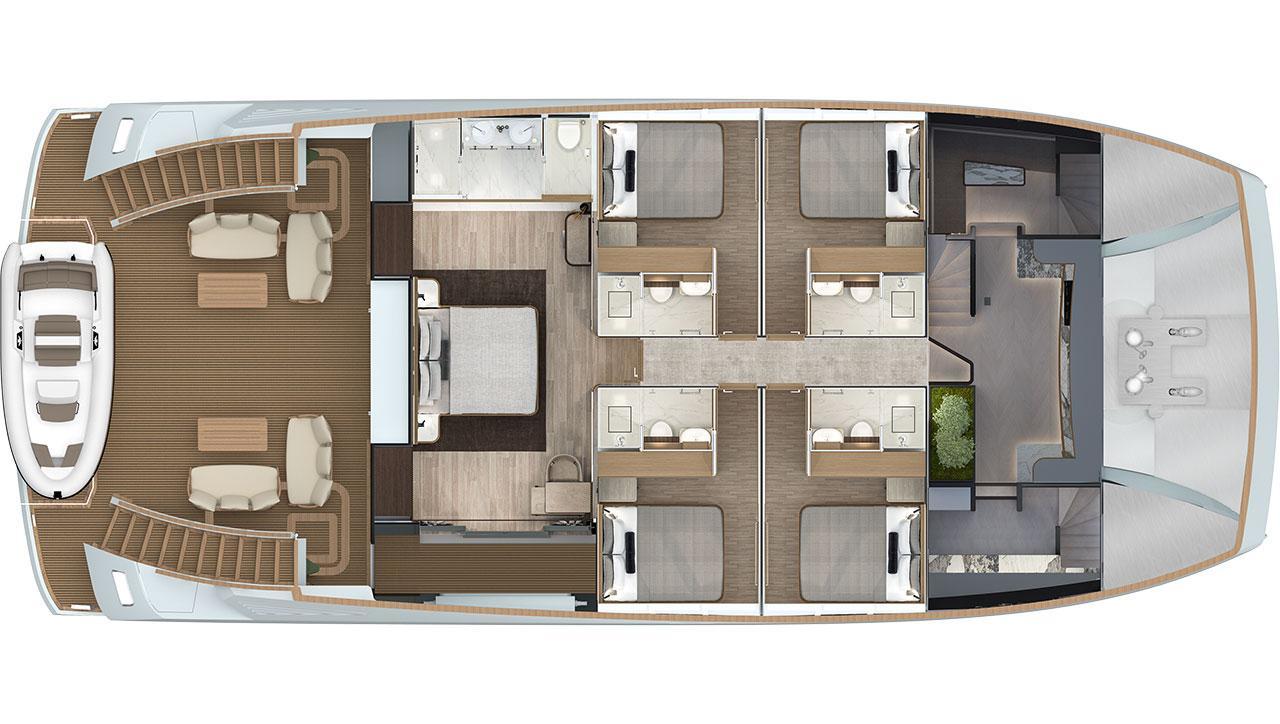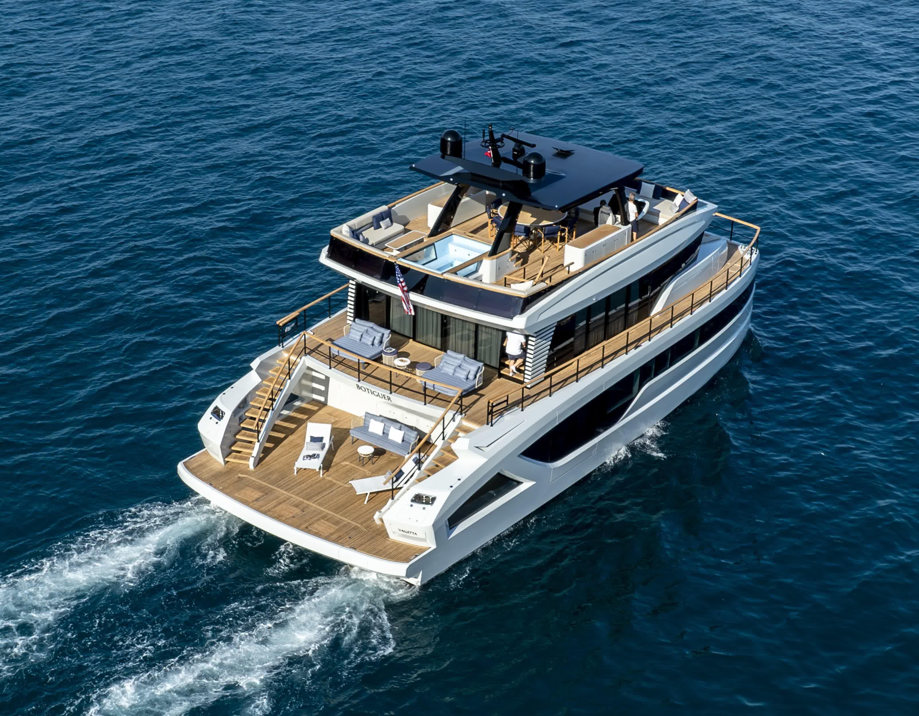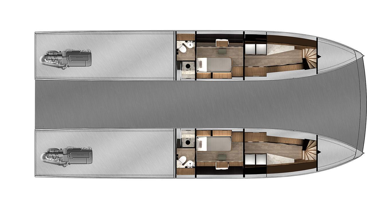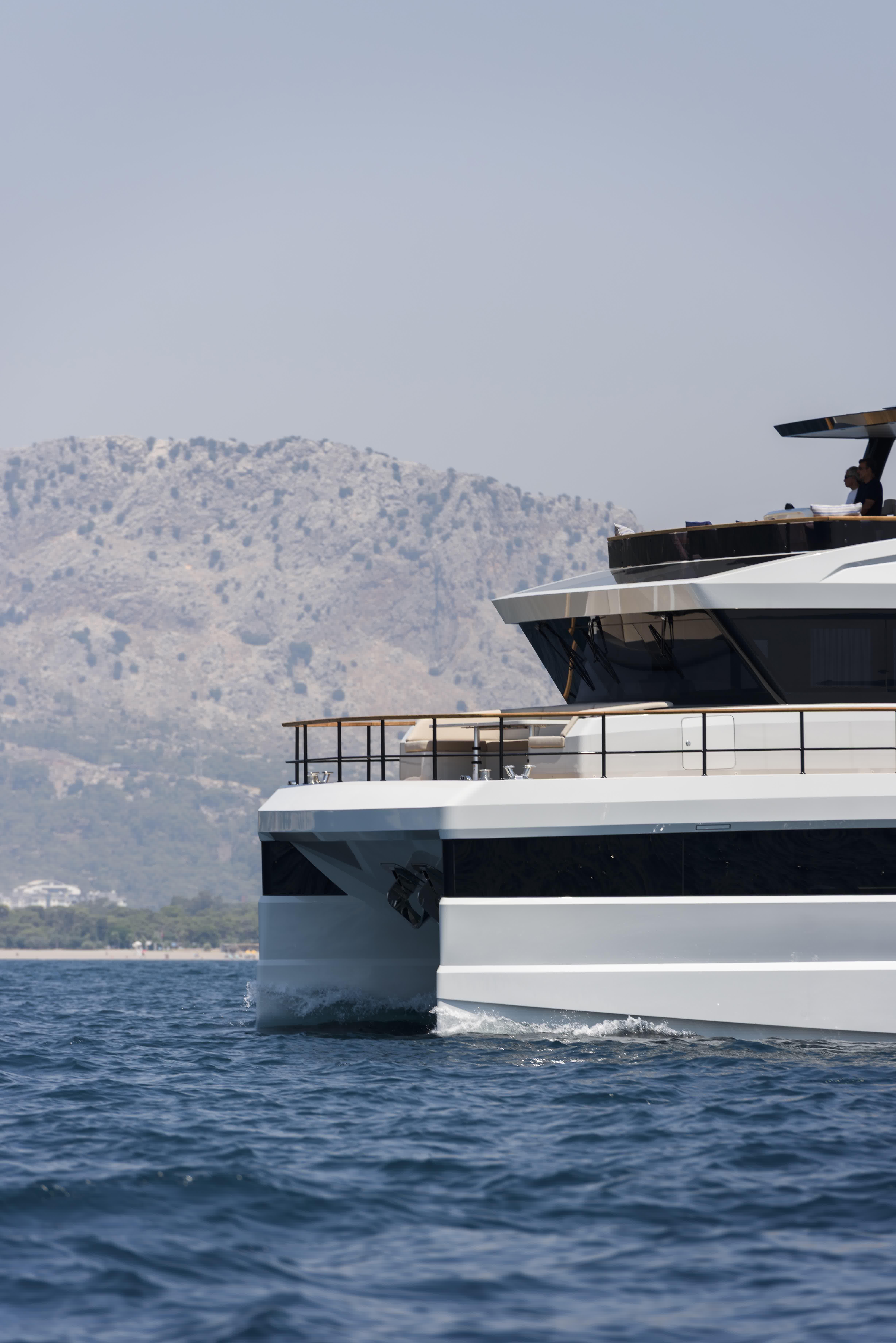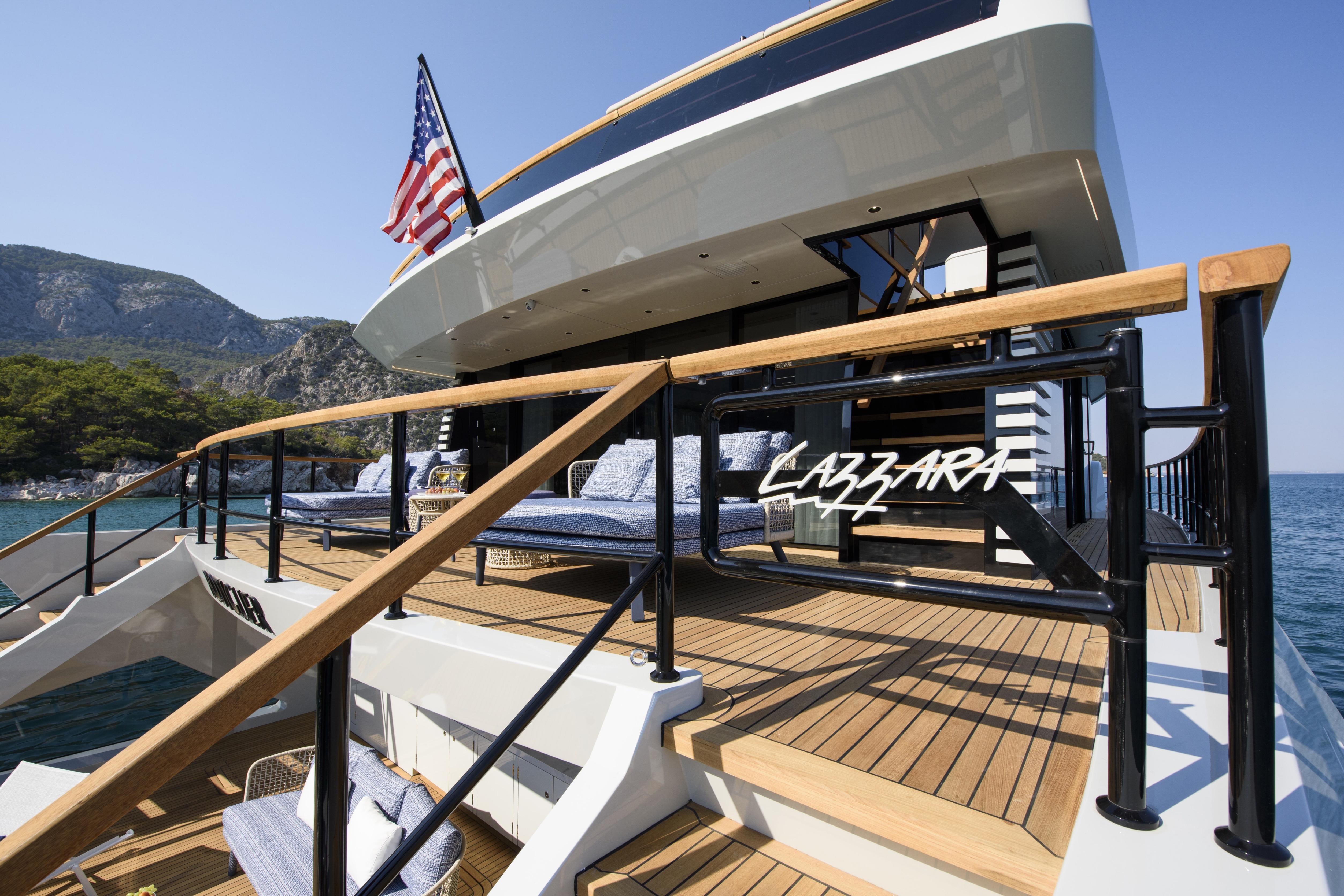 2027 Lazzara LPC 300 The Catamaran, ReimaginedThe 2027 Lazzara LPC 300 is a revolutionary 70-foot catamaran that redefines expectations for space, performance, and luxury. Built on a patented platform that introduces an entire extra deck compared to traditional catamarans, this innovative design unlocks 300 square meters (3,230 square feet) of interior and exterior living space—comparable to yachts 30 feet longer.Constructed using epoxy resin and E-glass, materials commonly used in high-performance racing yachts, the LPC 300 is engineered for long-term durability, reduced weight, and enhanced efficiency. The entire yacht is faired, sanded, and painted to achieve a perfectly smooth finish that not only reflects its superyacht pedigree but will last up to 10 times longer than traditional gelcoat—offering unmatched longevity and aesthetics.Its solid-pipe plumbing system ensures robust, reliable systems, while Lazzara’s patented “No Thru-Hull” technology uses dual integrated sea chests to eliminate underwater fittings—making routine maintenance simpler, safer, and drier.At the heart of this groundbreaking layout is a full-beam master stateroom with a private fold-out balcony—a feature usually reserved for superyachts. Complementing this is a full-beam galley with a butler’s pantry and dinette, offering residential-scale functionality in a sleek, ocean-ready format.Accommodations Include:Four additional guest cabins, each with queen berths and en suite headsTwo crew cabins, each with private heads, sleeping up to four crewTwo dedicated laundry centers, each with washer and dryer for true long-range independenceOutdoor Living Features:Expansive beach club with water-level lounging and storage for a 15-foot tender and water toysGenerous flybridge with hardtop, retractable canopy, round dining table for 10, hot tub, and large sunpad zoneForward lounge on the bow with integrated seating and table—perfect for sunset dining or relaxed cruisingThe LPC 300 isn’t just a catamaran—it’s a luxury villa at sea. With innovative construction, an unmatched layout, and signature Lazzara engineering, the 2027 LPC 300 is the catamaran that rewrites the rules.