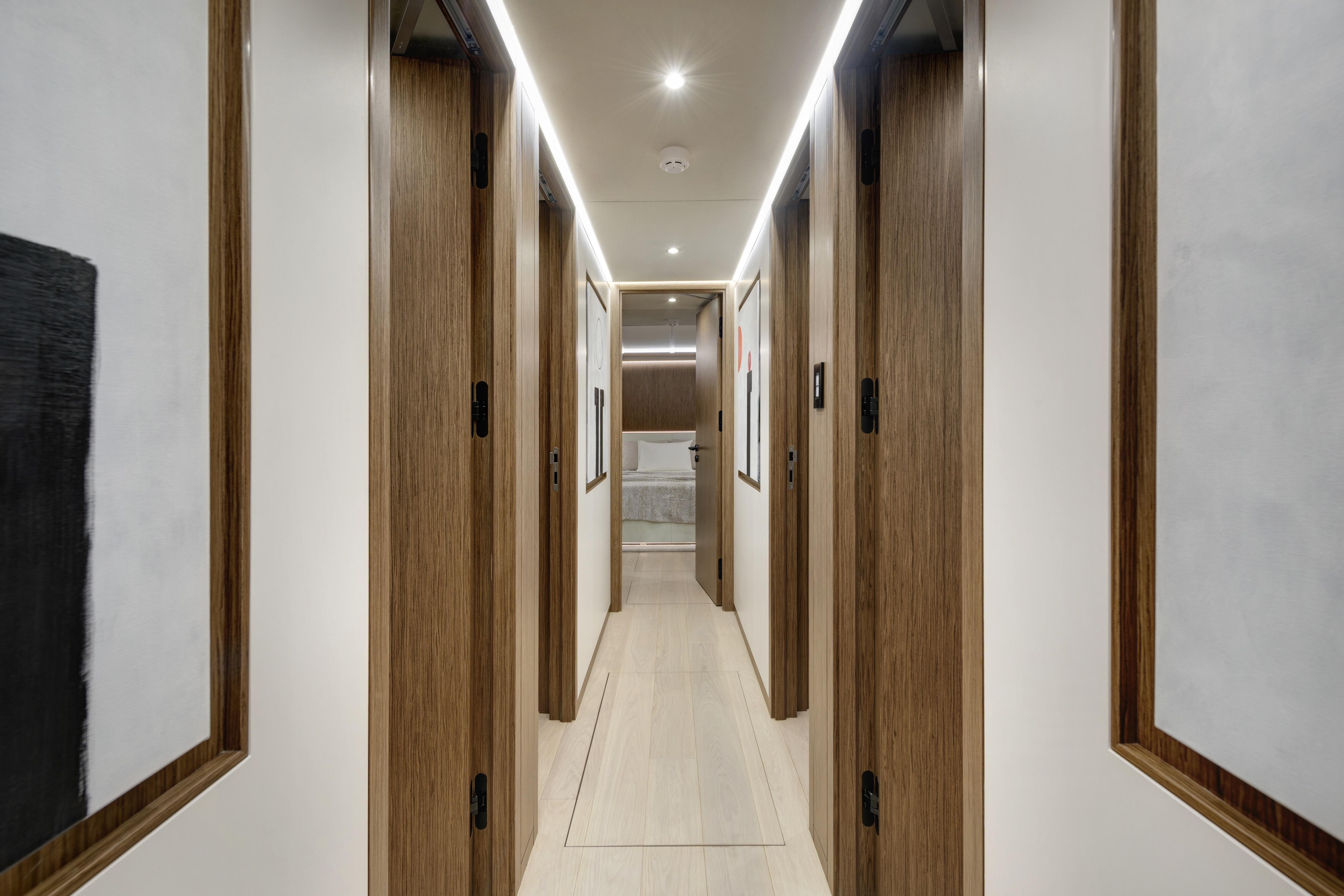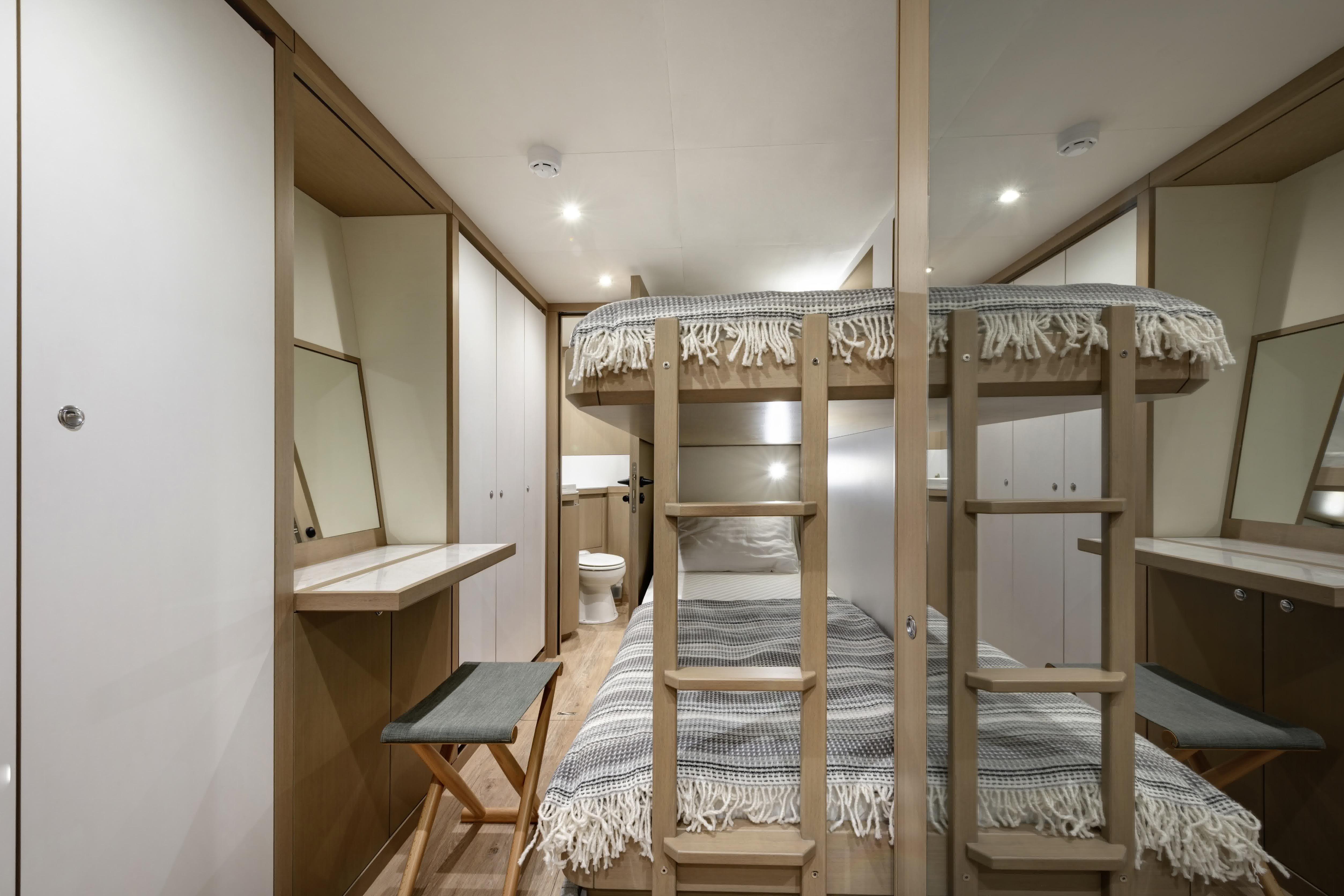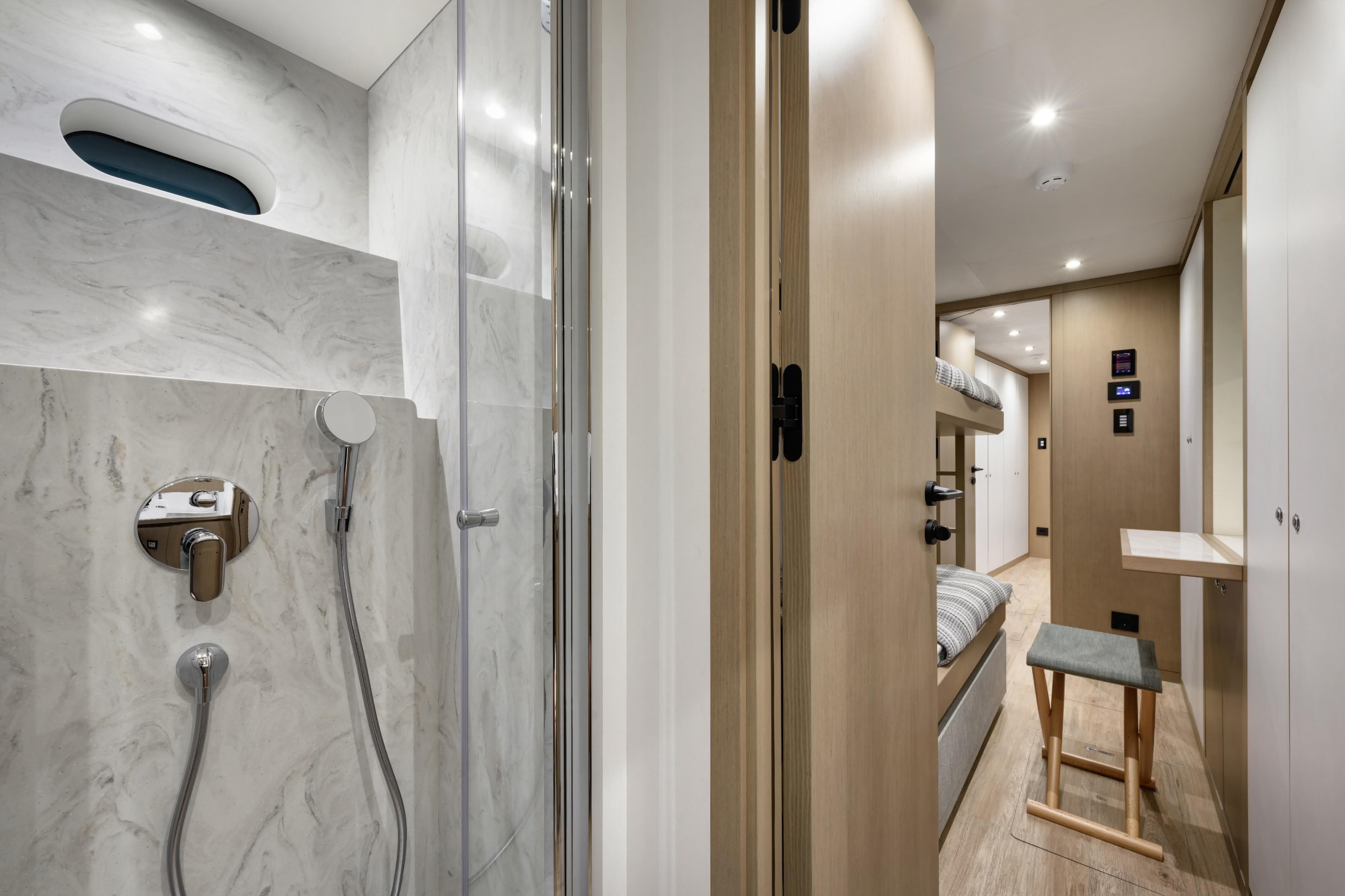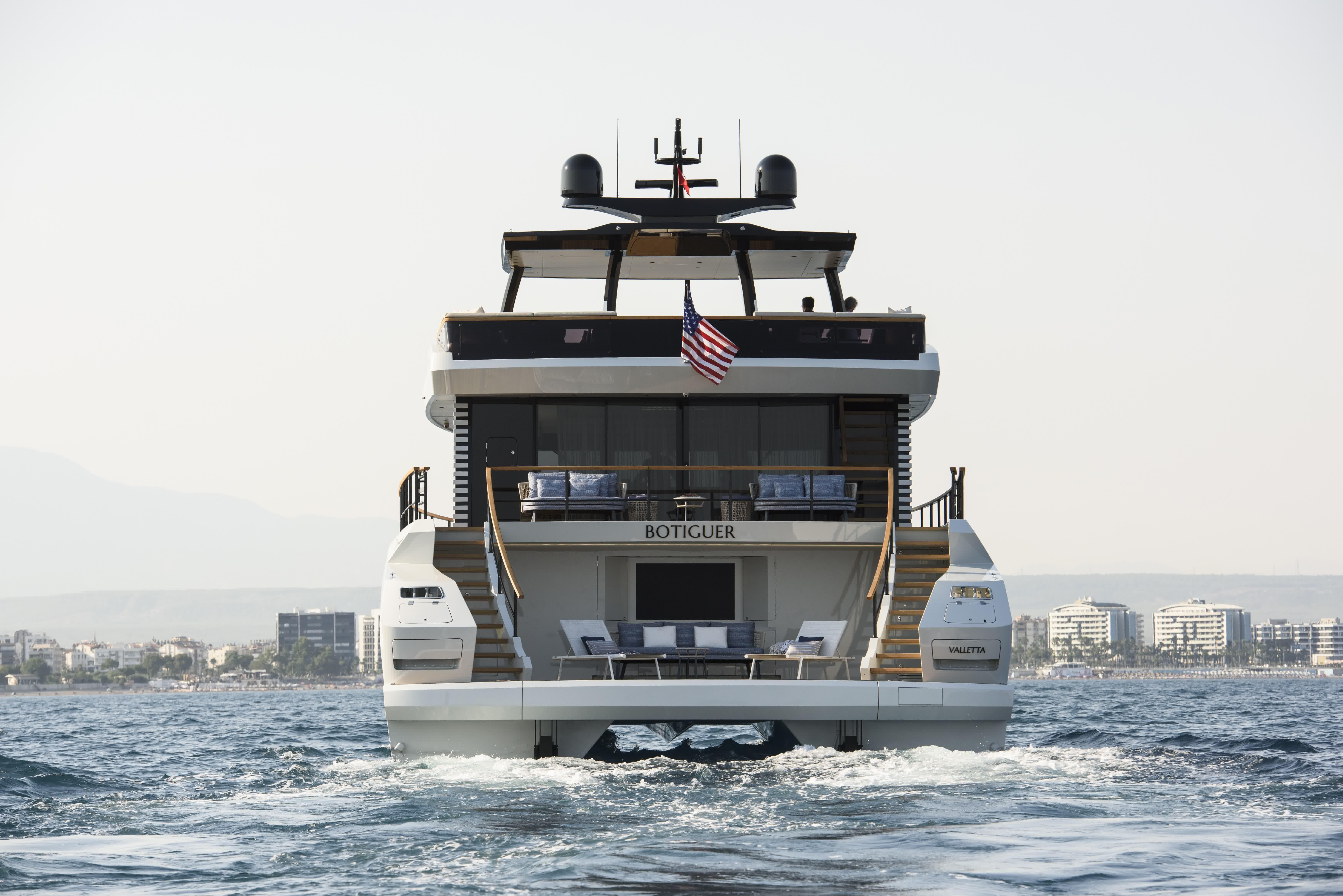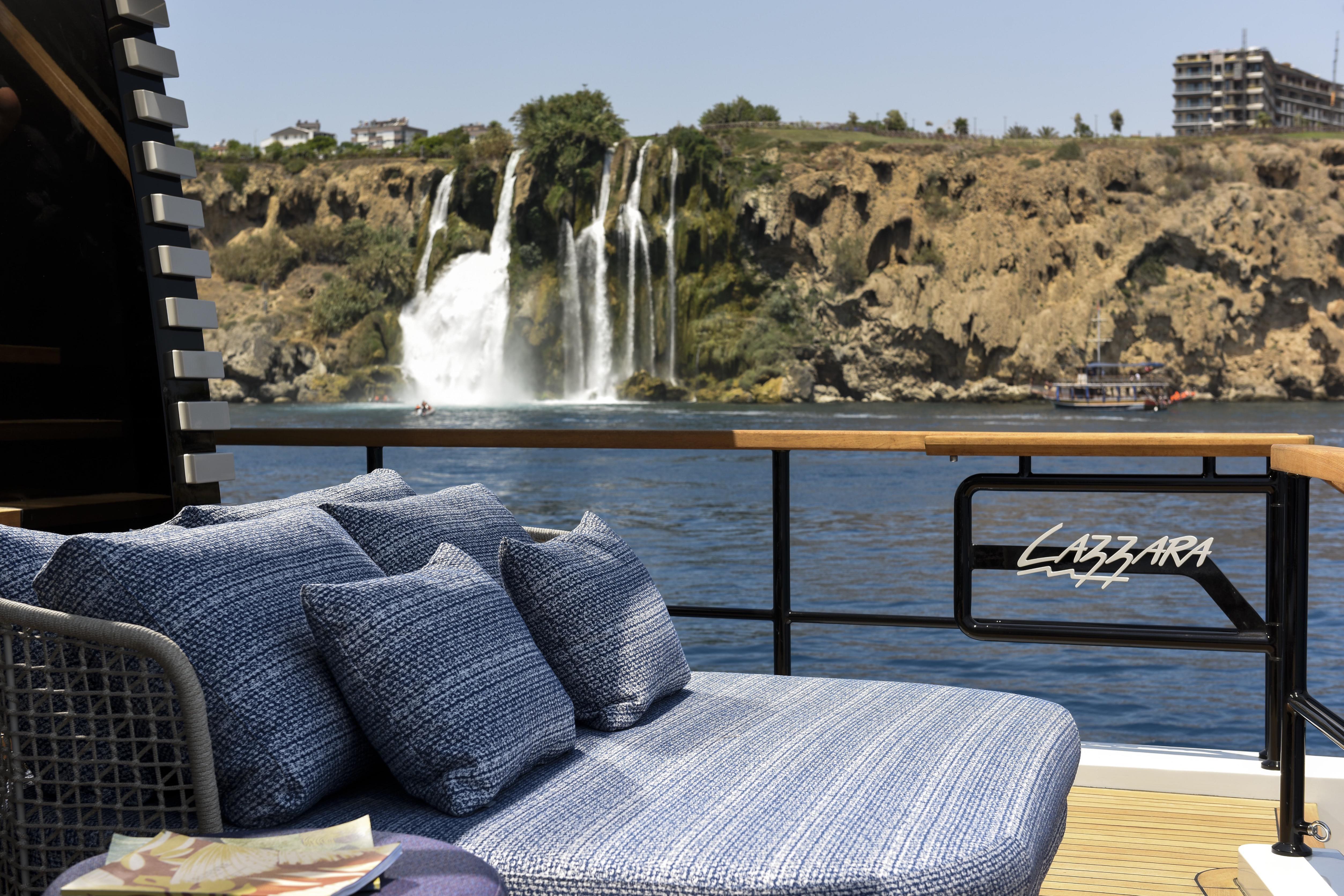 2027 Lazzara LPC 300 The Catamaran, ReimaginedThe 2027 Lazzara LPC 300 is a revolutionary 70-foot catamaran that redefines expectations for space, performance, and luxury. Built on a patented platform that introduces an entire extra deck compared to traditional catamarans, this innovative design unlocks 300 square meters (3,230 square feet) of interior and exterior living space—comparable to yachts 30 feet longer.Constructed using epoxy resin and E-glass, materials commonly used in high-performance racing yachts, the LPC 300 is engineered for long-term durability, reduced weight, and enhanced efficiency. The entire yacht is faired, sanded, and painted to achieve a perfectly smooth finish that not only reflects its superyacht pedigree but will last up to 10 times longer than traditional gelcoat—offering unmatched longevity and aesthetics.Its solid-pipe plumbing system ensures robust, reliable systems, while Lazzara’s patented “No Thru-Hull” technology uses dual integrated sea chests to eliminate underwater fittings—making routine maintenance simpler, safer, and drier.At the heart of this groundbreaking layout is a full-beam master stateroom with a private fold-out balcony—a feature usually reserved for superyachts. Complementing this is a full-beam galley with a butler’s pantry and dinette, offering residential-scale functionality in a sleek, ocean-ready format.Accommodations Include:Four additional guest cabins, each with queen berths and en suite headsTwo crew cabins, each with private heads, sleeping up to four crewTwo dedicated laundry centers, each with washer and dryer for true long-range independenceOutdoor Living Features:Expansive beach club with water-level lounging and storage for a 15-foot tender and water toysGenerous flybridge with hardtop, retractable canopy, round dining table for 10, hot tub, and large sunpad zoneForward lounge on the bow with integrated seating and table—perfect for sunset dining or relaxed cruisingThe LPC 300 isn’t just a catamaran—it’s a luxury villa at sea. With innovative construction, an unmatched layout, and signature Lazzara engineering, the 2027 LPC 300 is the catamaran that rewrites the rules.