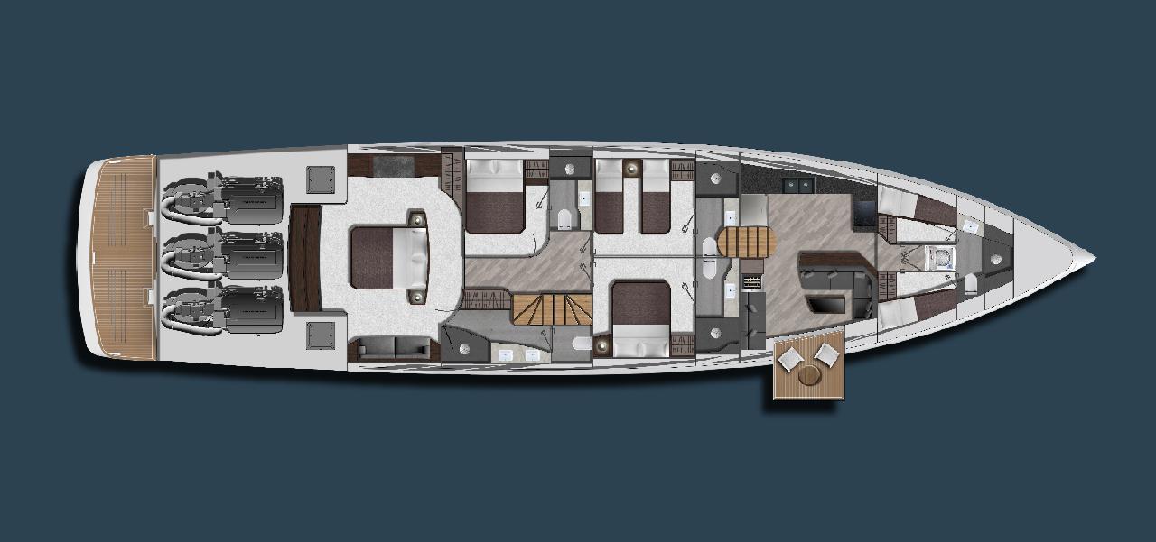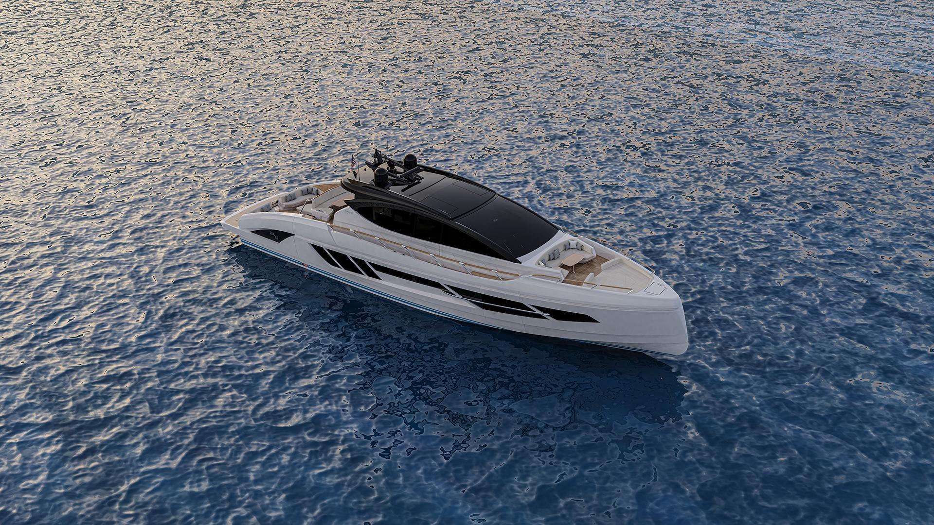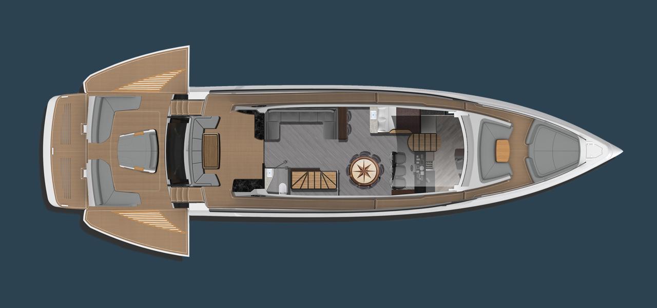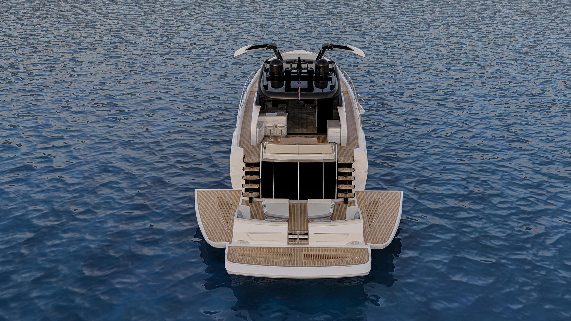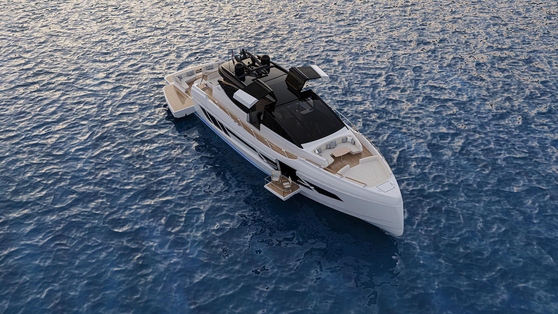 2026 Lazzara LSX85The Lazzara LSX85 is a bold evolution of the acclaimed LSX series, combining a sleek sport express profile with the interior volume and amenities of a larger yacht. Currently in the concept stage, the LSX85 offers buyers the opportunity to tailor layout, finishes, and propulsion to suit their vision.Key FeaturesBeach Club with Fold-Down wings – Hydraulic terraces port and starboard expand the aft deck into a full waterside retreat with direct access from the owner’s suite.Full-Beam Owner’s Suite – Aft stateroom with sliding glass doors opening directly to the beach club.Main Deck Entertainment – Expansive salon and dining area with wet bar, gull-wing side doors, and panoramic glass windows.Lower Deck Galley with Balcony – Unique fold-out balcony provides a private connection to the sea.Bow Lounge – Built-in sunpad and seating enclave for private relaxation.Crew Quarters – Two berths forward with en-suite bath, ensuring guest privacy.DimensionsLength Overall: 84’6” (25.8 m)Beam: 20’0” (6.0 m)Draft: 5’2” (1.6 m)Guests: 8 in 4 stateroomsCrew: 4 in 2 cabinsCapacitiesFuel: 1,200 gal (4,542 L)Fresh Water: 350 gal (1,324 L)Black Water: 100 gal (378 L)Performance & PropulsionStandard Power: Triple Volvo Penta IPS1350Projected Speed: ~32 knots top / 28 knots cruiseConstructionThe LSX85 embodies Lazzara’s signature build philosophy:Epoxy resin and E-glass composite with carbon fiber reinforcements for strength, stiffness, and durability.Fully faired and painted finish for a superyacht-level gloss.Hard-piped and redundant systems engineered for reliability.Centralized sea chest design for serviceability and safety.Innovative monocoque hull construction for efficiency and reduced maintenance.CustomizationAs a concept yacht, every LSX85 is built in close collaboration with the buyer. Interior palette, layout adjustments, propulsion package, and systems specifications are tailored individually—ensuring that each yacht reflects its owner’s lifestyle and cruising ambitions.