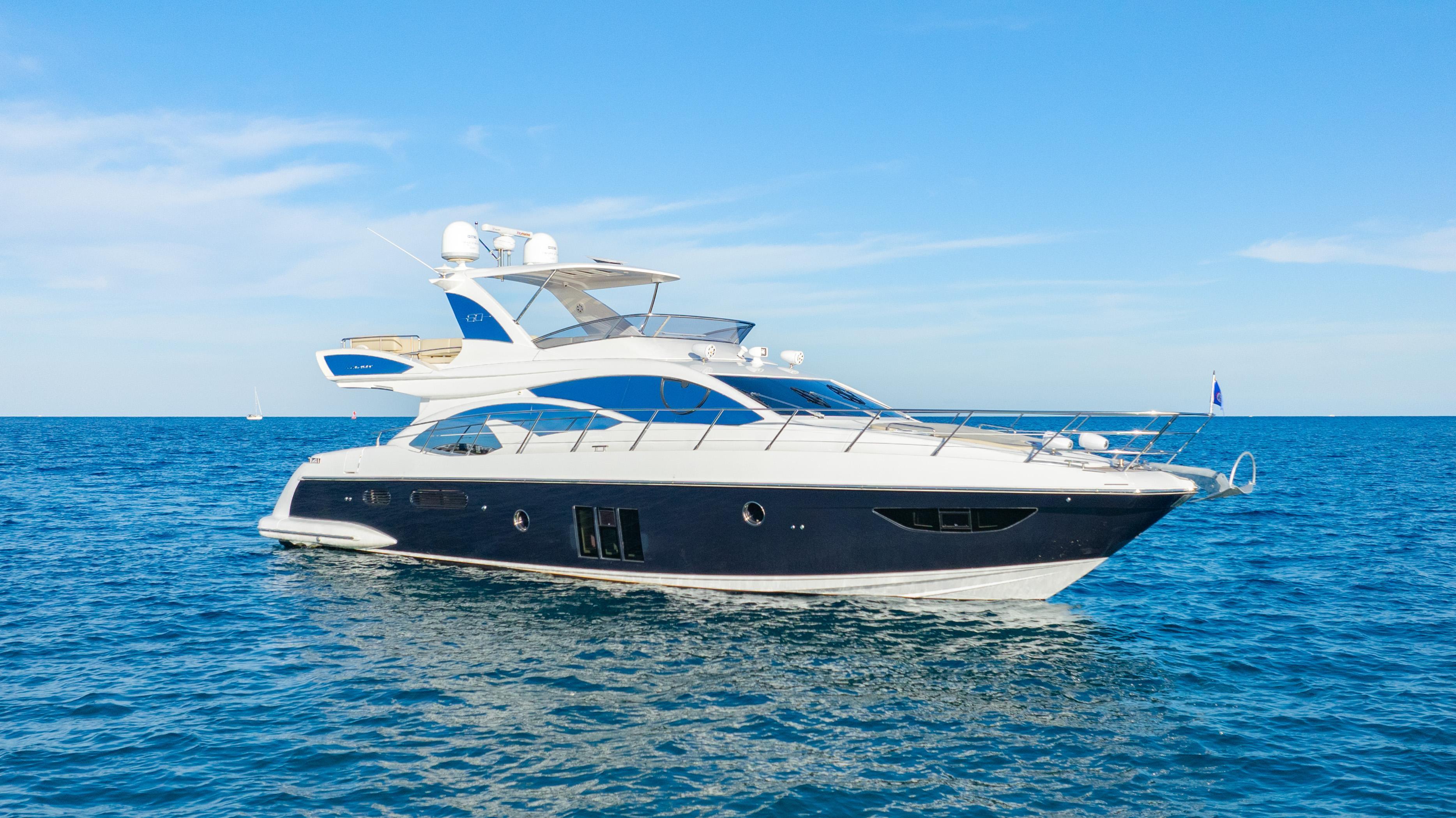 ACCIAIO BLU, a 2017 Azimut 60 Flybridge in steel-blue, commands attention in every harbor. Meticulously maintained with no expense spared, she embodies the sleek lines and luxurious amenities associated with the Azimut brand. The expansive flybridge, spacious cockpit, and protected bow deck with sun pad set her apart in her class. The bright salon features large windows, comfortable seating, and an entertainment center. Below deck, three staterooms and two full heads offer luxurious accommodations. The master stateroom boasts panoramic views, while the VIP stateroom and guest stateroom ensure comfort for all guests. Crew quarters are located aft, and a hydraulic swim platform adds convenience for water activities. Key FeaturesBeautiful Steel Blue exterior, Zebrano interior wood finishTwin 800 HP MAN R6 diesel engines, ZF transmission, 1009 hours (Feb 2025)Seakeeper 9Yacht controller for convenient wireless operation of vesselAventix joystick/bow thrusterElectroSea strainer and SeaStrong centrifugal pumpHydraulic swim platformTrim tabsUnderwater LED lightsKVH/DirecTV/Samsung TVs in the main salon and all three stateroomsSurround sound in the main salon and all three stateroomsUpgraded JL Audio in cockpit, flybridge, and bow (two pairs of bullets)Raymarine Chart plotter, radar, fishfinder/depth gauge, autopilotMulticamera video surveillance systemDometic chiller/HVAC system throughout the vesselAirconditioned crew cabin with TV, headMiele Appliances in the galleyOutdoor grille on the flybridgePowered Captain’s chair at the lower helmExpanded lounge area on flybridgeSix New Aire extra light fendersStarlink internet: Mobile Priority System with associated WiFi routerMantus model M1, 125 pound anchor