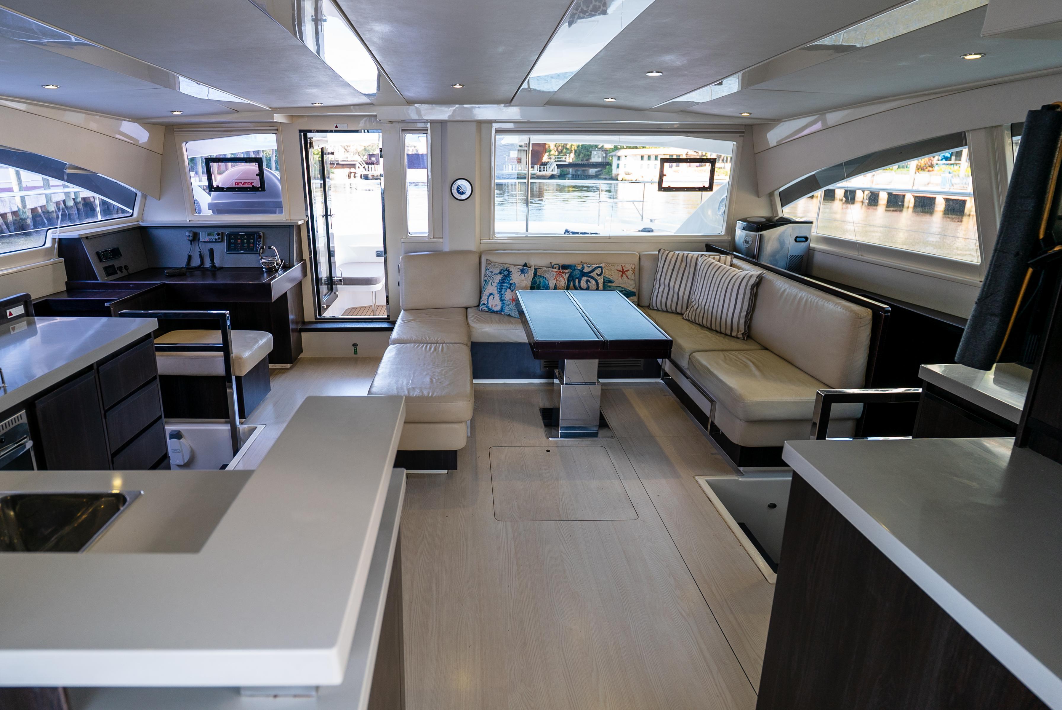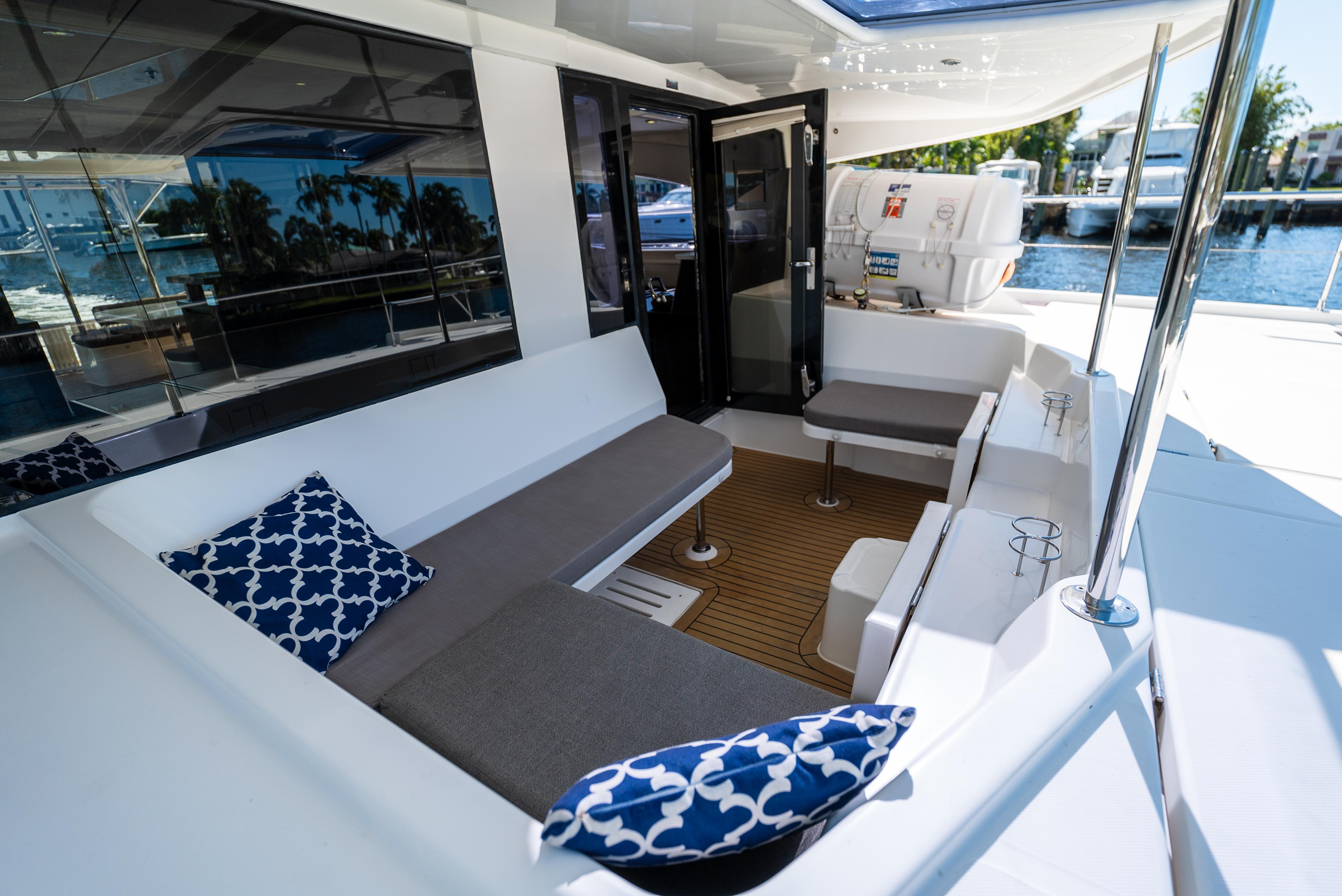 Leopard has been at the forefront of power catamaran design since the early 2000's and every new generation of Leopard power cats brings new features. The Leopard 51PC was in production from 2014-2019, and a total of 130 units were built. This Leopard 51PC was amongst the first units launched, and has been in private ownership since new, with just 2 owners. This yacht features a family style lay out with 4 cabins and 4 heads, a large salon, a forward lounge area, a big aft-cockpit. The best feature of the Leopard 51PC is the XXL flybridge, which is covered by a hardtop, to keep your friends out of the sun. Dependable 370HP Yanmar engines, a brand new generator with just a few hours, electric davit system as well as a hydraulic platform (both just serviced), new bottom paint in January 2025, waxed and compounded. The seller is keen on reasonable offers. All pictures are of the actual yacht and pictures / video made in January 2025Make sure to look at the video, showing this nice yacht in the open ocean as well as downtown Fort Lauderdale.