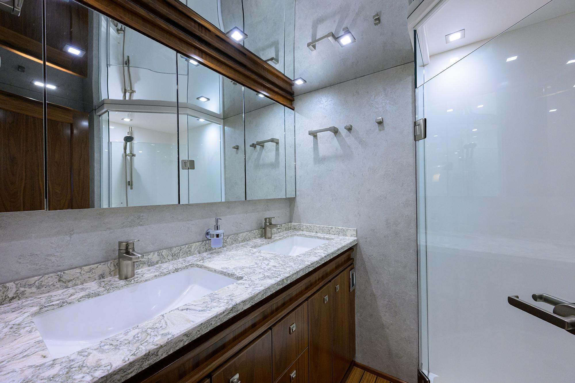 LAMPLIGHTER features a design that is the envy of the industry! Her 5 stateroom/5 head layout below is complemented by an extremely spacious salon/galley/dinette and day head combination on the main deck. Highlights include extremely low original hours, extended warranty on her engines and Seakeeper and a sensible outfitting package. Ready to cruise and fish today!