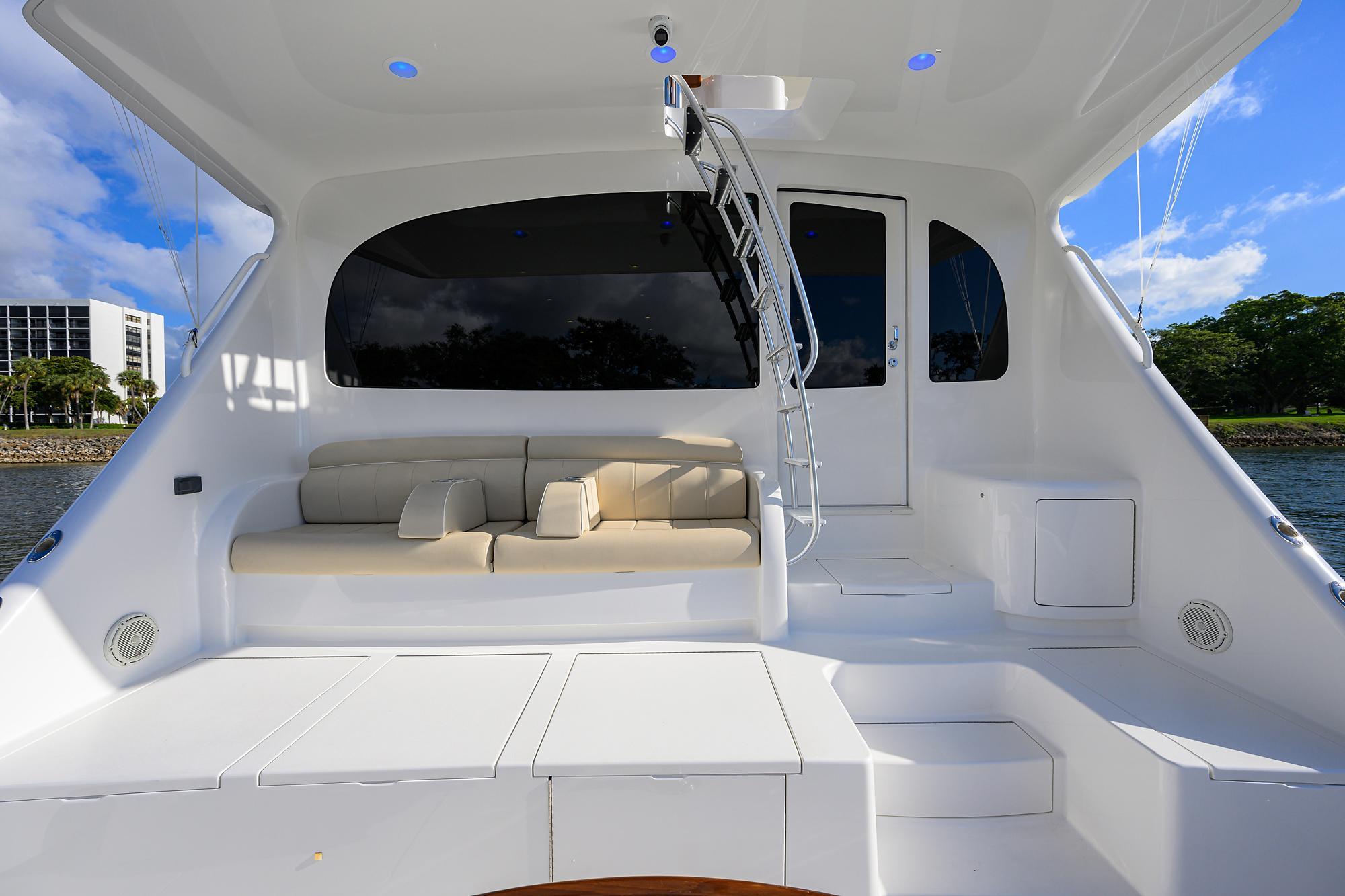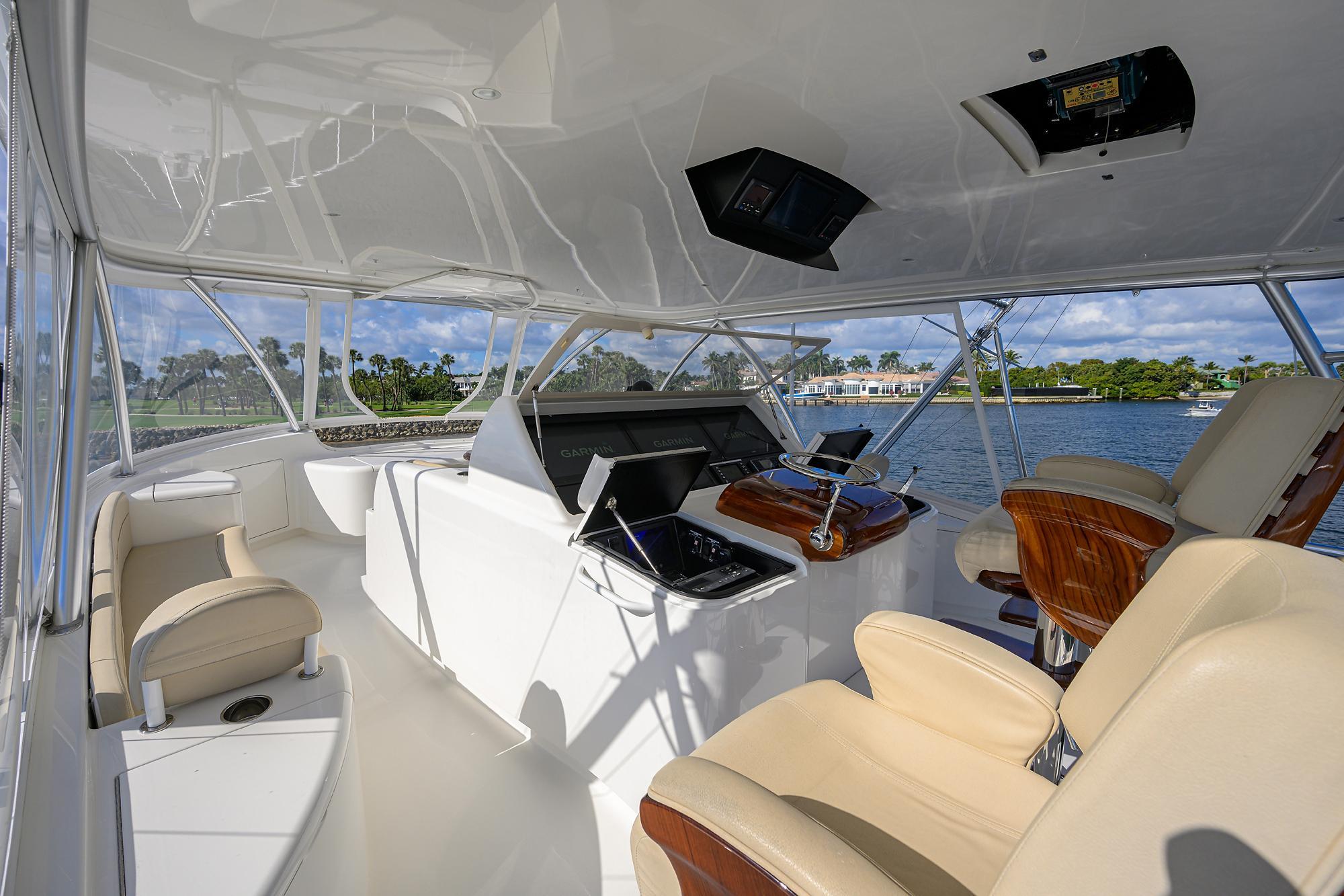 Attention to Detail Options(2) additional foredeck hatches for natural light and ventilation, custom radar mast, (3) RELEASE Trillion seats on flybridge with custom footrests, Release teak helm pod, electric blinds in salon