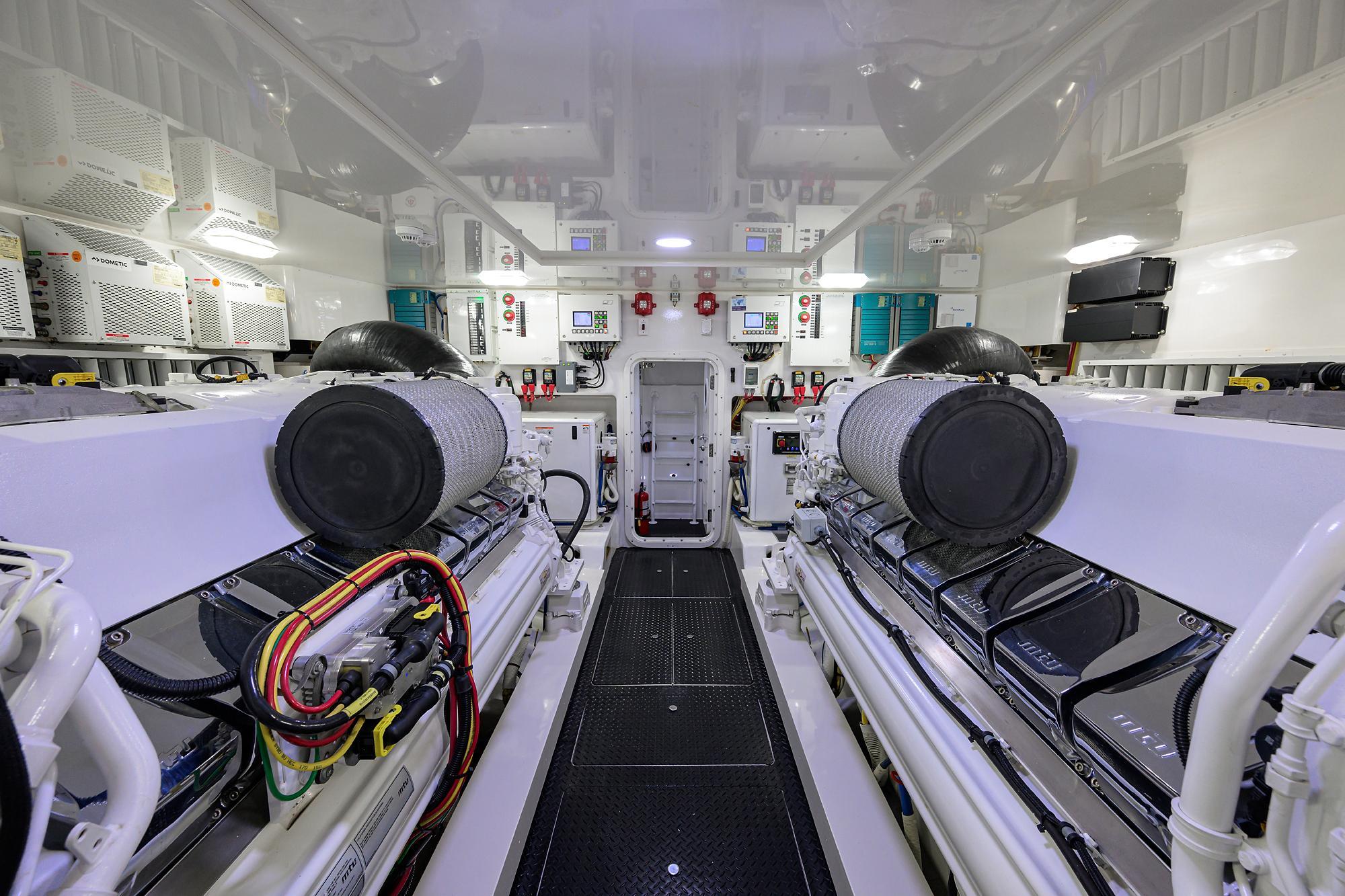 Twin 16V2000 M96L MTU diesel engines, 2635HP each, (2200 hours as of Feb 2025), EXTENDED WARRANTY PROTECTION until 7/29/26 or 3070 hours, whichever occurs first, Twin 32KW Kohler generators (1360 & 1550 hours), MTU Dynamic Positioning System, fuel transfer pump, Headhunter fresh water pump, (2) tool boxes
