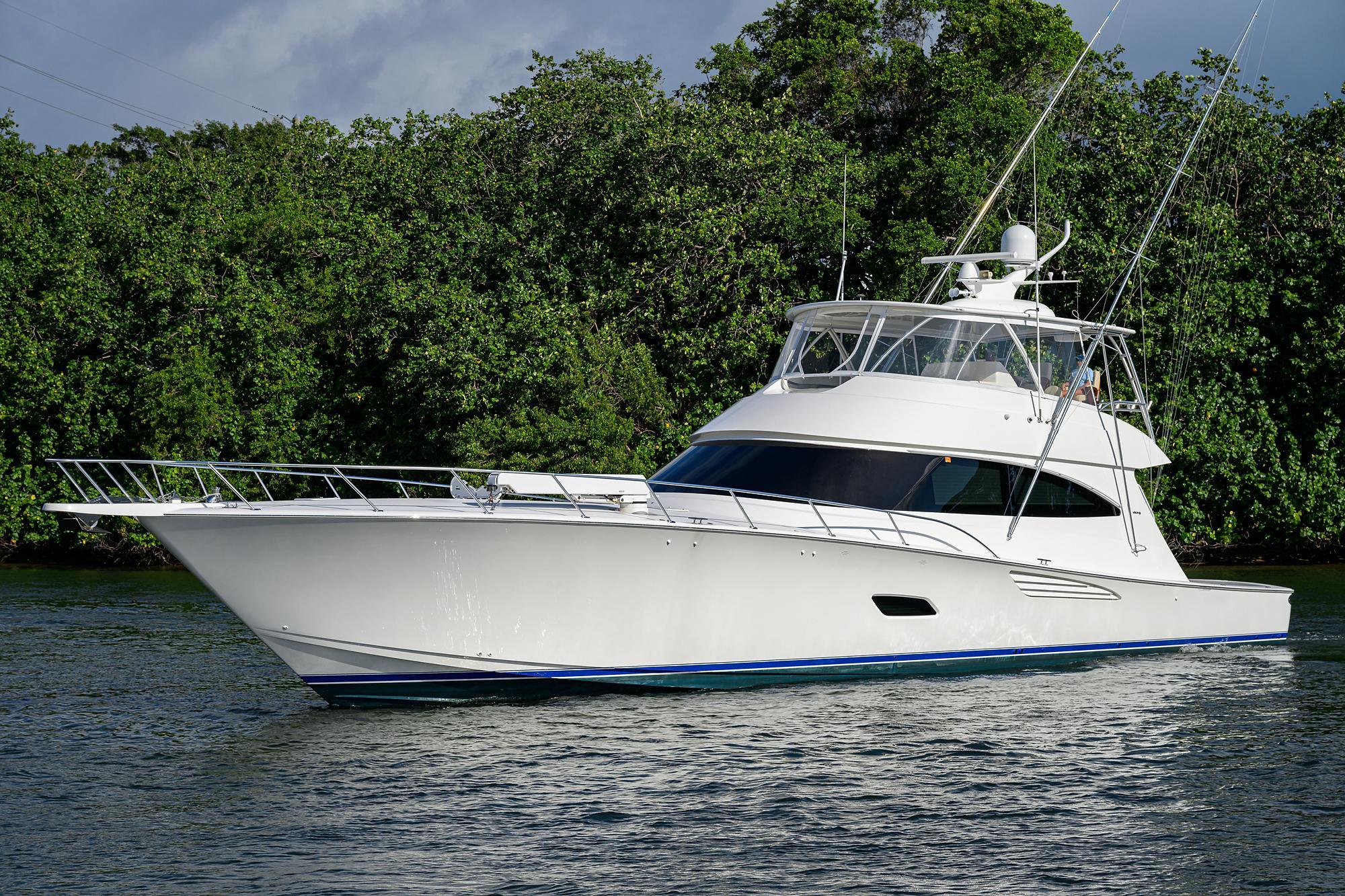 Ease of Operating OptionsViking bow pulpit, Maxwell hydraulic windlass, port and starboard fuel fills, fresh water inside anchor locker, transom swim steps, extended handrails to windshield, refrigerated cockpit step box, freezer and refrigerator on flybridge, additional chiller control panel in pantry, port and starboard Glendenning shore cord power reels