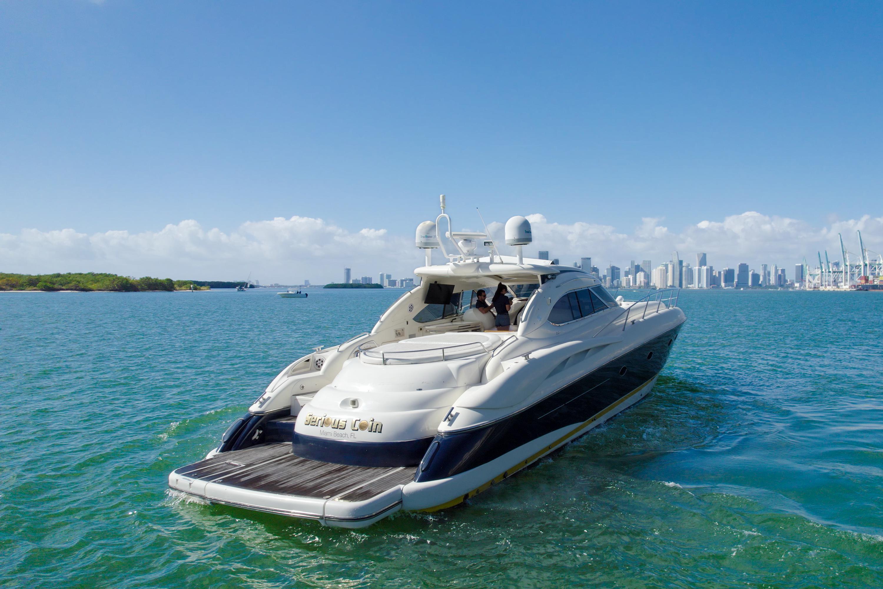 M/Y Serious Coin is a striking example of Sunseeker’s iconic 60 Predator series, combining performance with sophisticated European design. This 2001 model is loaded with features, including a large hydraulic swim platform—perfect for launching and retrieving the Zodiac jet tender neatly stowed in the integrated garage. An optional hardtop with retractable sunroof adds to the versatility of this yacht, allowing for open-air cruising at the touch of a button.Her expansive, wide-open cockpit layout remains one of the most refined in her class, offering generous seating, a teak cockpit sole, and easy engine room access through the cockpit for efficient serviceability. Broad side decks lead to the forward and aft sunpads, perfect for sunbathing or relaxing with panoramic views at anchor or underway.Inside, Serious Coin features a light-filled, open-concept salon with a large U-shaped lounge and a beautifully finished high-gloss table, ideal for dining or socializing. The open galley and bar area are perfectly suited for entertaining guests in style. Rich wood cabinetry, designer finishes, and thoughtful storage throughout reflect Sunseeker's dedication to craftsmanship and comfort.With her sleek profile, powerful performance, and luxurious interior, M/Y Serious Coin is a true head-turner on the water. This Sunseeker Predator 60 is a must-see for buyers seeking an elegant blend of style, comfort, and performance in a proven platform.Key Features:Zodiac jet tender with garage storageHydraulic swim platformOptional hardtop with retractable sunroofTeak cockpit and wide walk-around side decksForward and aft sunbathing padsOpen salon and bar-style galleyPowerful performance and agile handlingTwin engines up to 36 knots