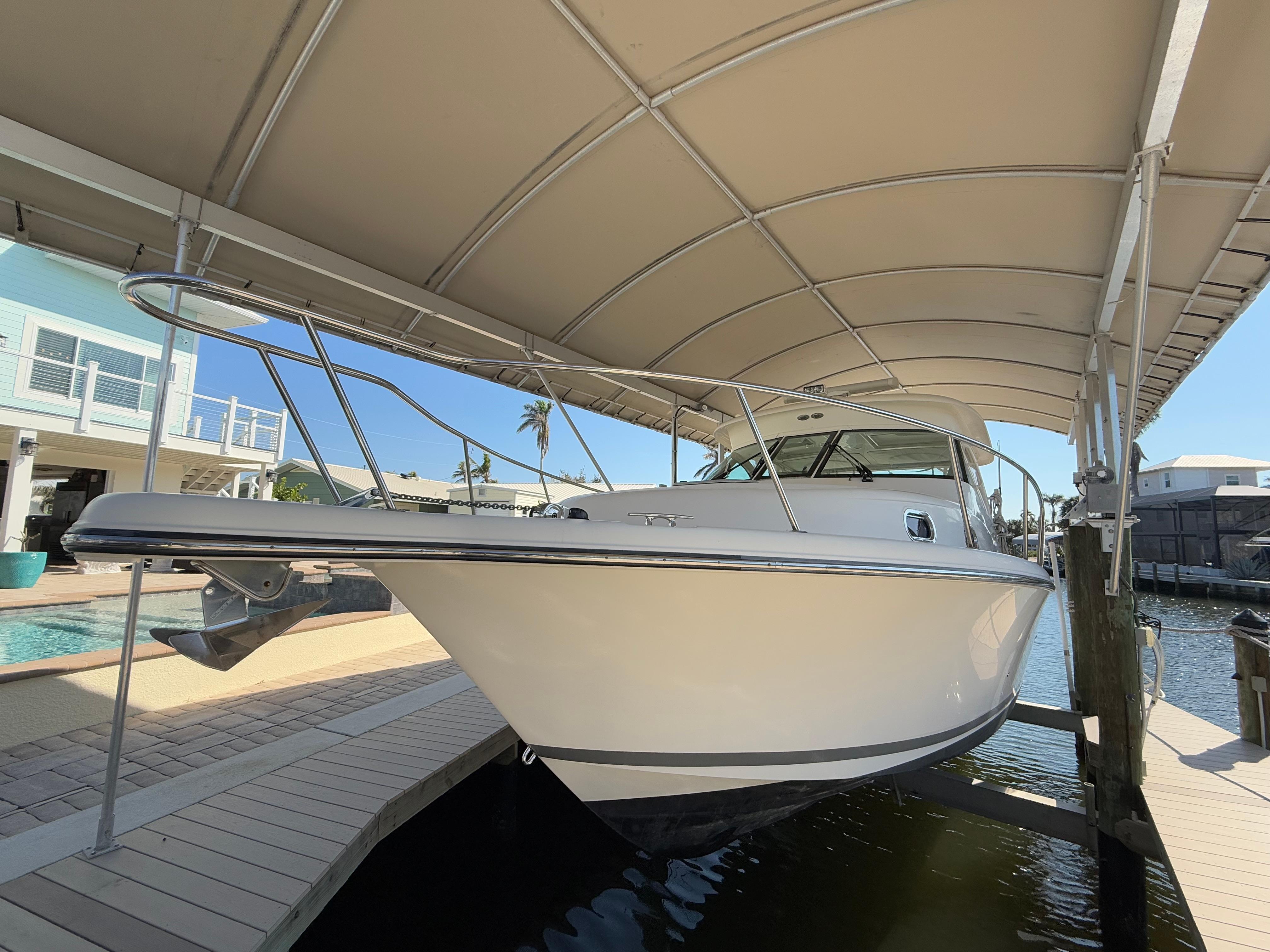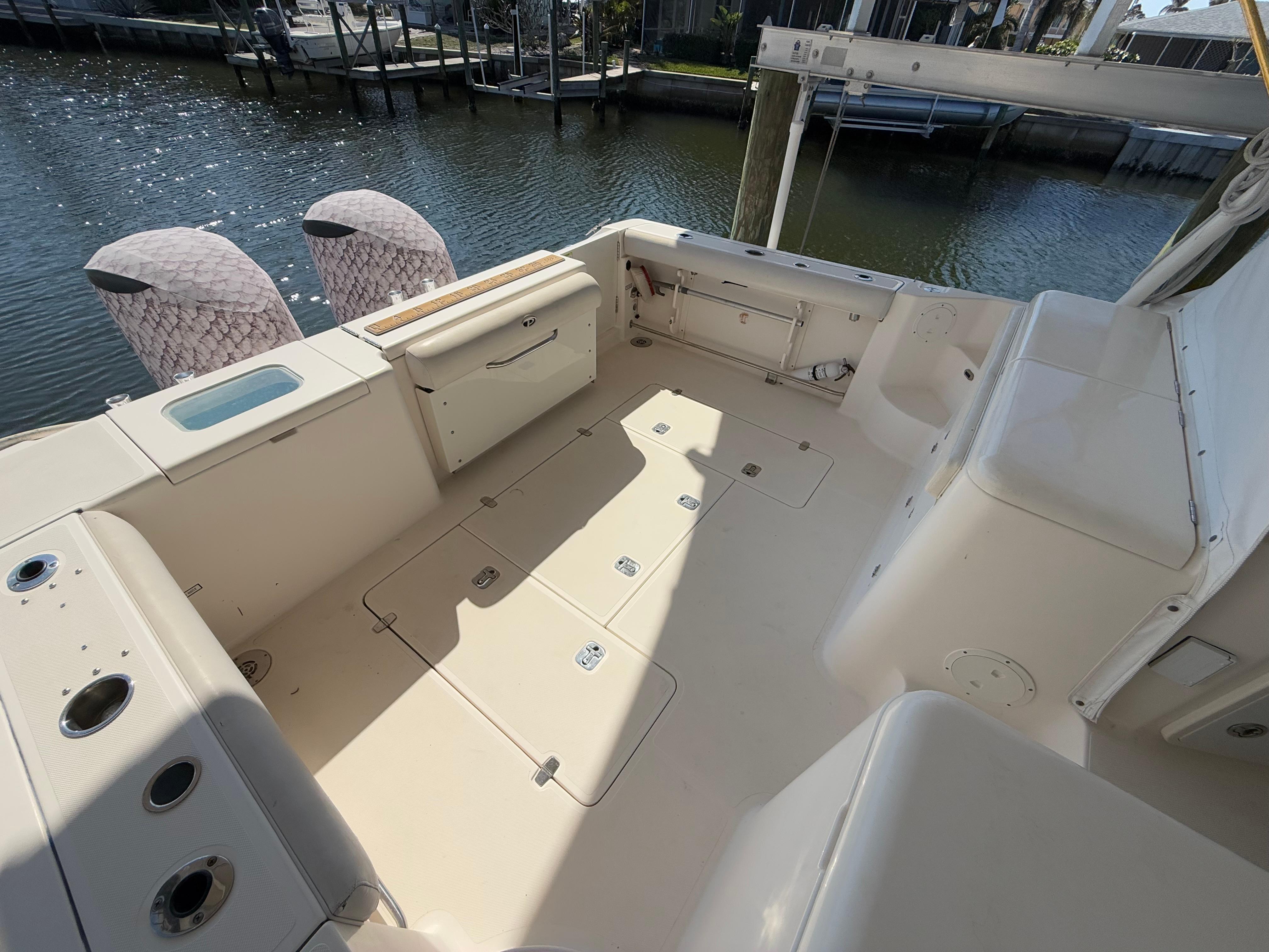 This is the LOWEST PRICED, LOWEST HOUR OS 345 for sale In America!!When tasked with designing a replacement model for the 335 Offshore - the best selling model in Pursuit's history - their engineers had a tall order to fill. Fortunately, our staff is full of over-achievers and the OS 345 was born. Slightly longer and wider than her predecessor, this model features an expansive cockpit for fish fighting and a large cabin for cruising and overnighting in comfort.The OS 345's hull has been specifically designed for twin Yamaha 350 hp 4-stroke engines, which provide optimal performance with minimal horsepower. Standard bow thrusters will give any captain the confidence to dock in close quarters, wind or strong currents. The express design includes an open helm with optional bridge deck cooling with air conditioning and an aft canvas enclosure so you can escape the elements without escaping the view. This layout also affords quick access from the helm to the cockpit when you have more screaming reels than anglers. The cockpit includes ample seating and an electric grill for entertaining and a host of fishing features including a recirculating livewell, a comprehensive rigging station with locking tackle drawers, insulated fish boxes and enough elbow room that you're not running into each other.In the cabin, Pursuit developed an innovative circular seating arrangement forward for dining and socializing. The mid-cabin berth includes a comfortable settee. The head compartment includes a separate area for showering to minimize clean up after a nice hot shower. The galley features stainless steel appliances and Corian countertops like those found in fine custom homes - that's appropriate since you'll probably want to live aboard the OS 345. This is a covered lift kept, upgraded and updated version that is offered turn-key without disappointment or excuses! Helm A/C, and a full suite of Raymarine Axiom Navionics round out this fantastic boat! She will NOT last!!