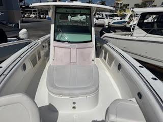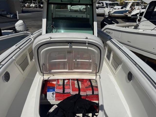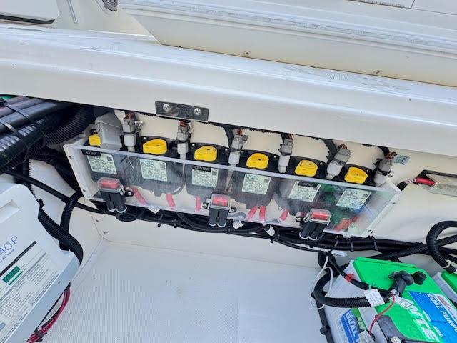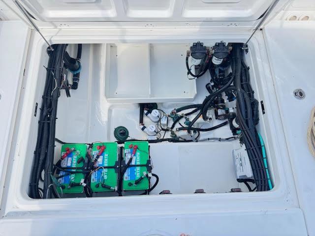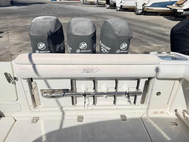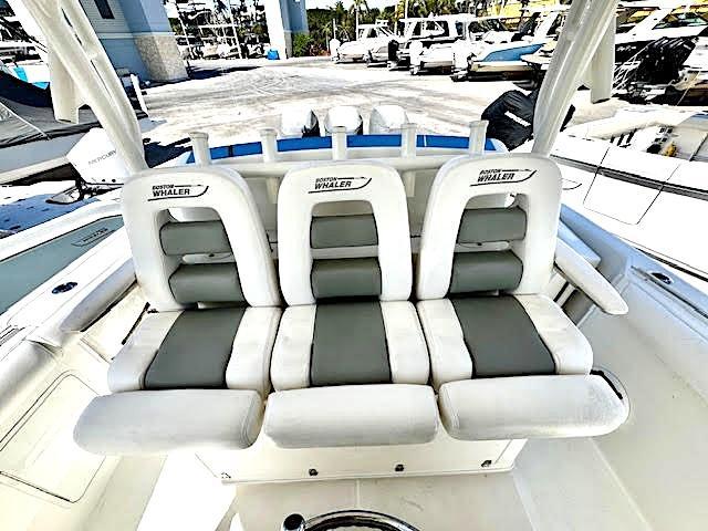 Introducing the 2016 Boston Whaler 350 Outrage, a stunning center console boat that combines performance and elegance. Measuring an impressive 35.5 feet in overall length, this vessel is crafted from durable fiberglass, ensuring longevity and resilience on the water. Powered by three Mercury Verado outboard engines, each delivering 300 horsepower, this boat promises exhilarating speed and agility, perfect for adventurous outings. With 700 hours of experience under its belt, the engines are well-maintained and ready for your next journey. Equipped with joystick control, maneuvering this boat is a breeze, enhancing your boating experience. The thoughtful design includes a head for convenience, making it ideal for longer excursions. The Boston Whaler 350 Outrage is not just a boat; it’s a gateway to unforgettable memories on the water. Experience the perfect blend of comfort and performance with this exceptional vessel.All three engines have been installed with new steering actuators ($17,000)