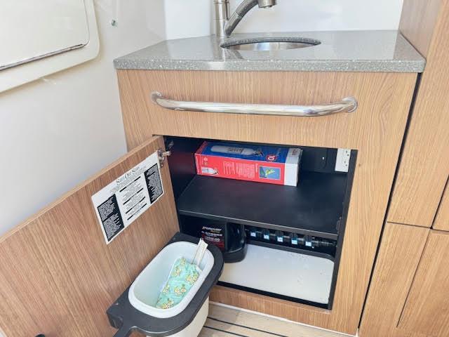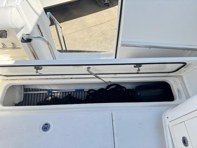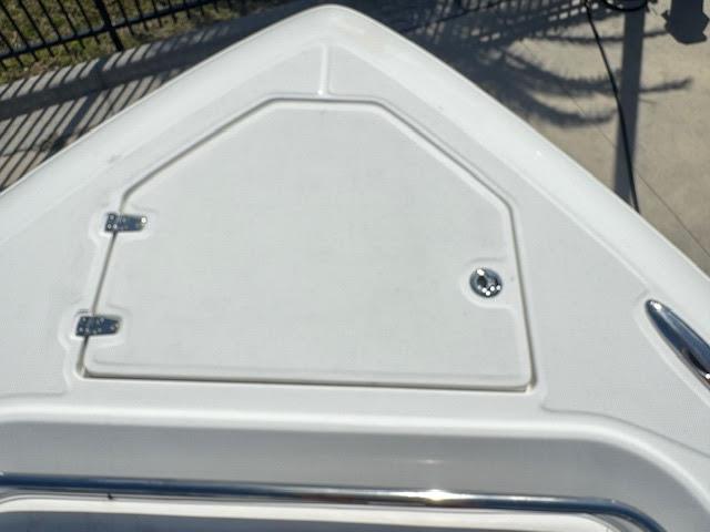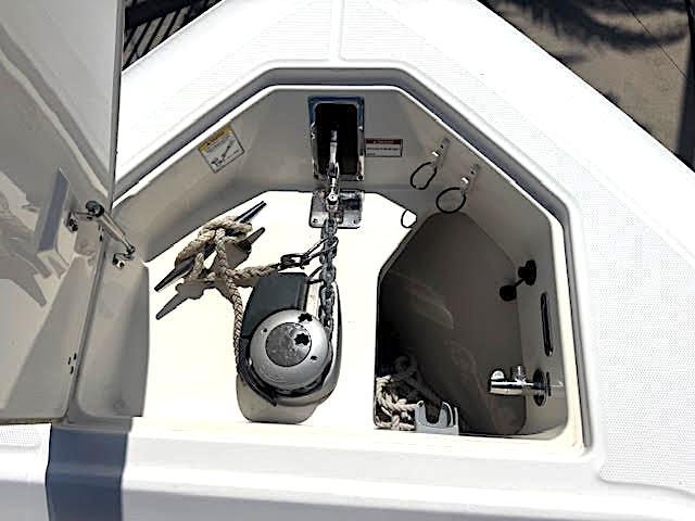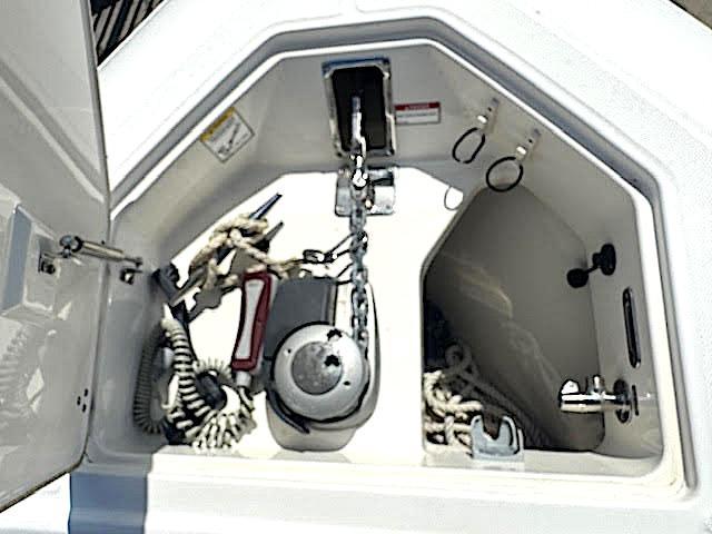 - Stainless steel drink holders – bow (2), hawse pipes (2), helm (3), leaning post (4), forward console lounge (2), bow seating area integrated into low bow rail (4)