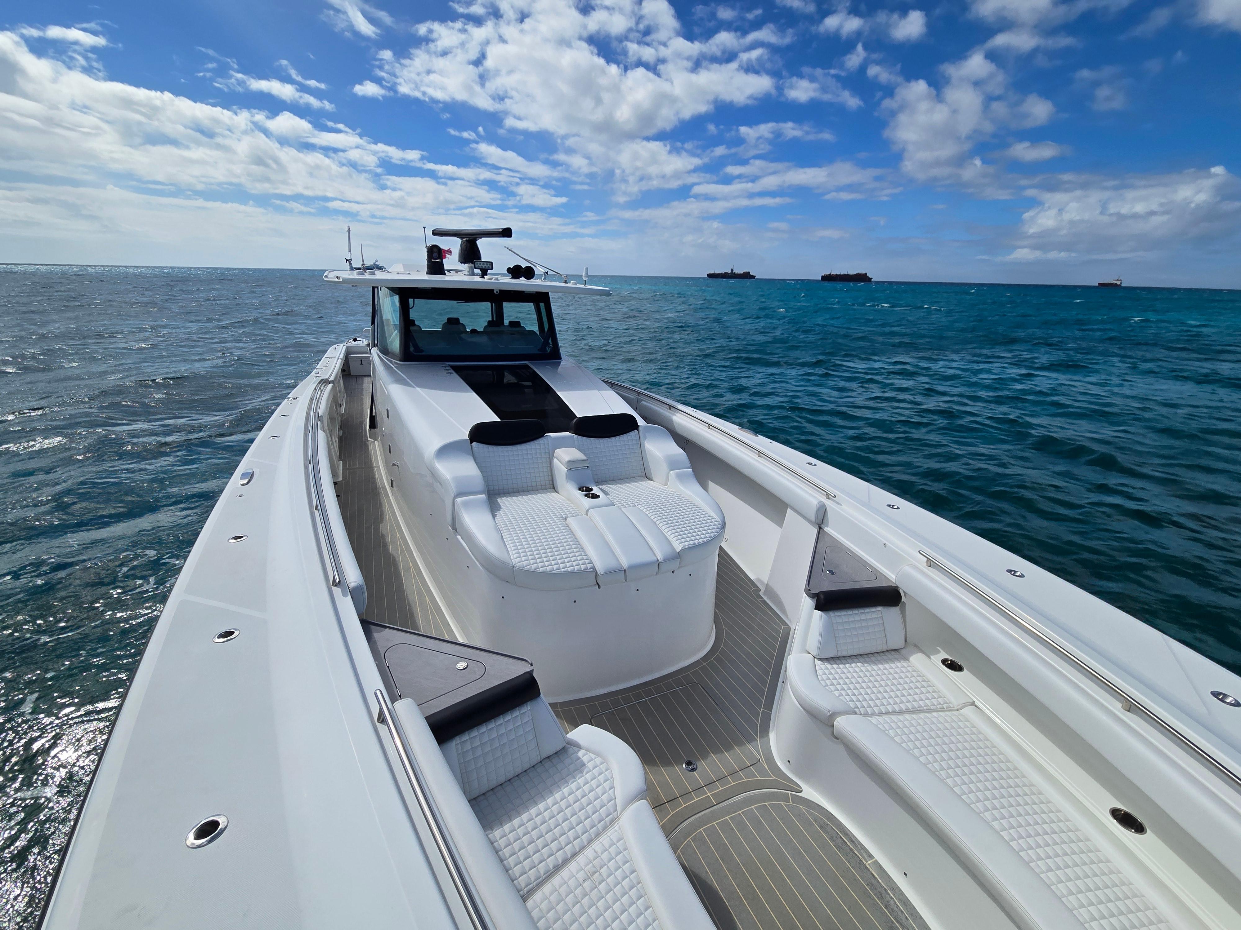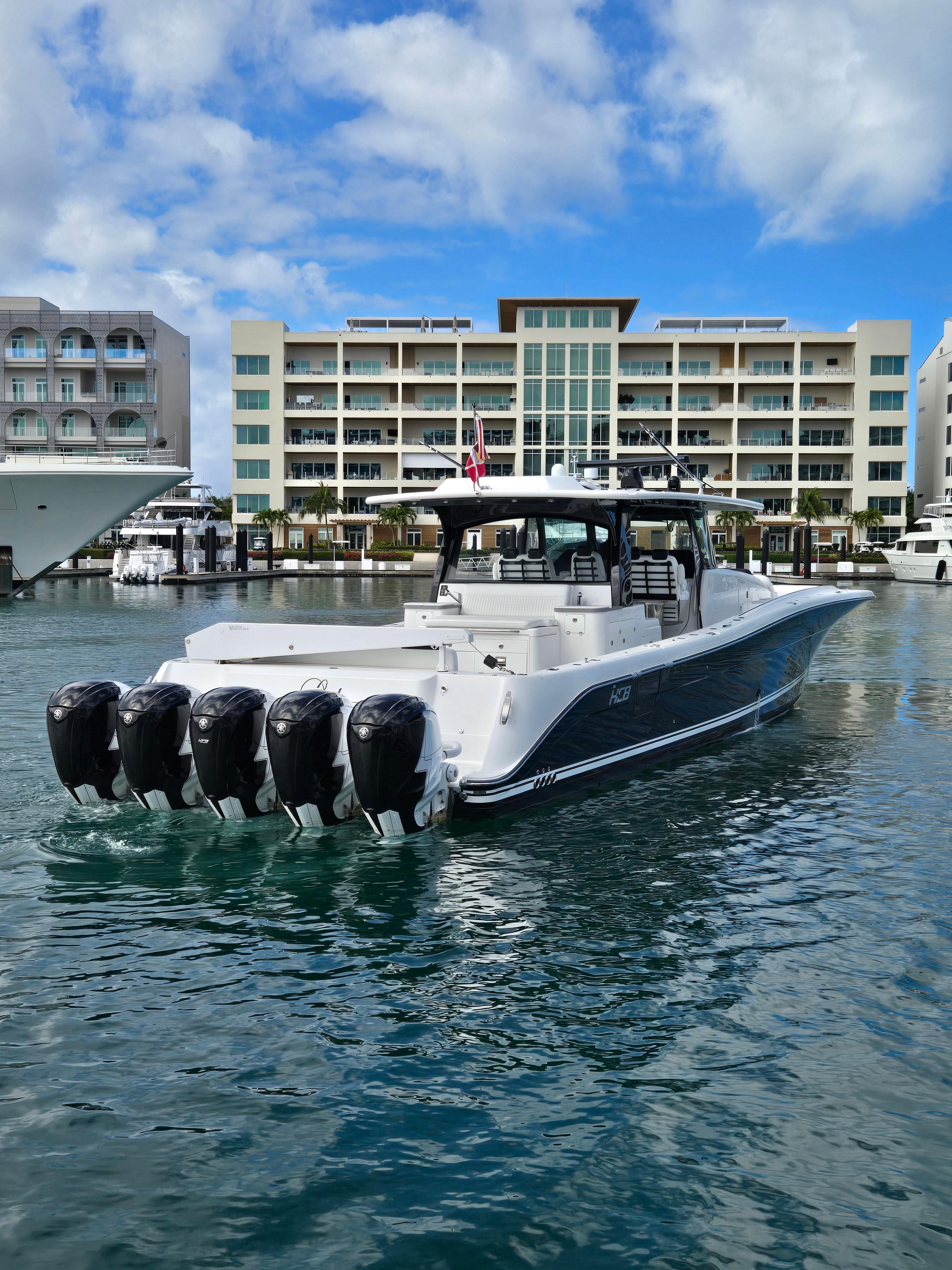 2021 65 HCB w/Quint 425 Yamaha Engines-Custom 1200lbs Davit w/ whips and removable cradles-New Upholstery-Seakeeper 9-Drop down television (cockpit)-Tender Refueling station-Custom Cabinetry-Full Cockpit decking-Custom Summer kitchen/lounger combo -Engine warranty-Bow and Stern Thrusters -WatermakerThis highly customized 65 HCB is new to the market and sure to turn heads with its stunning black hullsides and incredible interior finish. The cabinetry was custom finished to match the hull and the Maintenace free decking gives the cockpit a durable and clean finish. A 1200lb davit was designed into the transom of the boat to lift a 3 seat Jet ski or Jet tender for beach access and long trips. The cockpit was built for entertaining with a fold down TV and summer kitchen w/freezers/fridges, countertops and built in grill. The boat has split time between the US and the Bahamas and has been constantly upgraded and maintained. The vessel is easy to view in Fort Lauderdale, FL.