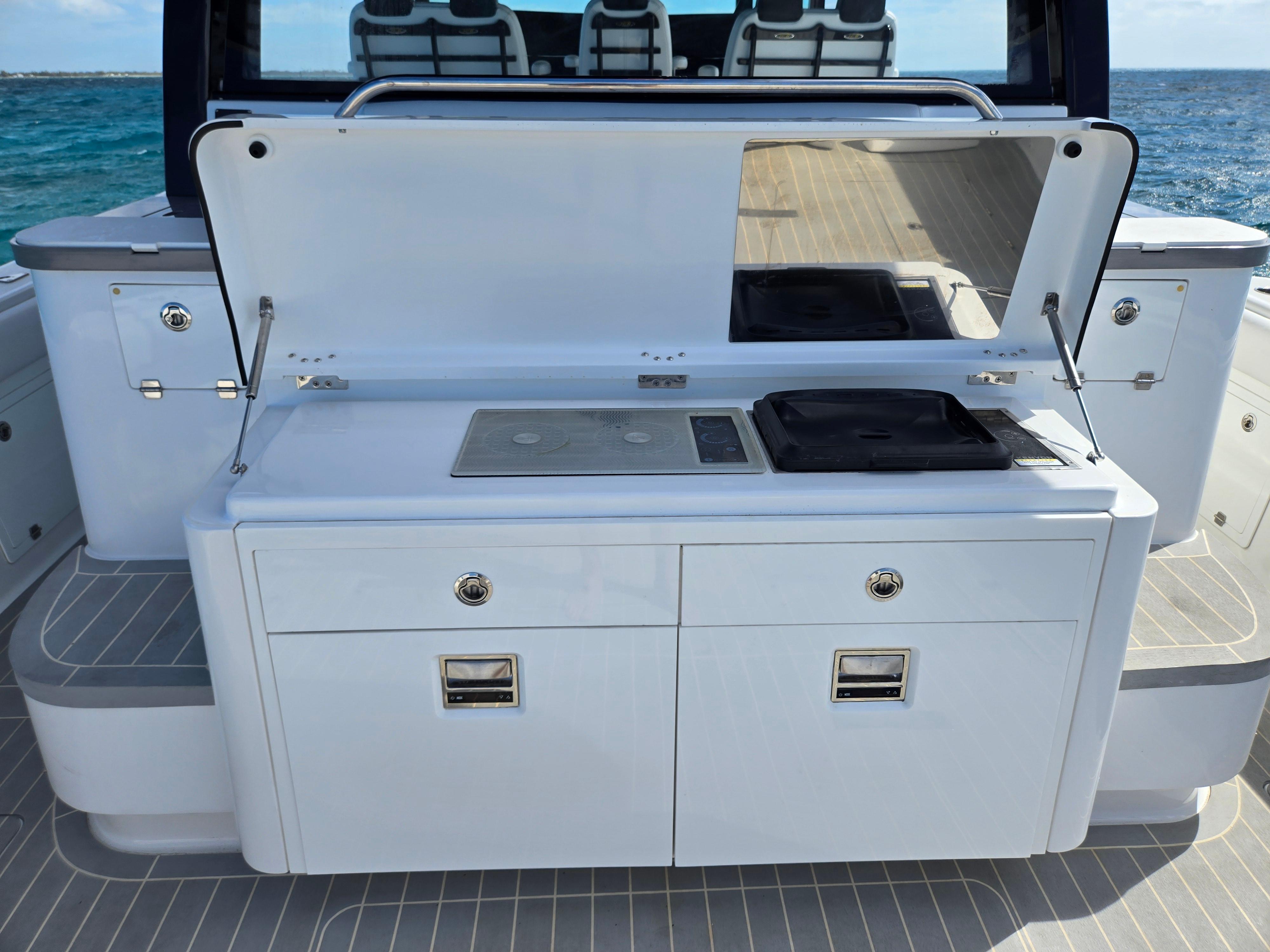 -1200lbs Nautical Structures Davit (Hydraulic) -PWC whips for hull sides and cradles-Custom Summer Kitchen with grill, burner and 2 fridges-Drop down TV from Hard top-Dive tank storage-Gost alarm, camera and tracker system-Electric reel outles-Tender refueling pump-Seat covers-Front and rear sunshades-Upgraded cabin sink and storage-Upgraded cabin lighting-Doubled freshwater capacity (180 Gallons)-Doubled holding tank capacity (35 Gallons)-50' long electric wash down hoses-Cockpit Icemaker-SS rubrail-Custom Engine Paint-Transom Lounge Seat w/baitwell-FLIR Camera-Watermaker-Iridium Go sat phone-KVH TV3 Dome-Upgraded Radar-Kahlenberg Dual Air Horn-Extra Rod Holders-XM Weather