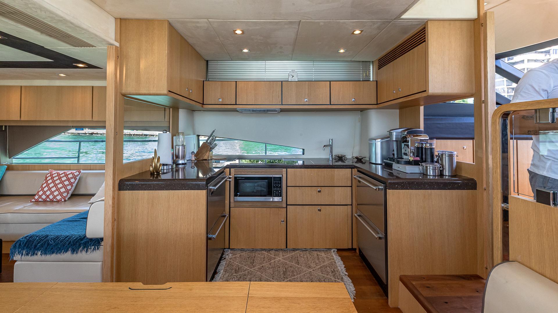 - Flybridge bar with refrigerator, icemaker, sink and electric griddle