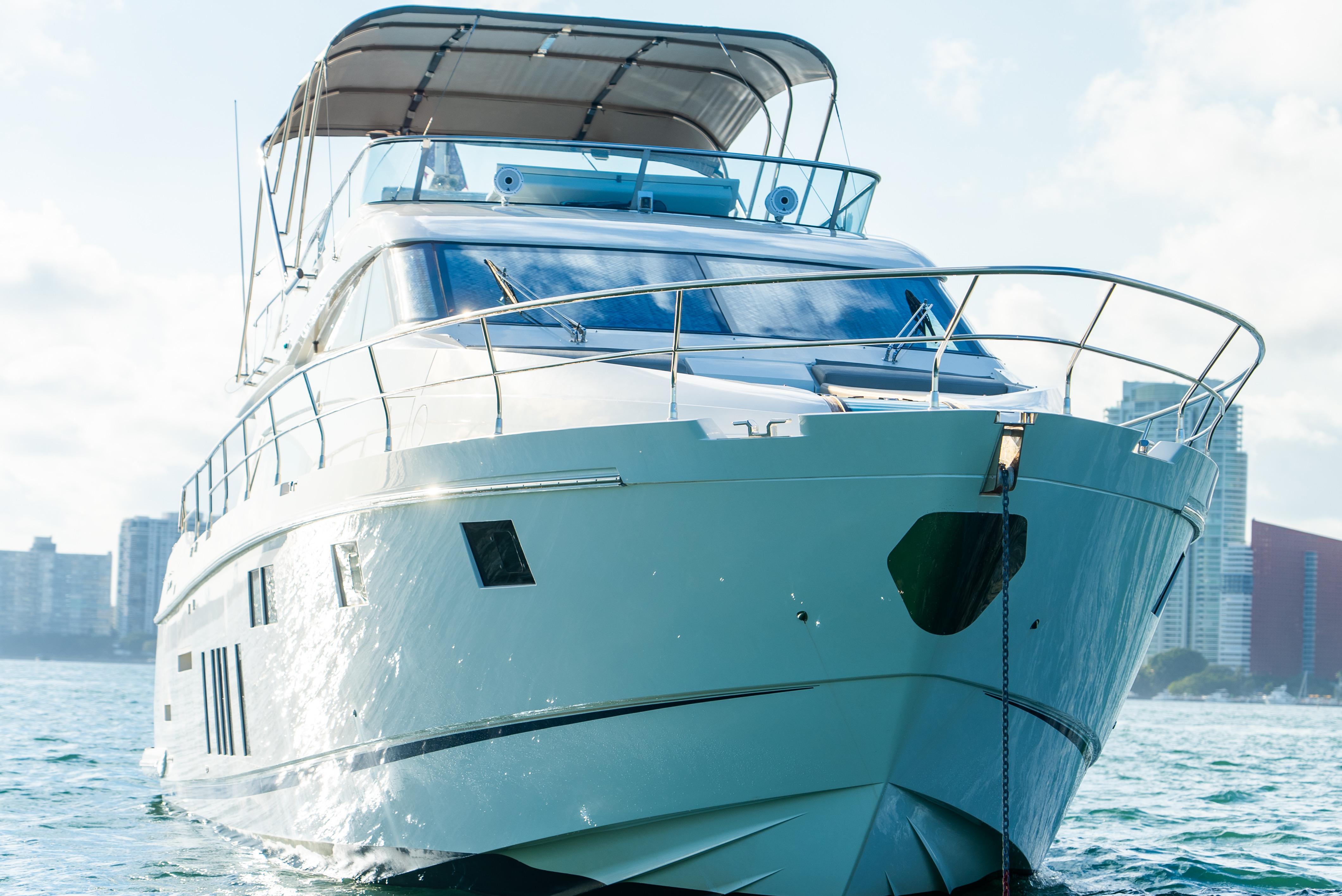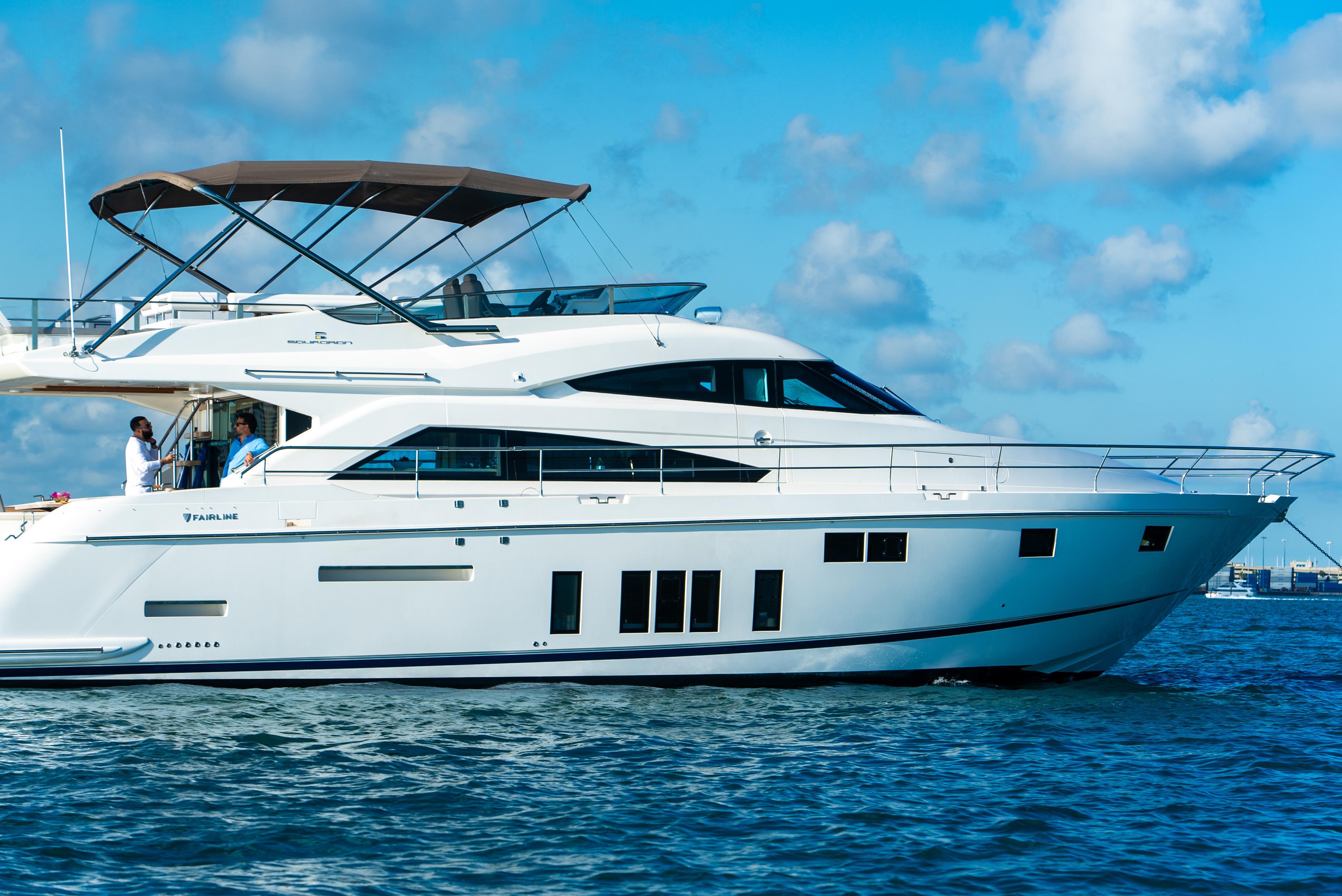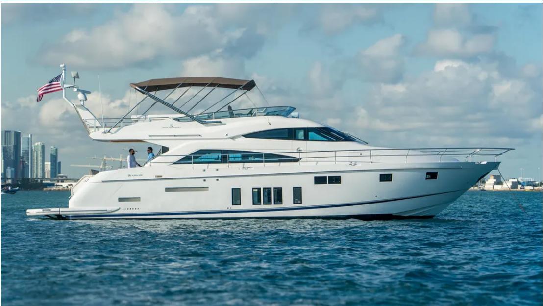 2015 Fairline Squadron 65 in PRISTINE Condition! PRIVATE USE ONLY - NEVER BEEN CHARTEREDCaterpillar C-18 Engines 1080 Hours 1000 Service Completed at 800 Hours!Onan GeneratorUpgraded Electronics - Garmin 7616's4 Stateroom Layout + Crew Quarters!3 Full HeadsNew Headliners and Additional Closet Added in Primary StateroomNew Headliners in Salon Harmon/Kardon Surround Sound STARLINK WIFIAUTOMATION - TV, Sound & Electric Shades throughout Entire Boat Controlled by an APP$40k in NEW Cushions - ALL Exterior Cushions, Including Captain Chairs REPLACED with New Fairline Grey! Not Re-upholstered, Replaced!Large Hydraulic Swim Platform Can Fit Tender or Jet Ski - Has Chaulks Bow ThrusterLED Lights Throughout - Underwater Lights Wine Cooler Added in Salon Ice Maker on Flybridge Additional Refrigerator in Cockpit Additional Refrigerator and Freezer on Flybridge Set Up for Port & Starboard Boarding LadderU.S. Spec More Photos & Videos Coming SoonSeller is Ready for Their Next Boat! Located at Bayside Marina - Easy to Show - Call, Text or Email to Schedule With an increase in size comes an increase in the ability to really impress. This 65-foot Squadron appears to go one step further than similar sized boats on every level.Sumptuous furnishings and hand-worked cabinetry are hallmarks of the Squadron range. Nowhere is it more elegantly expressed than in the long, wide single-level interior - a testament to the 65’s ingenious flat floor design. Having such uncomplicated, single floor levels is normally reserved for much larger yachts, but our designers have achieved just that on this 65-footer. An elegant, beautifully proportioned Squadron awaits you.